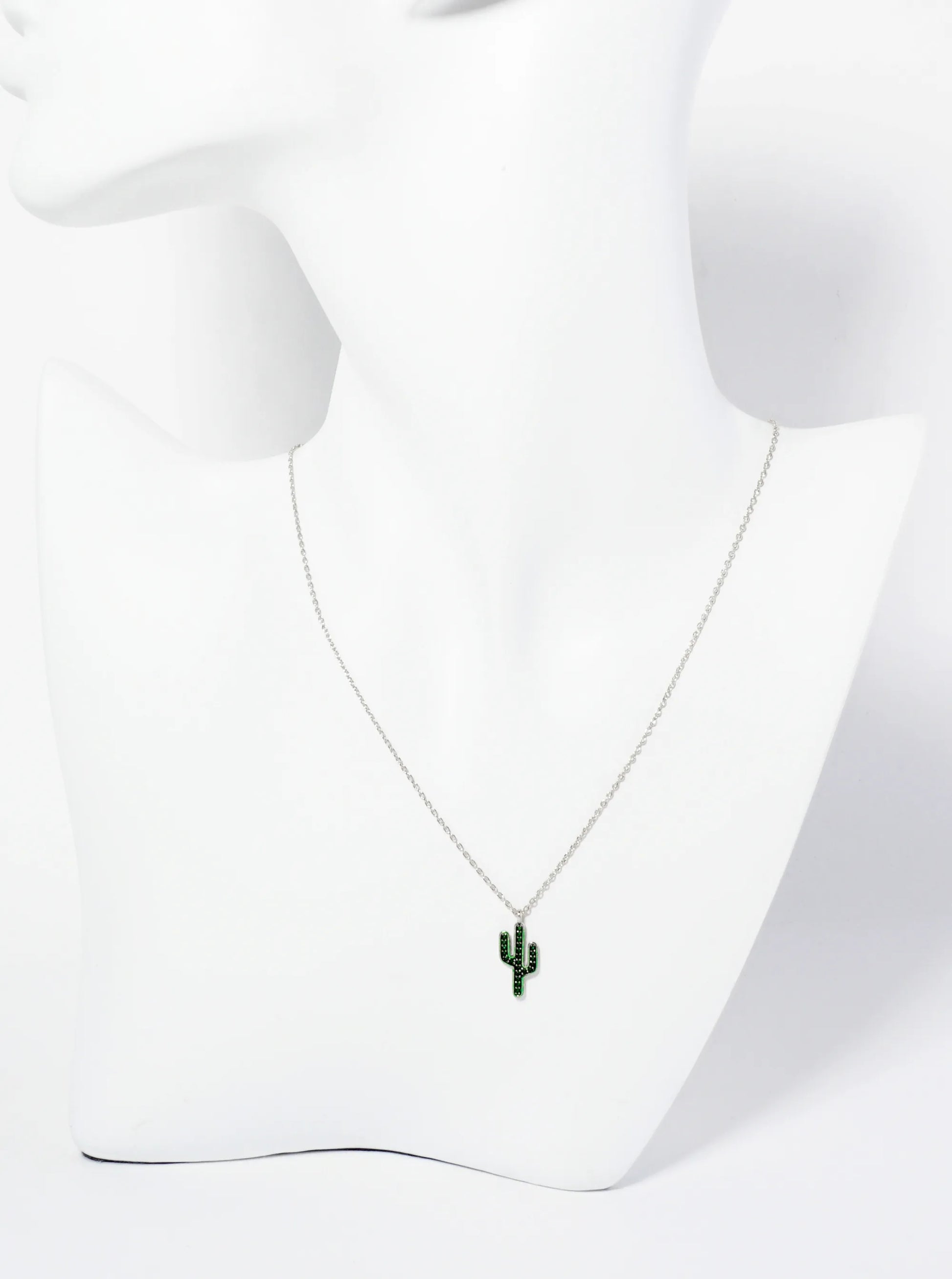 18K Gold Dipped Emerald Color CZ Pave Cactus Pendant Necklace