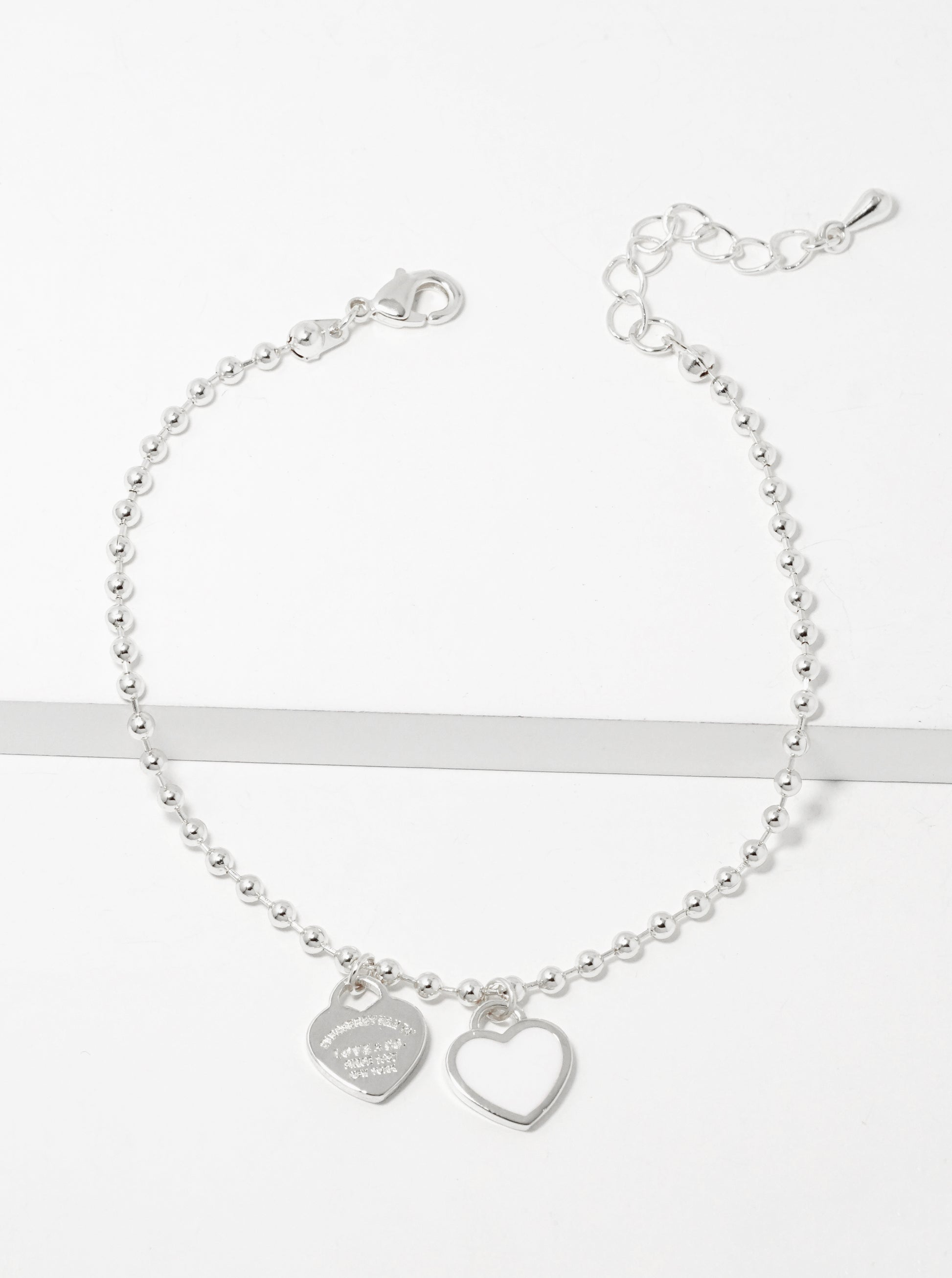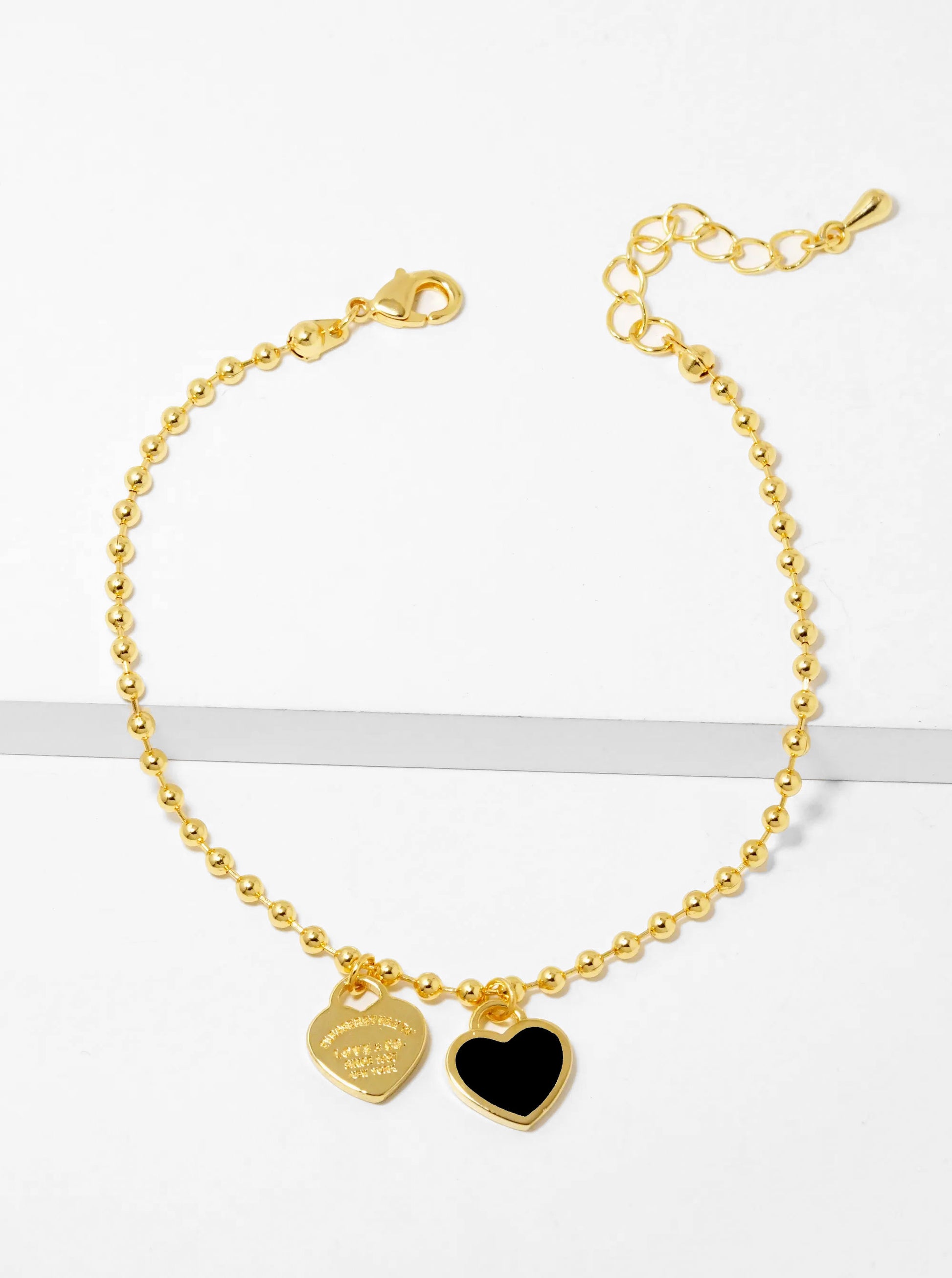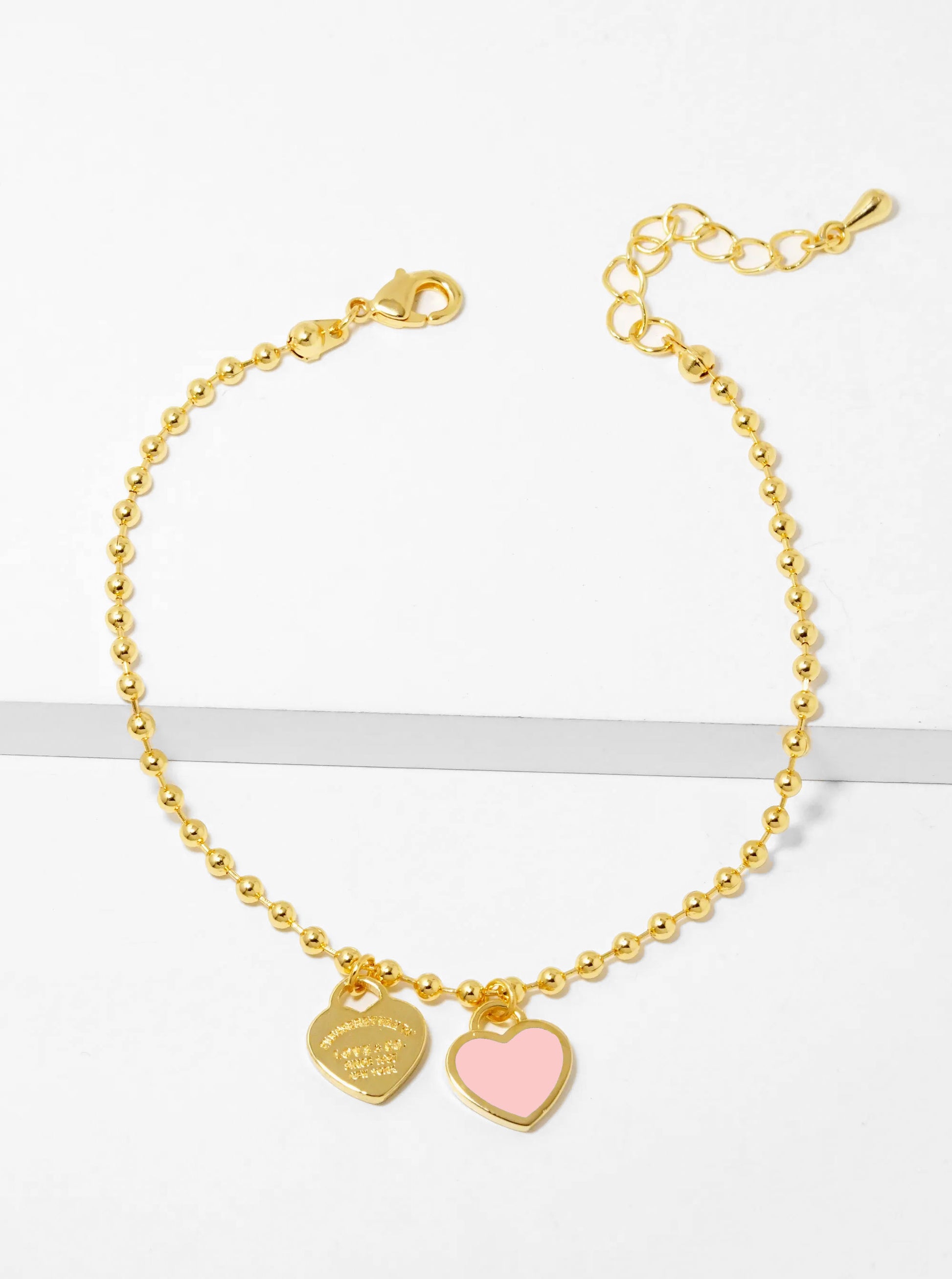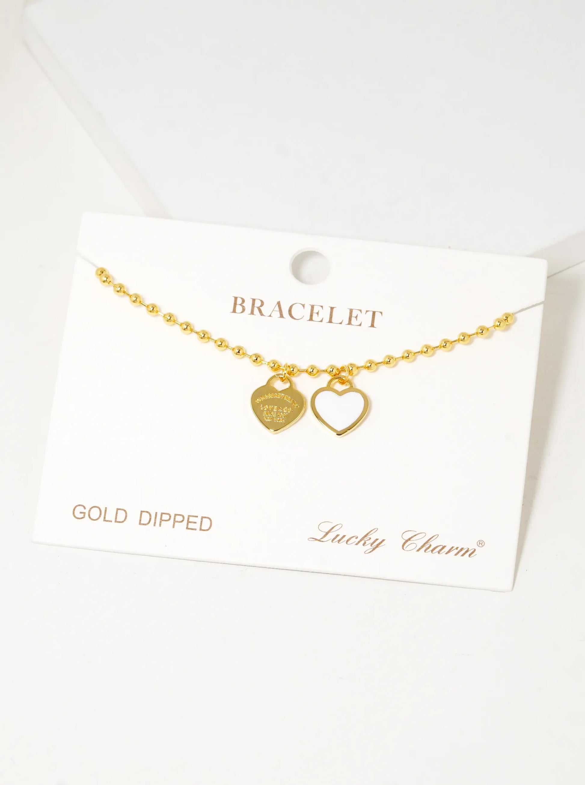 18K Gold Dipped Enamel Filled Double Heart Ball Chain Bracelet