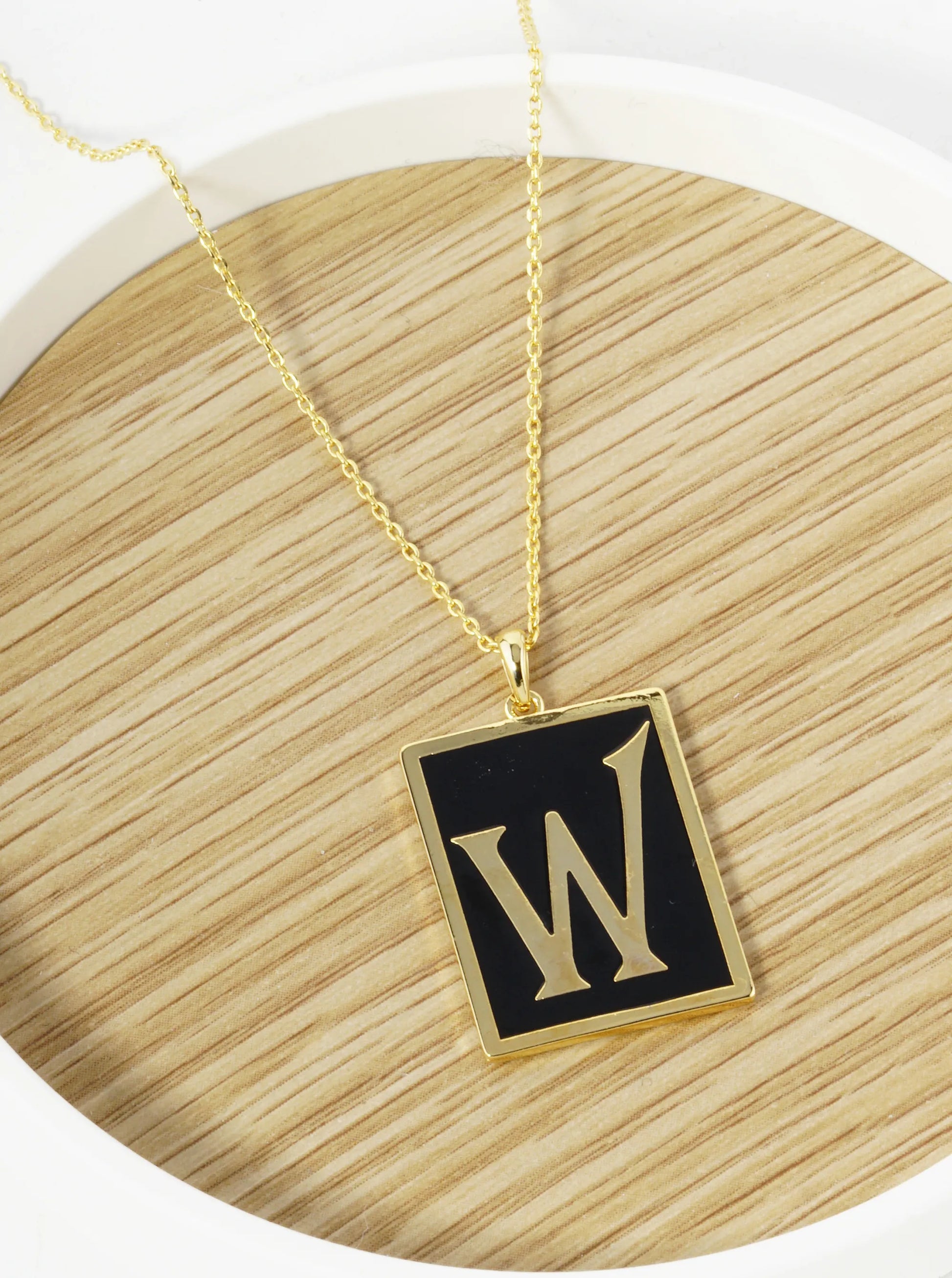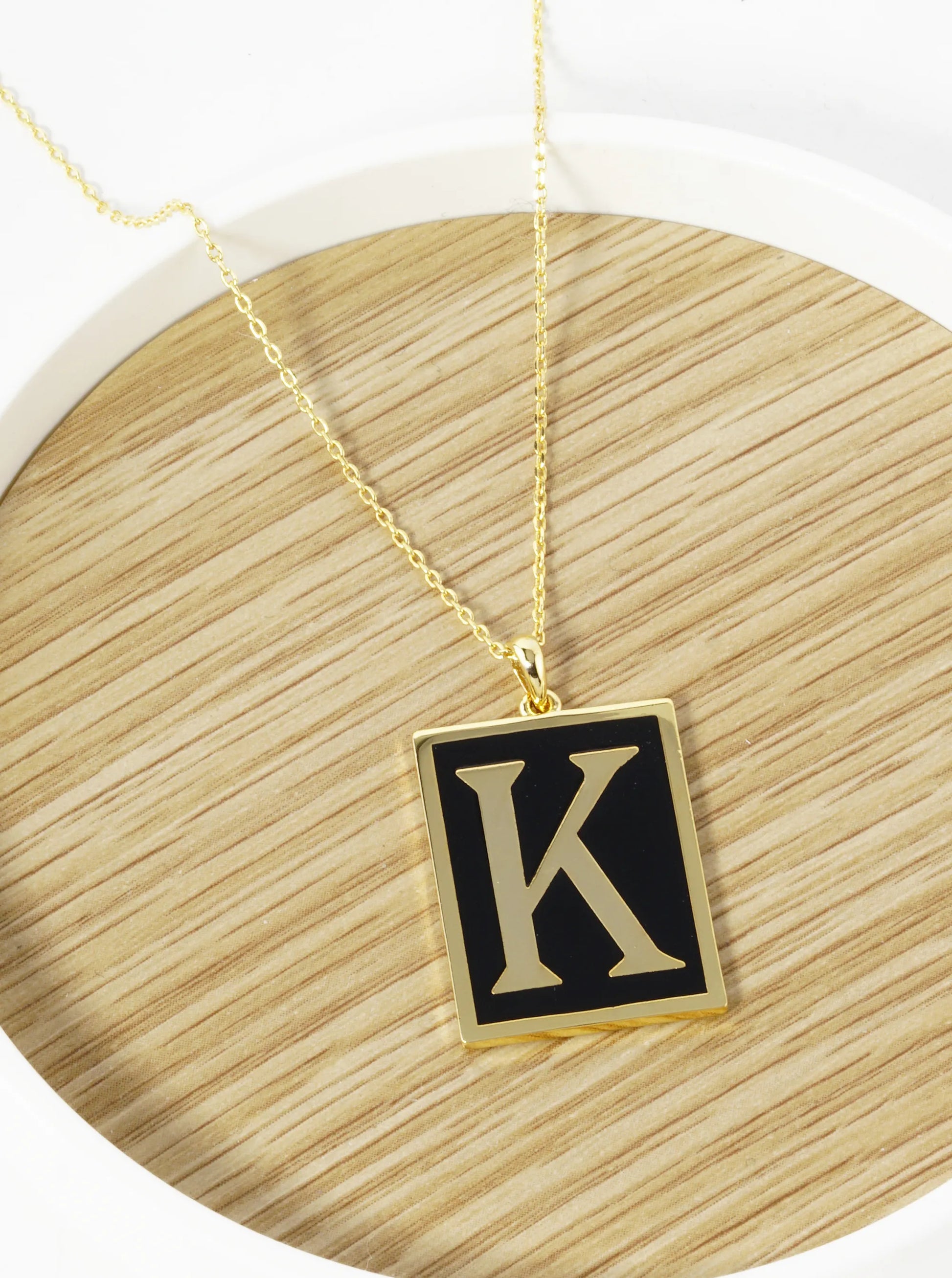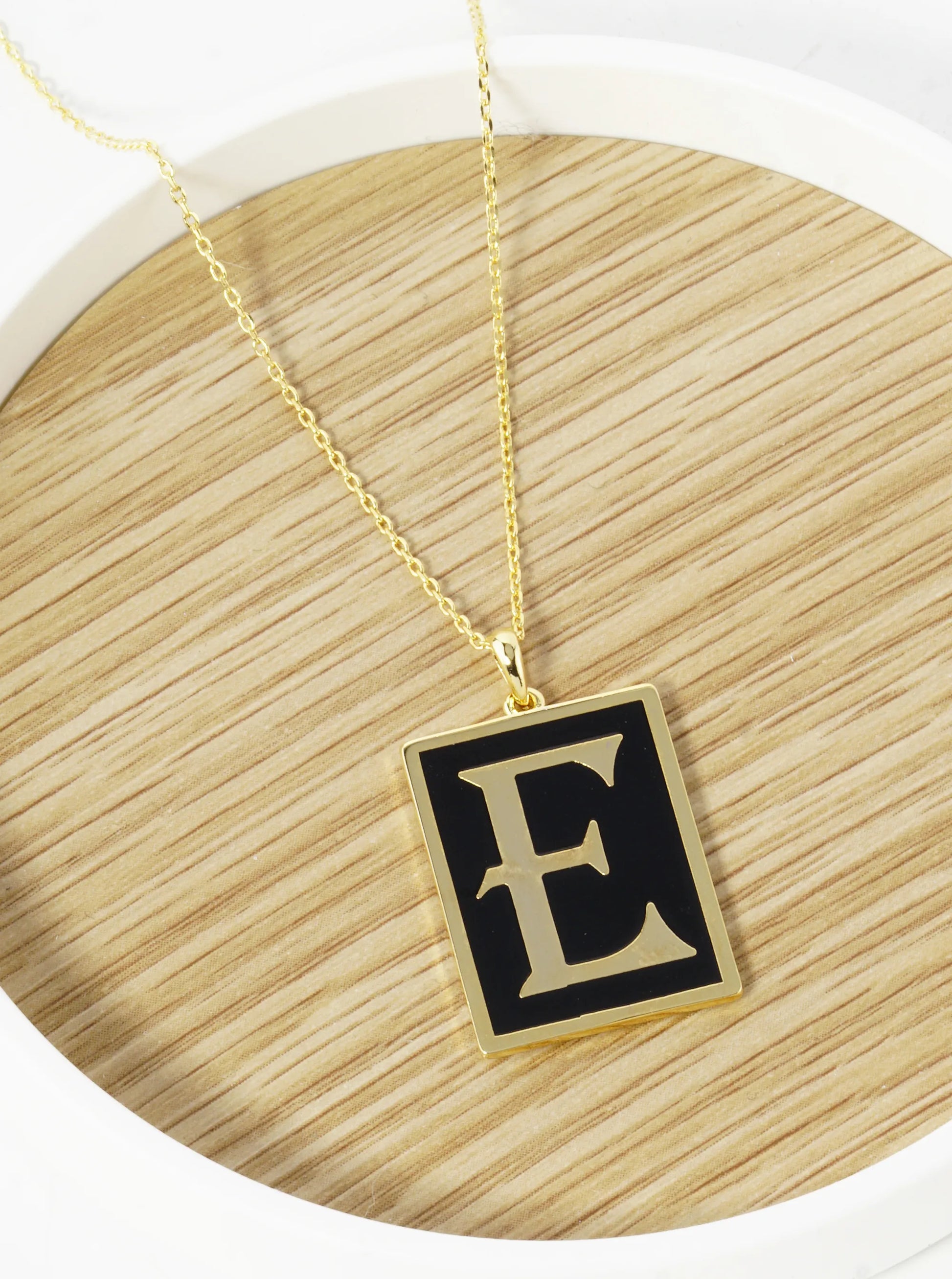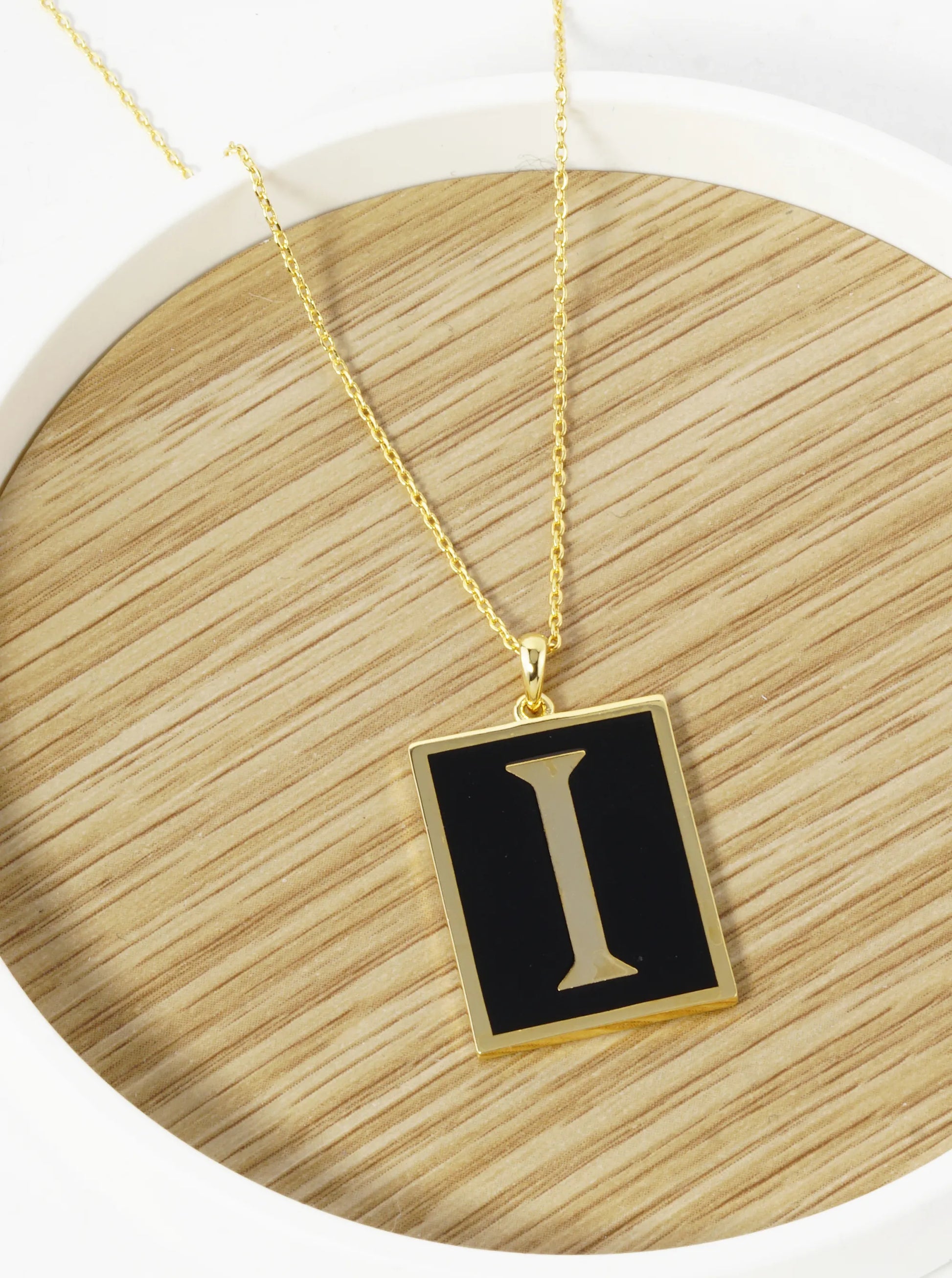 18K Gold Dipped Enamel Filled Rectangular Initial Pendant Necklace