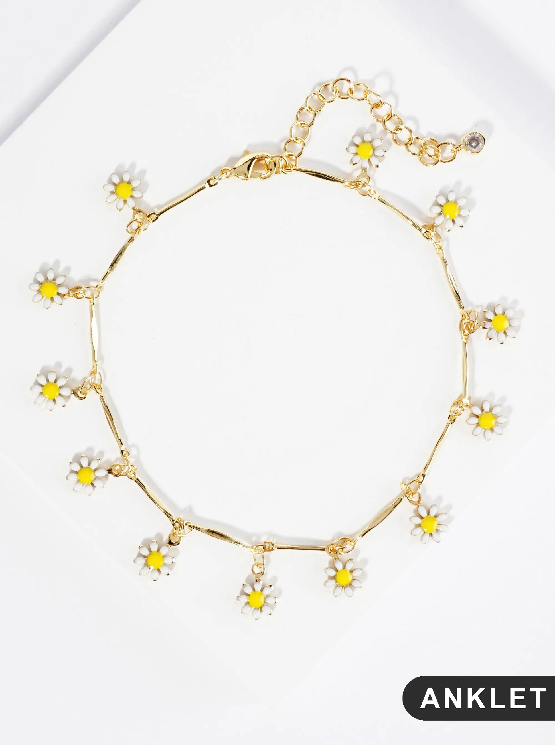 18K Gold Dipped Enamel Flower Charms Brass Chain Anklet