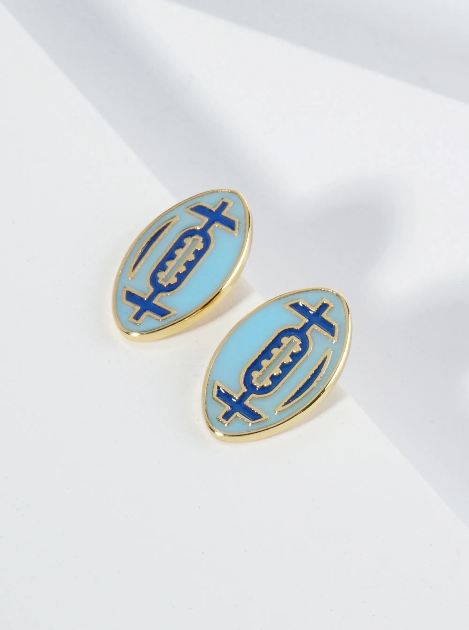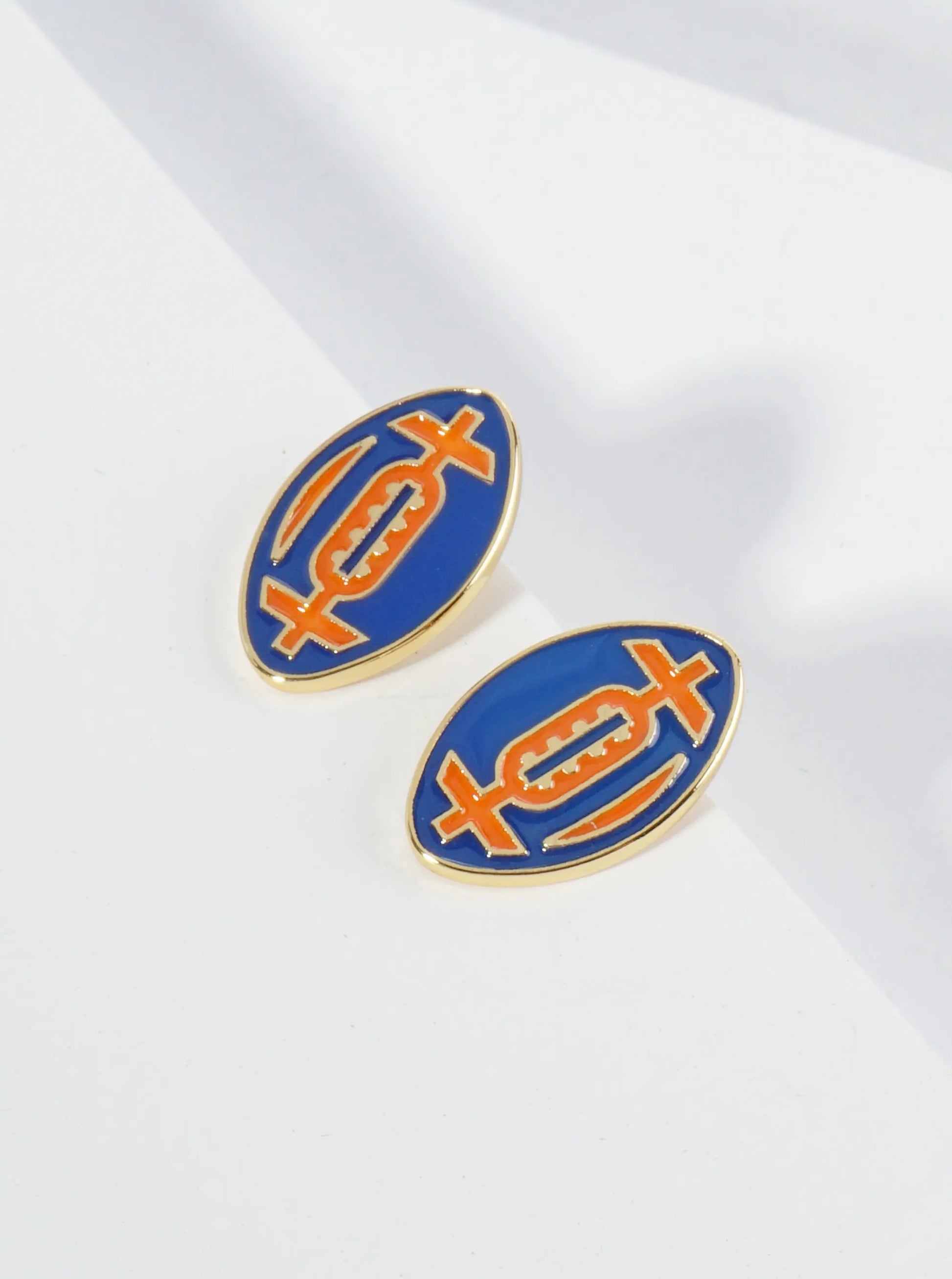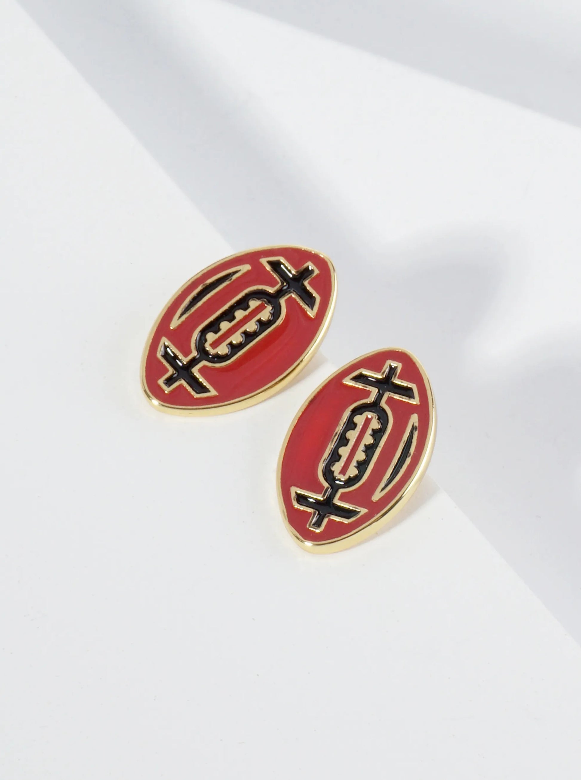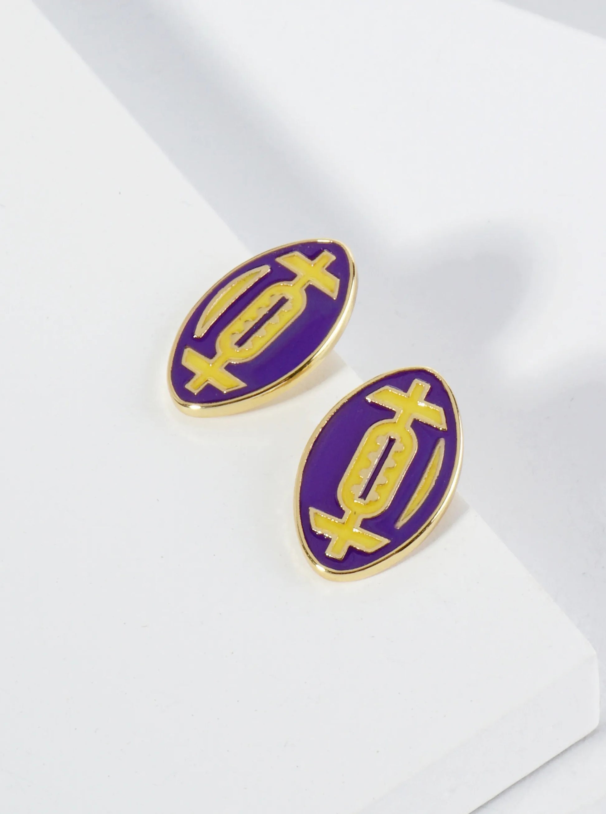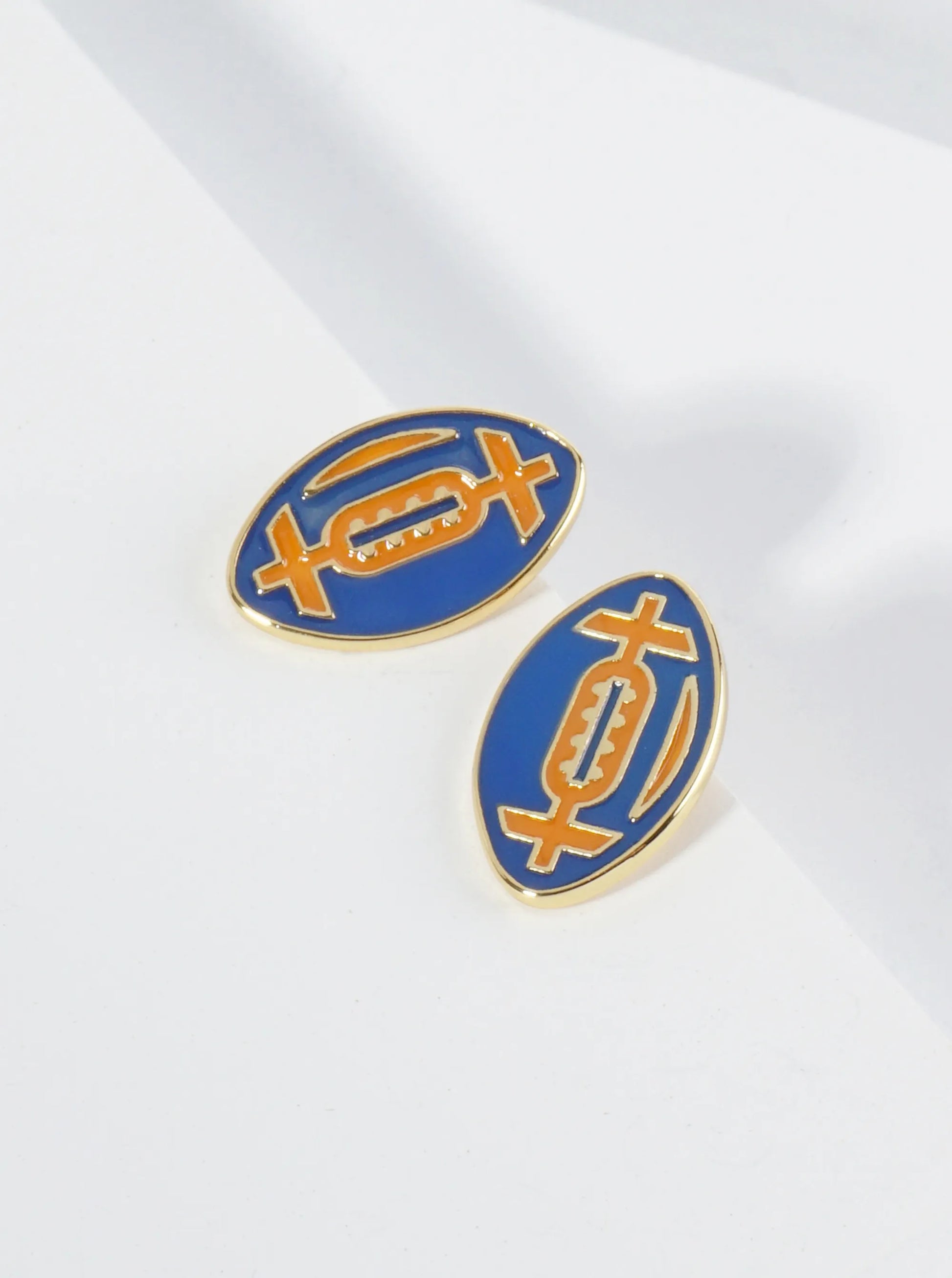 18K Gold Dipped Enamel Football Ball Game Day Stud Earrings