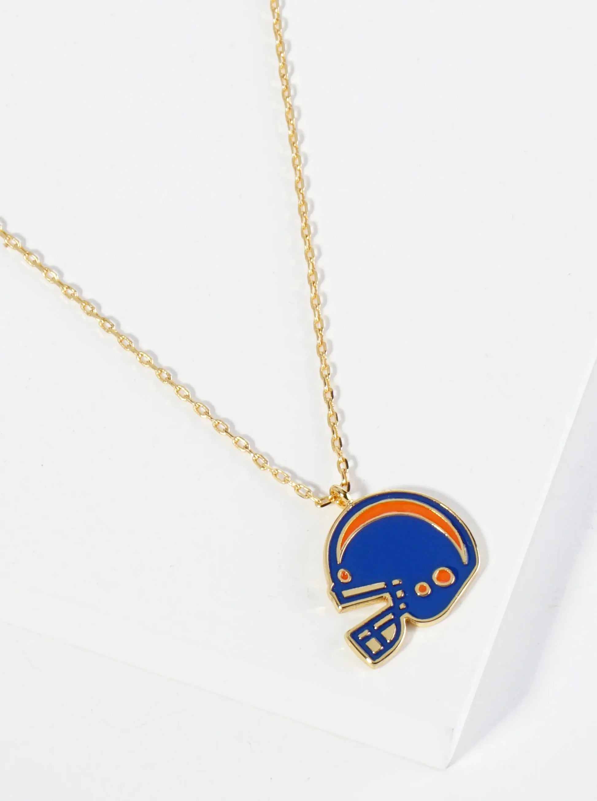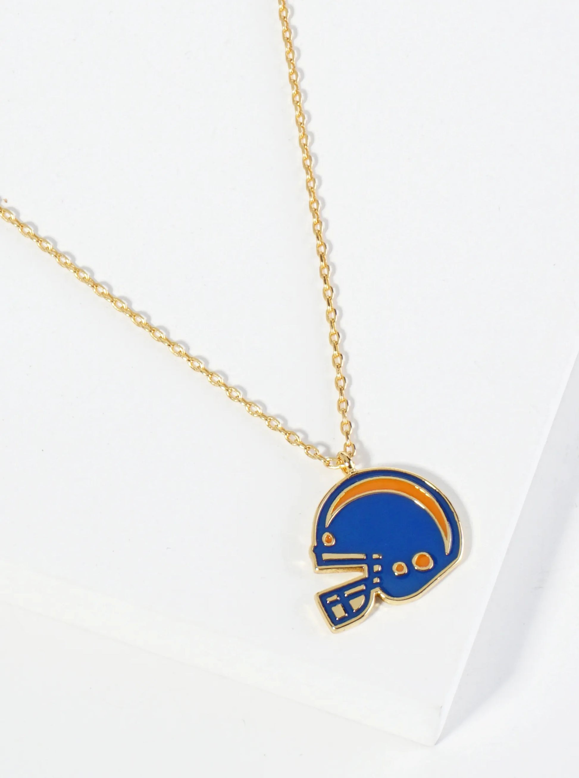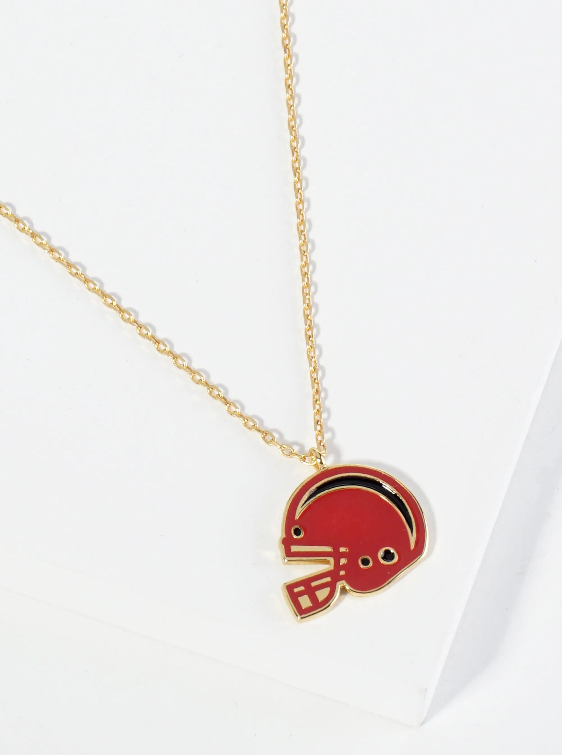 18K Gold Dipped Enamel Football Helmet Pendant Game Day Necklace