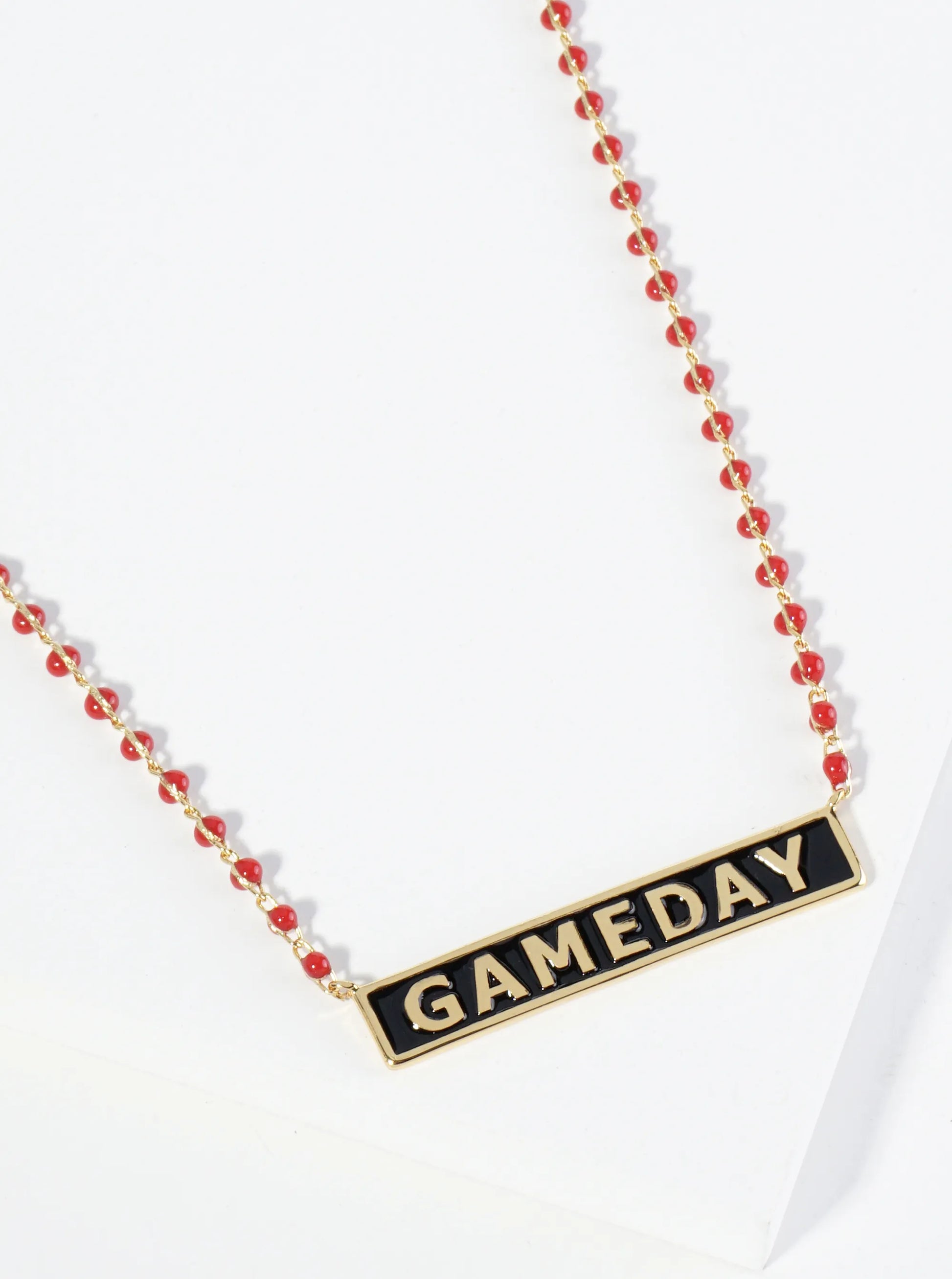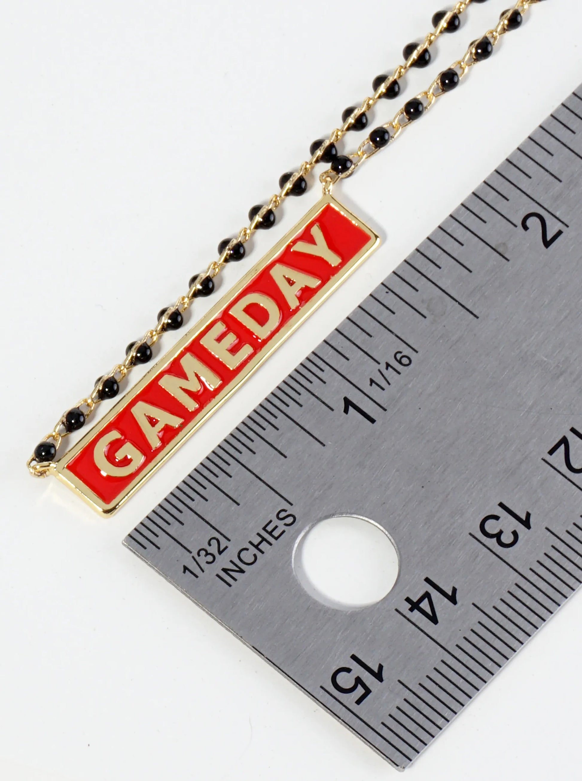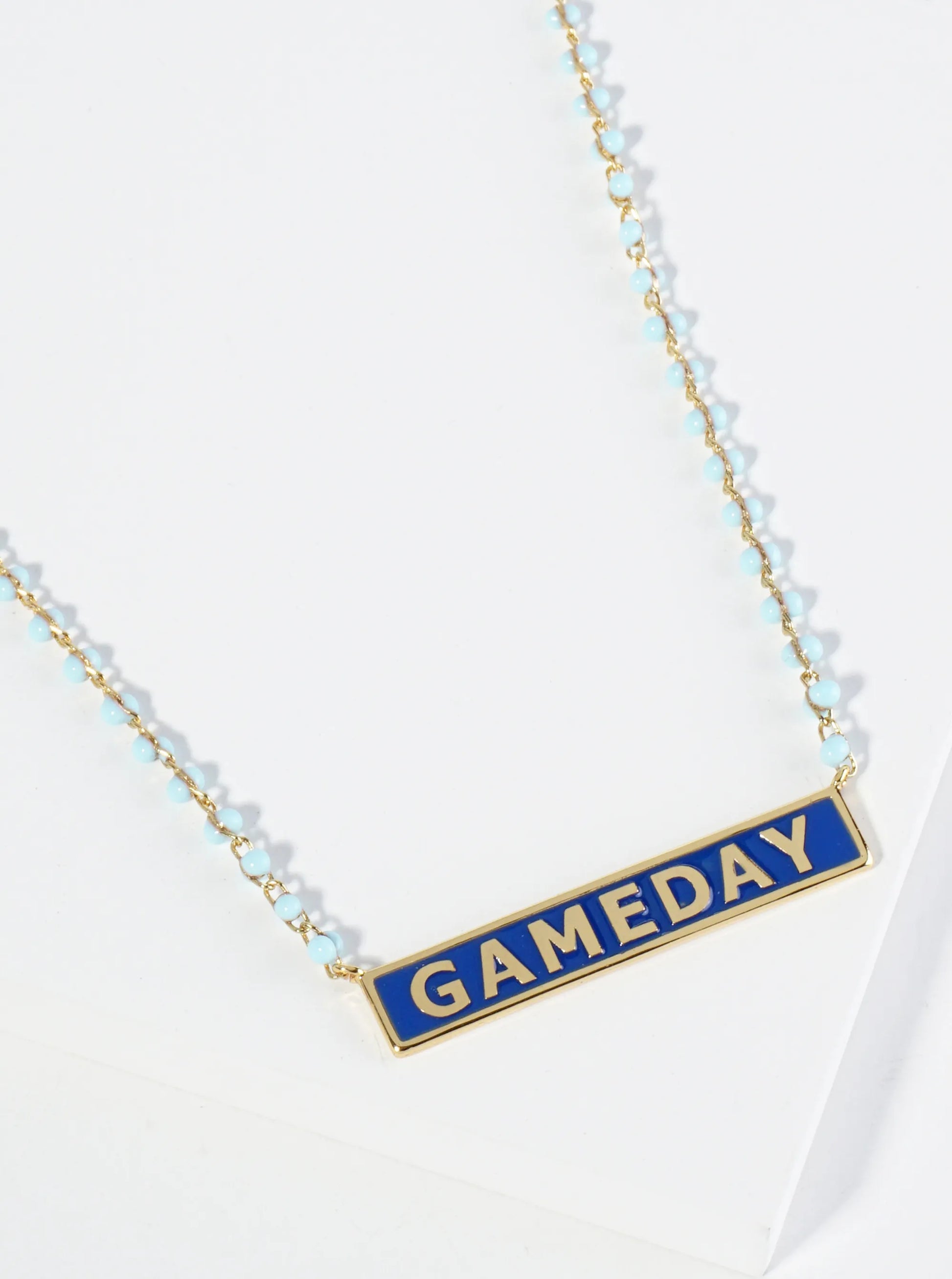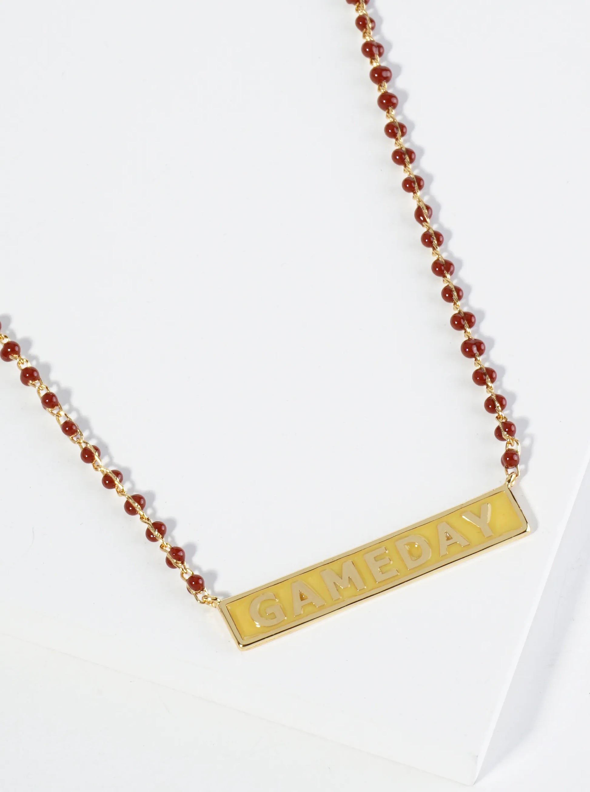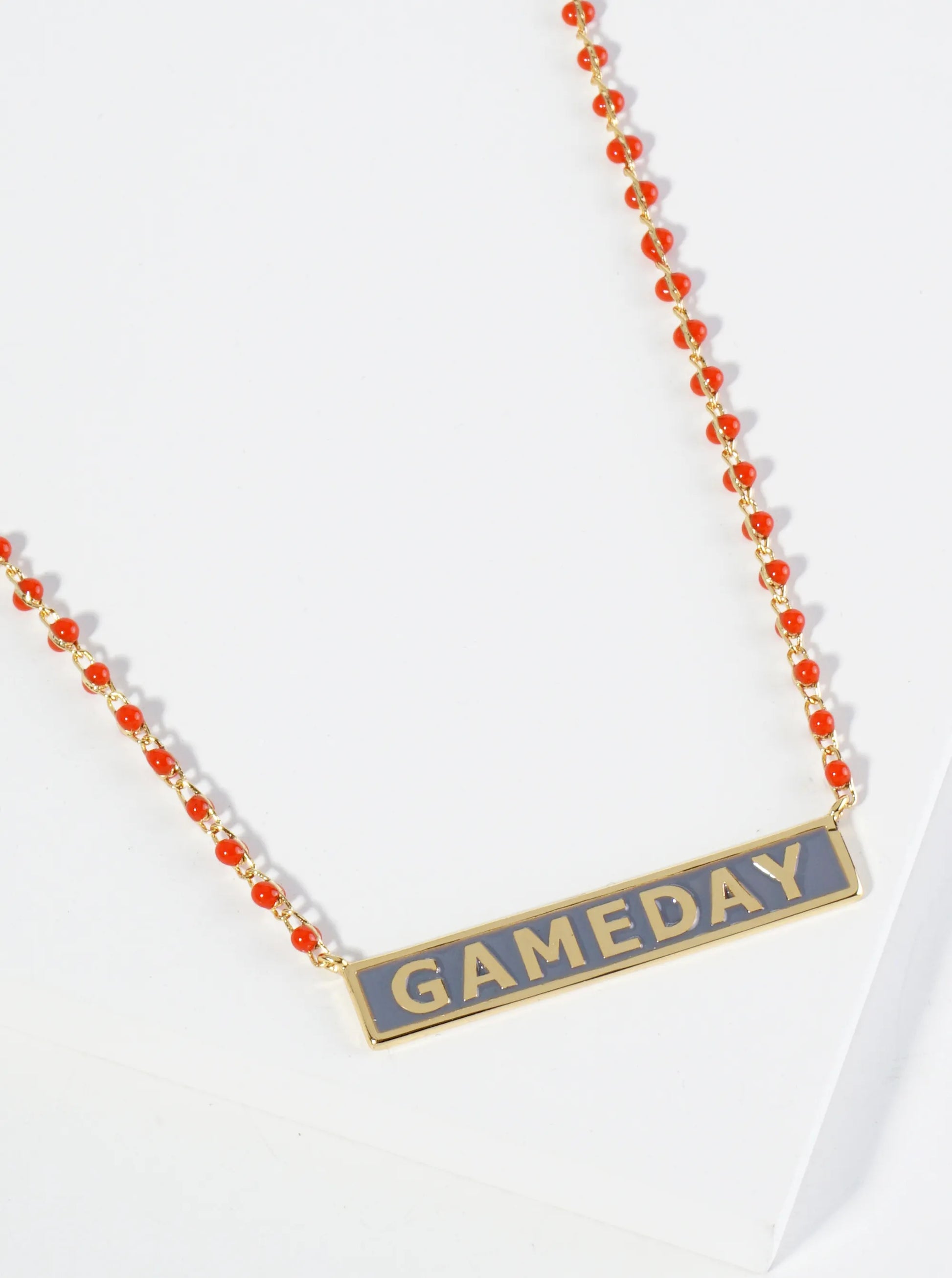 18K Gold Dipped Enamel Game Day Pendant Glass Beaded Chain Necklace