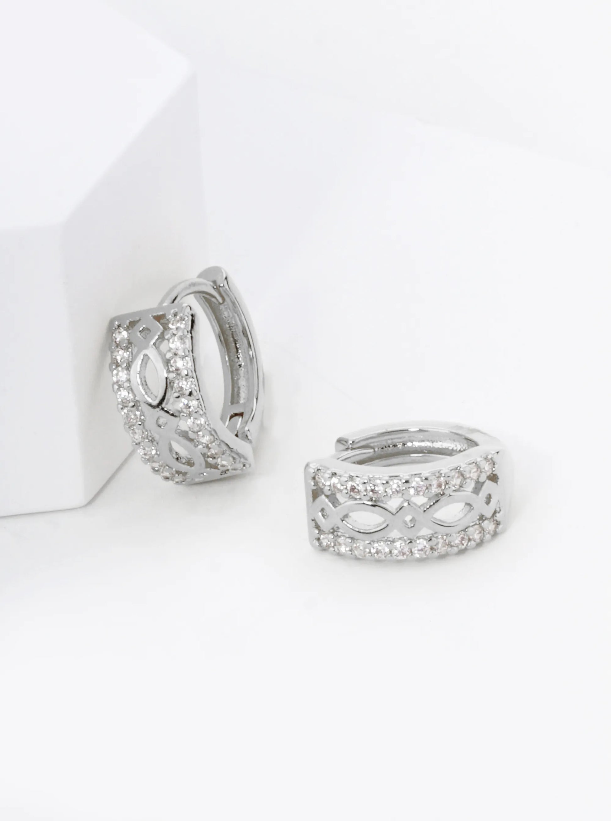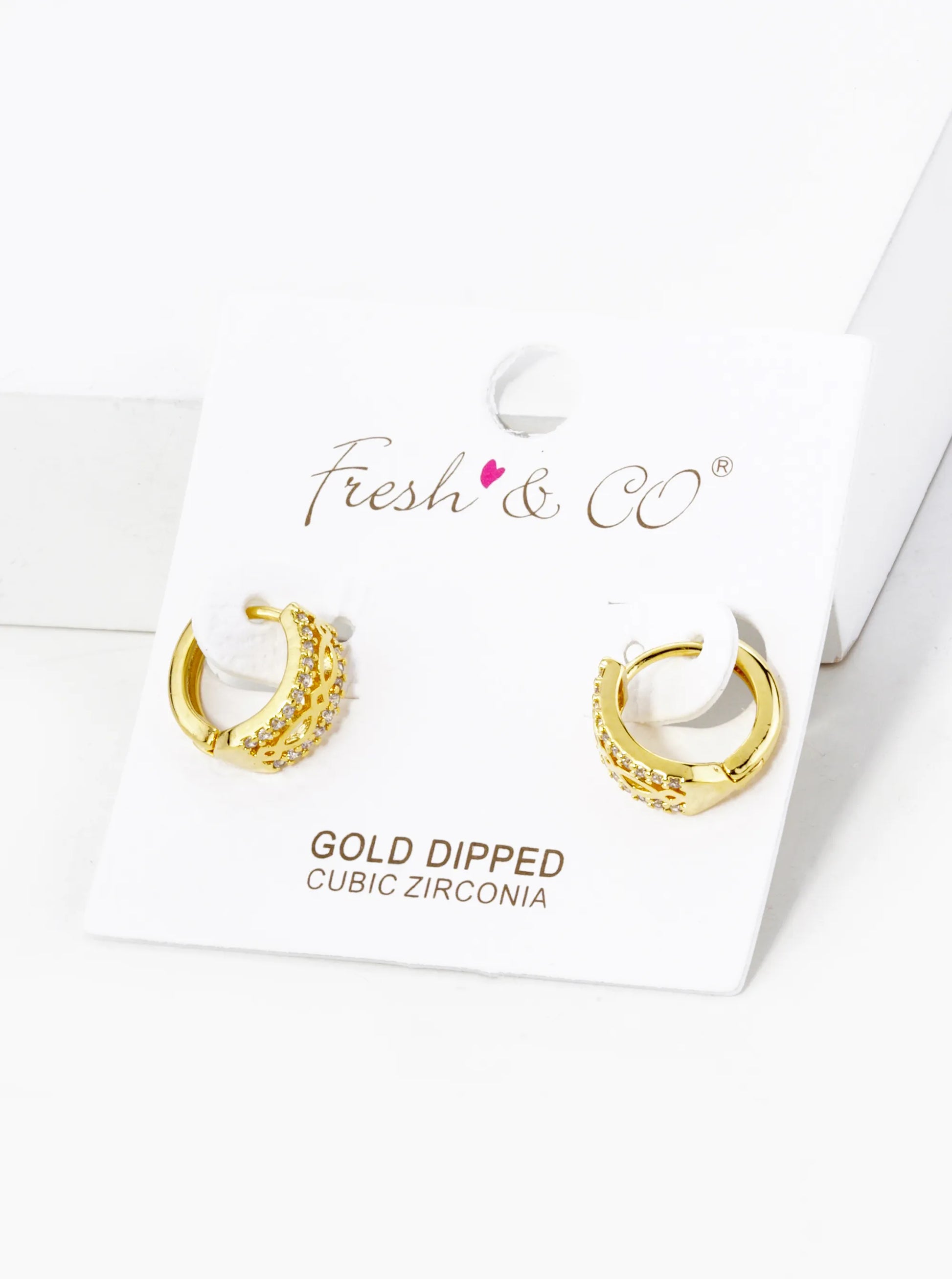 18K Gold Dipped Filigree Micro Pave Set Cubic Zirconia 12mm Huggie Hoop Earrings