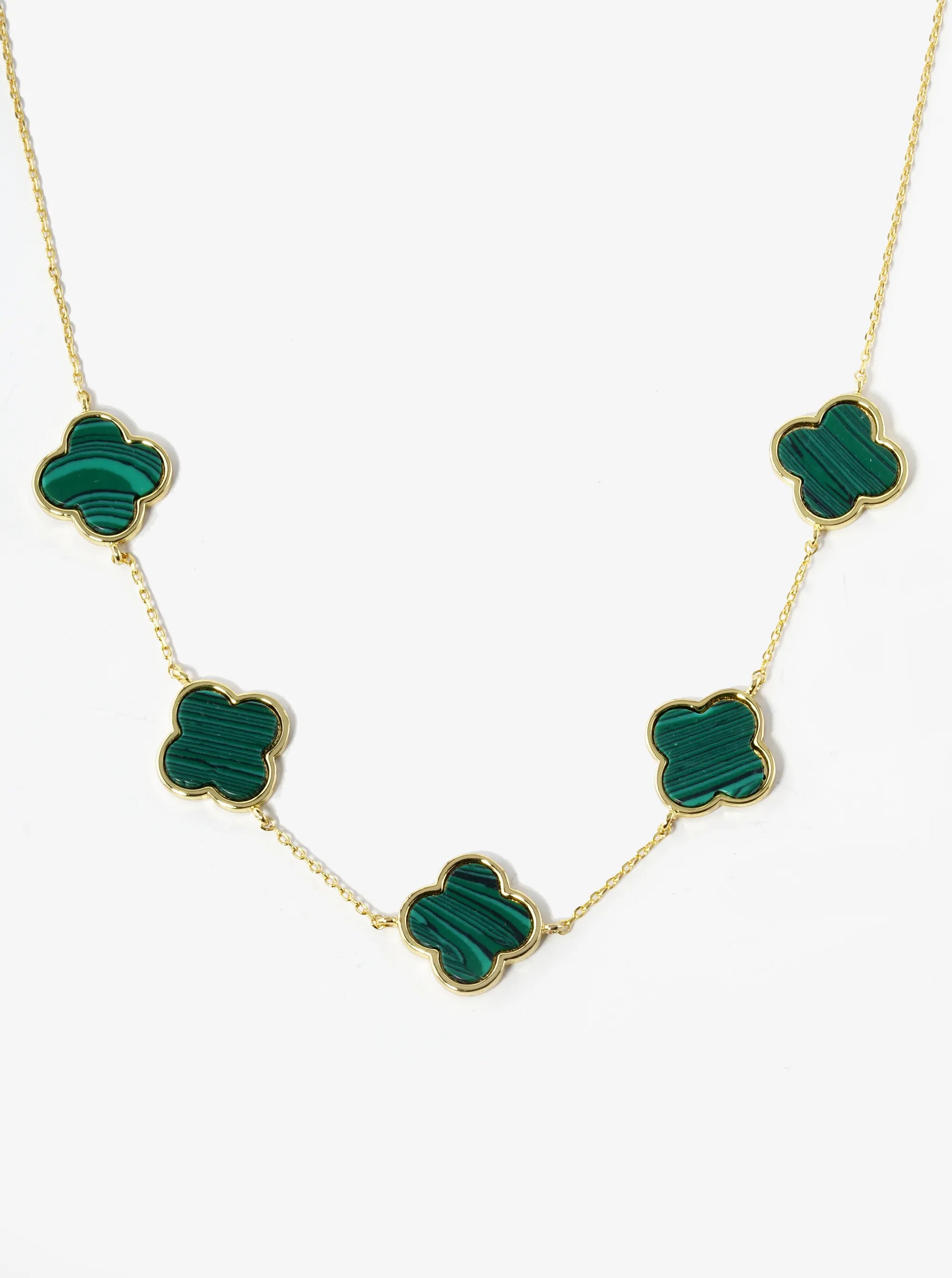 18K Gold Dipped Five 14mm Semi-Precious Quatrefoil Station Necklace