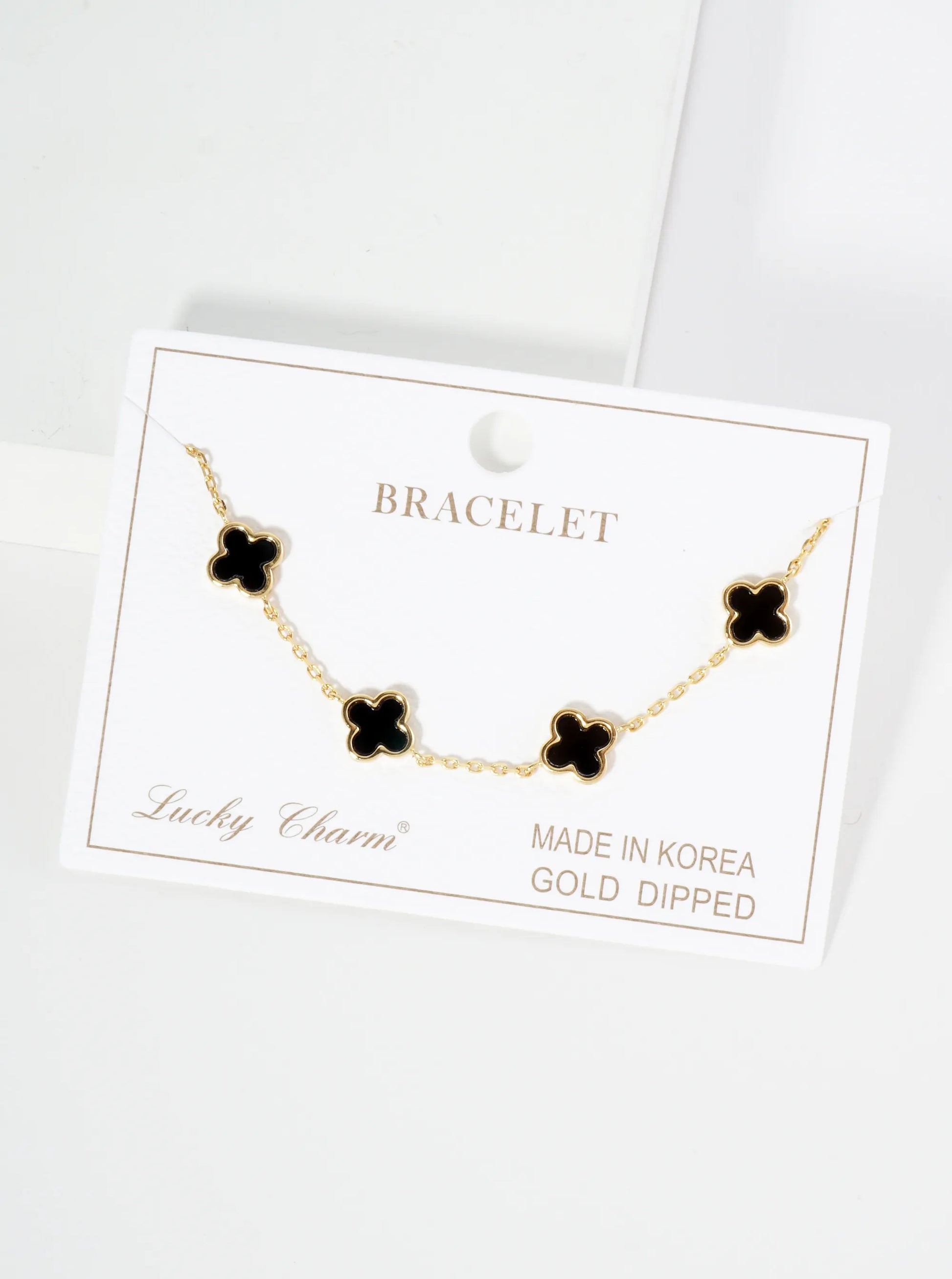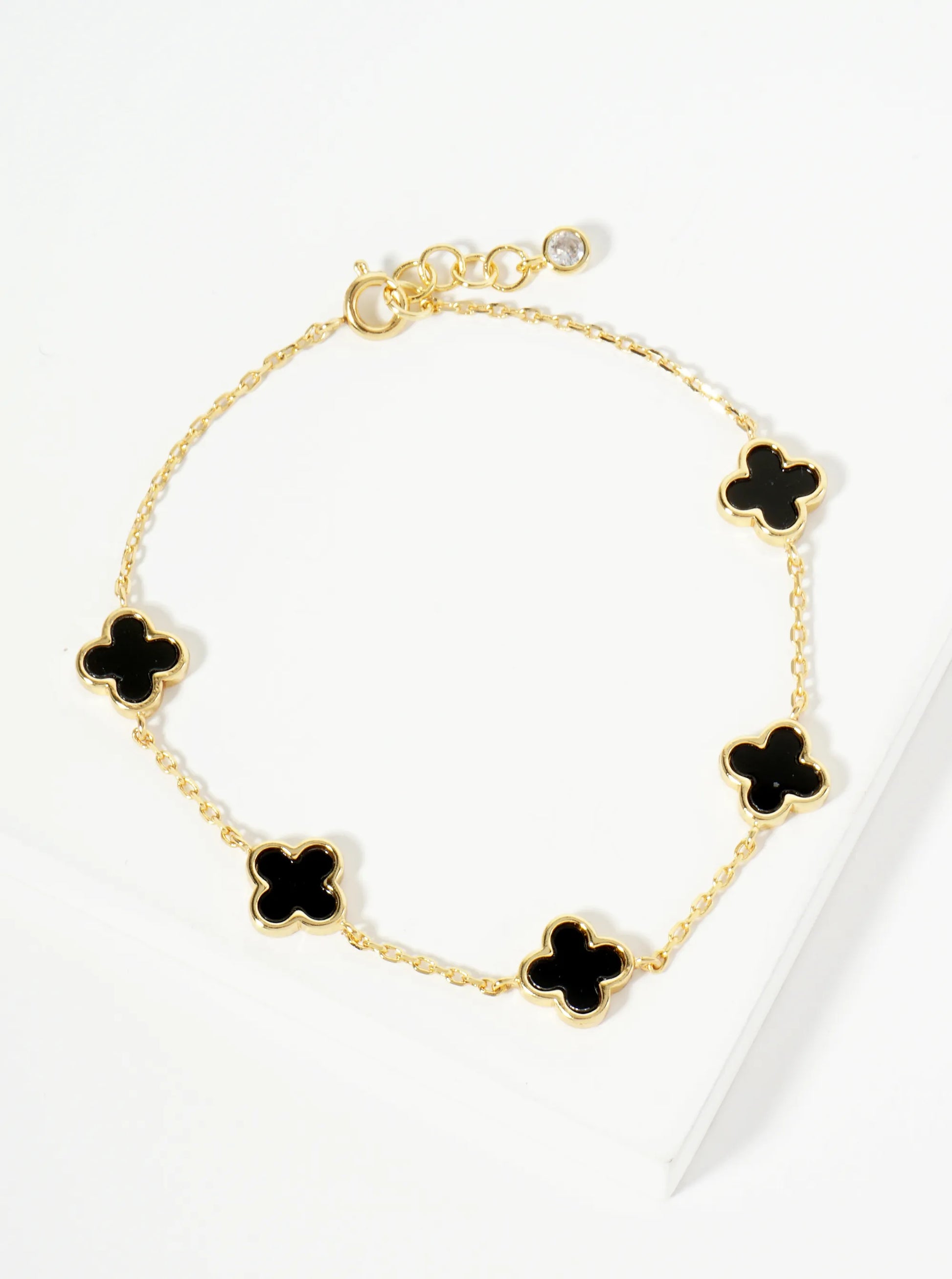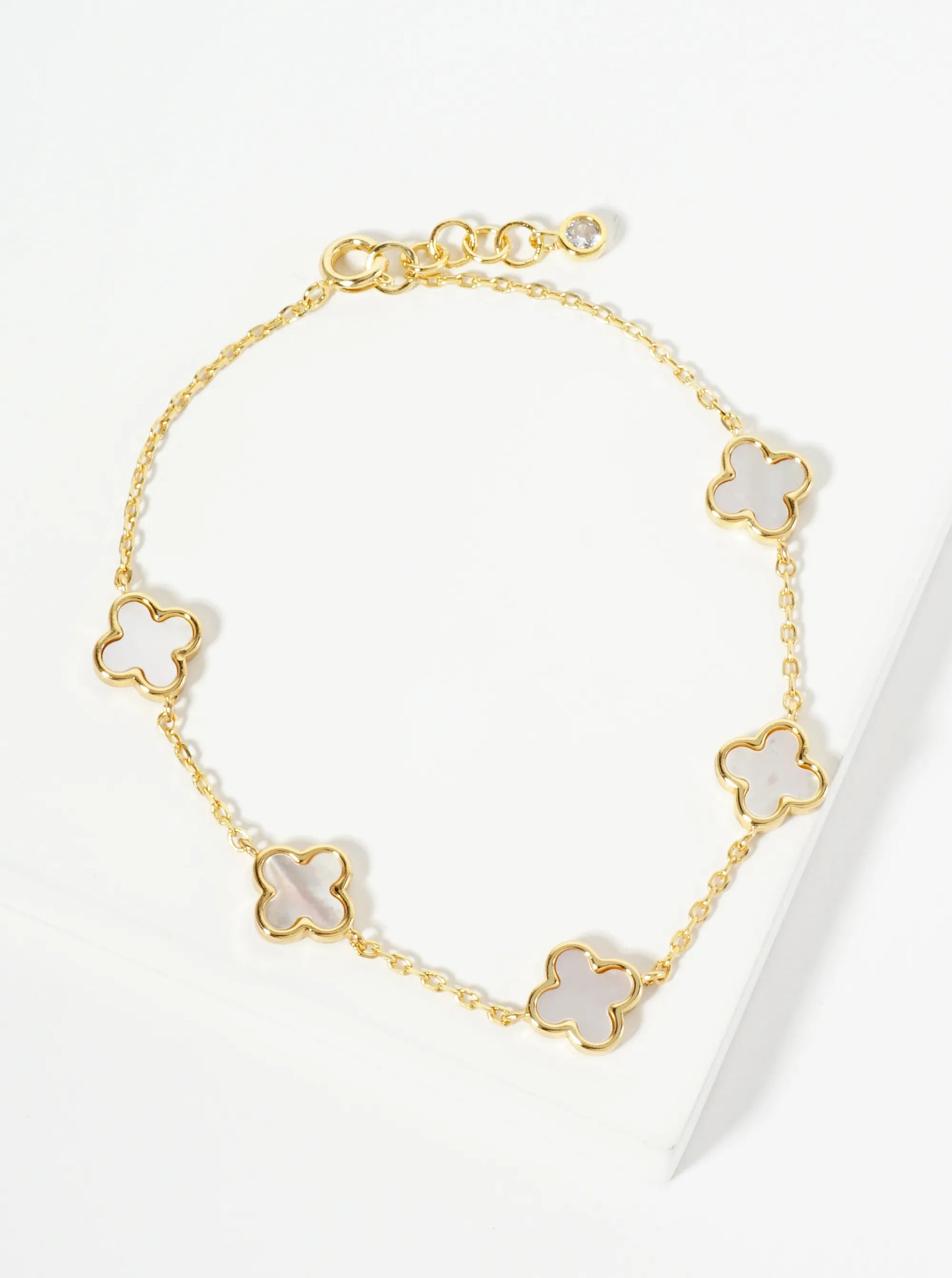 18K Gold Dipped Five 9mm Quatrefoil Station Bracelet