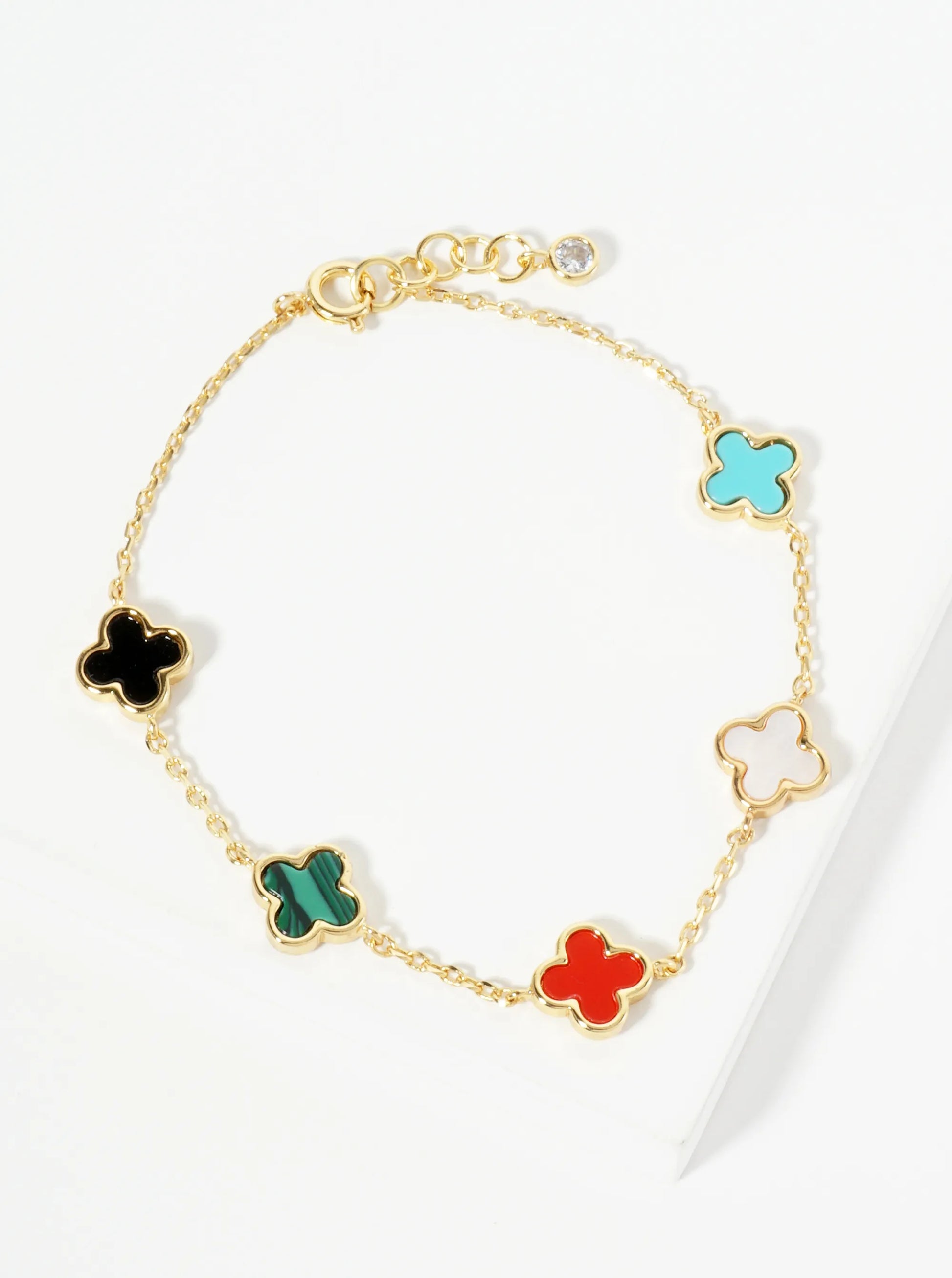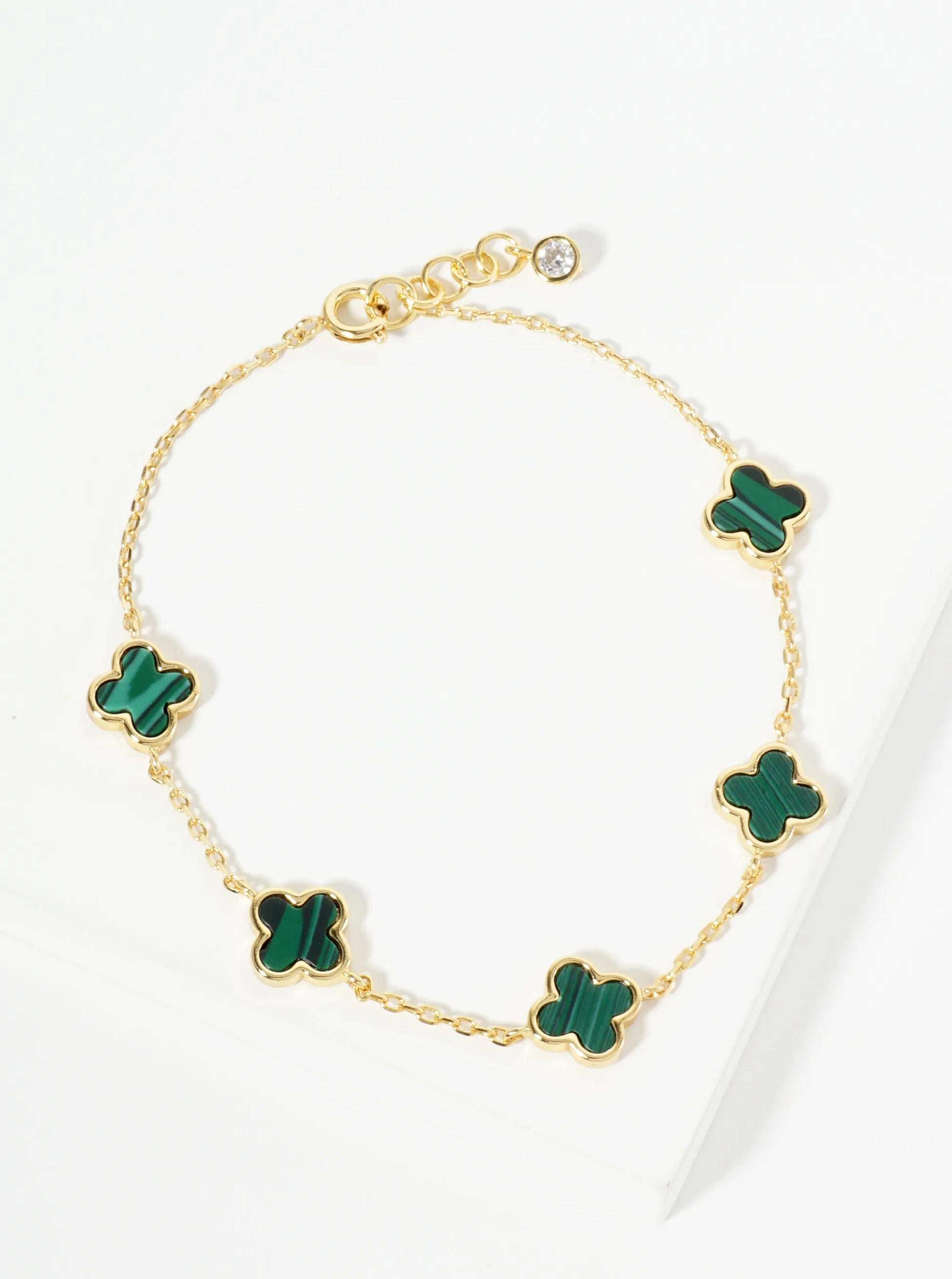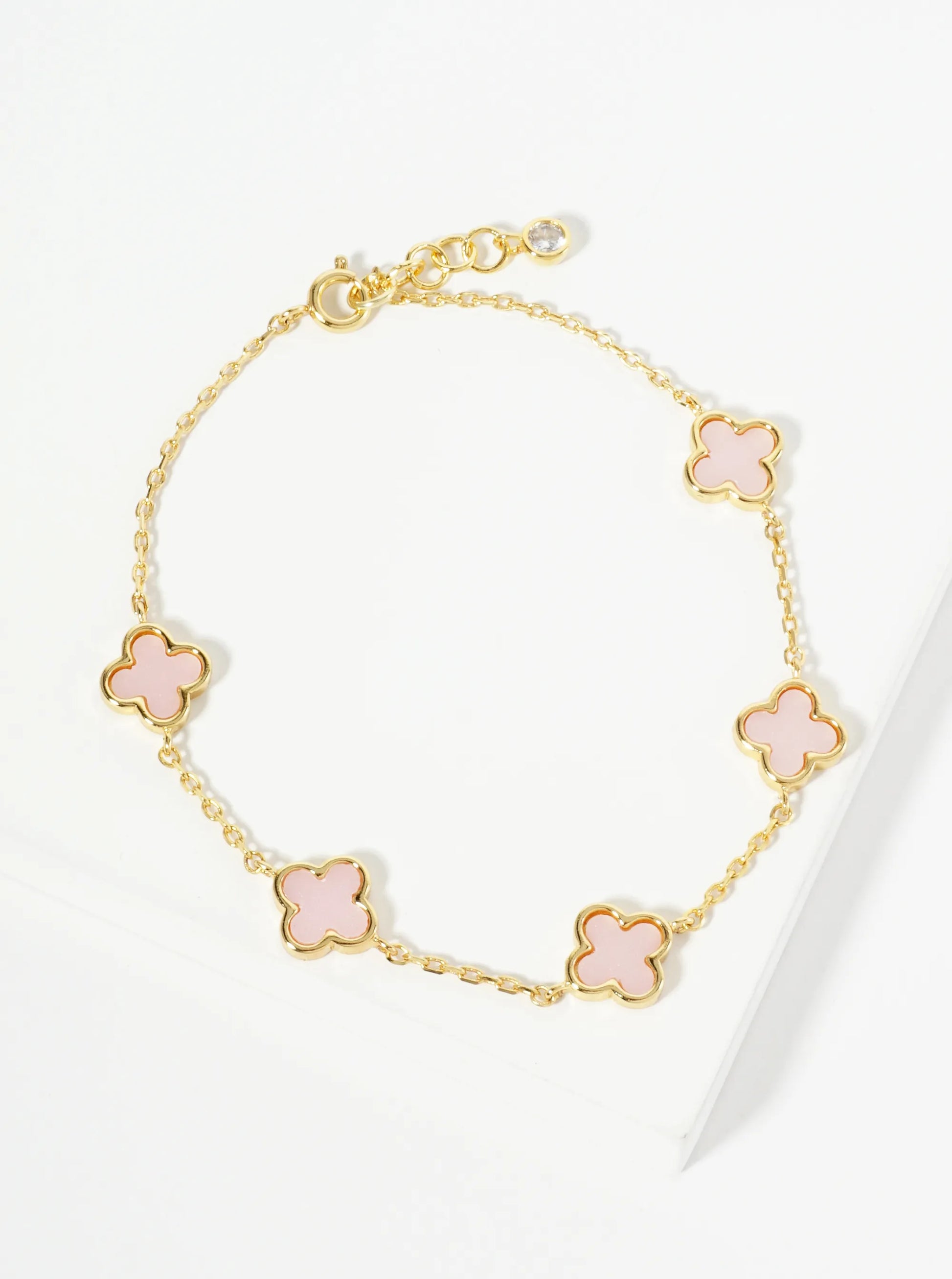 18K Gold Dipped Five 9mm Quatrefoil Station Bracelet