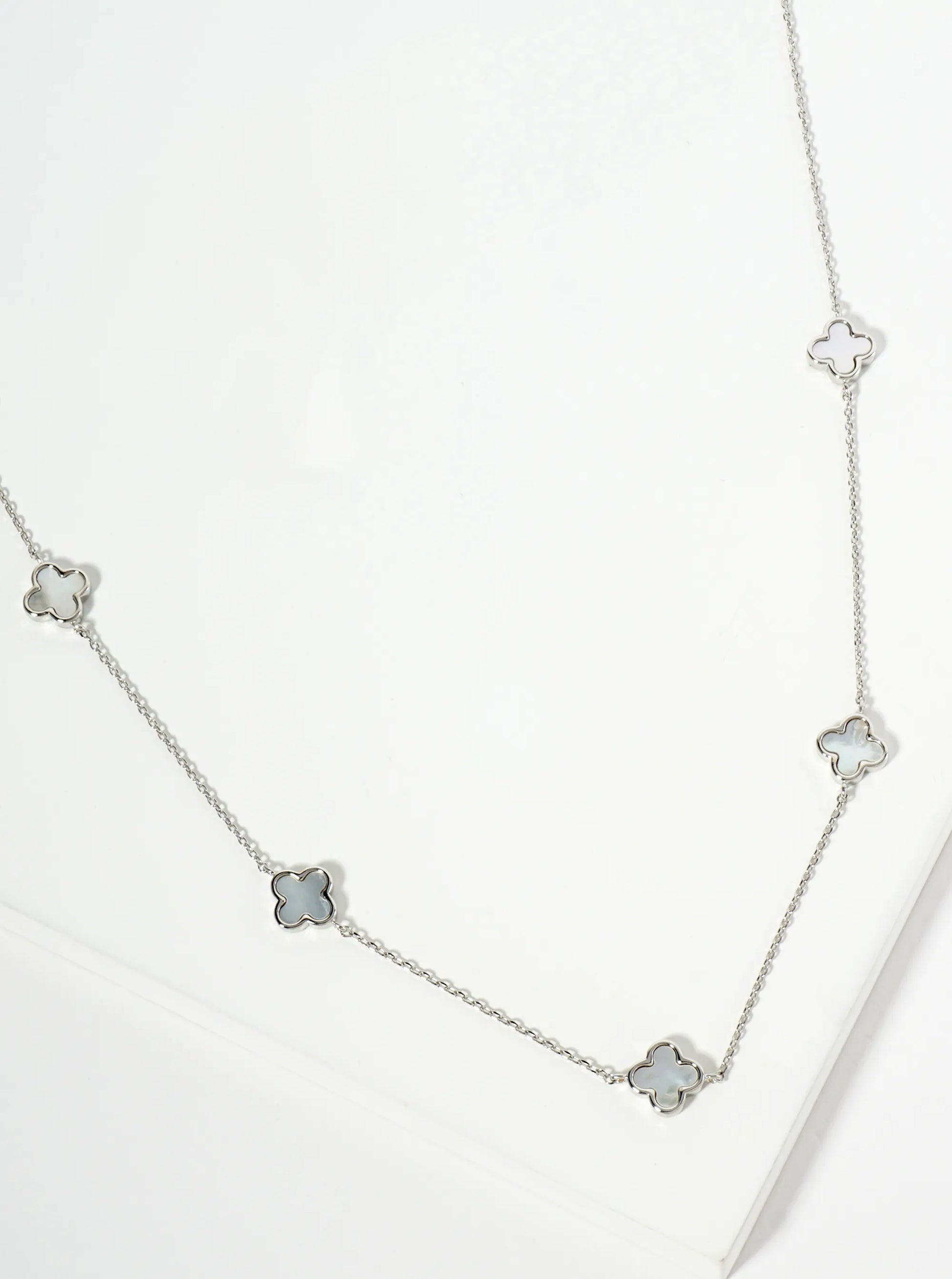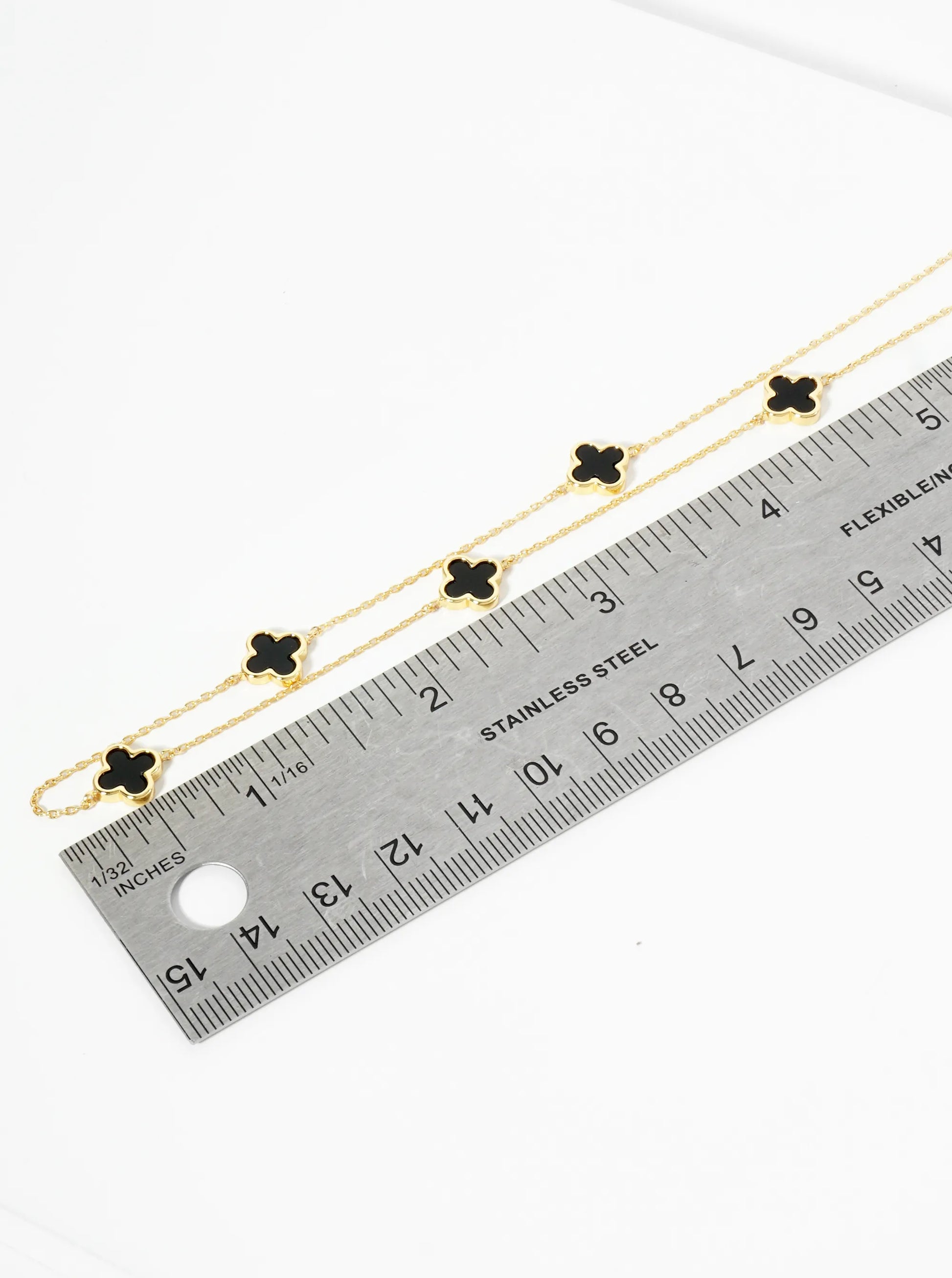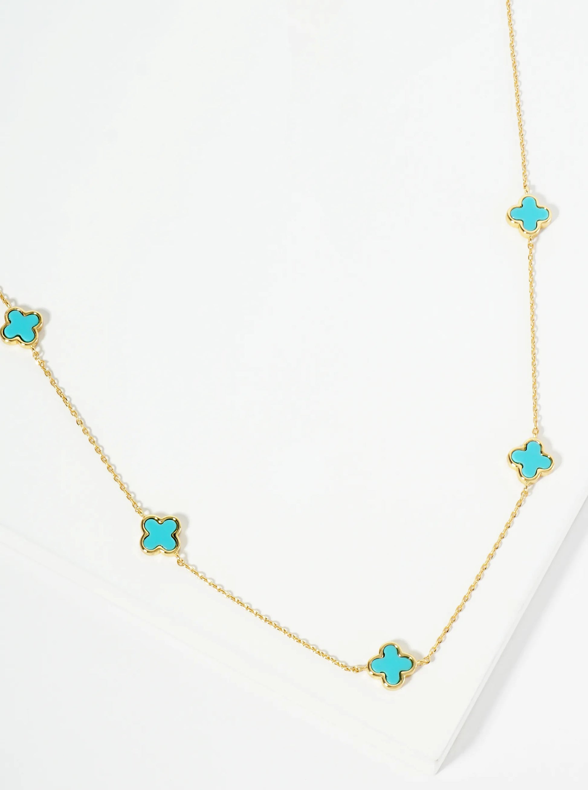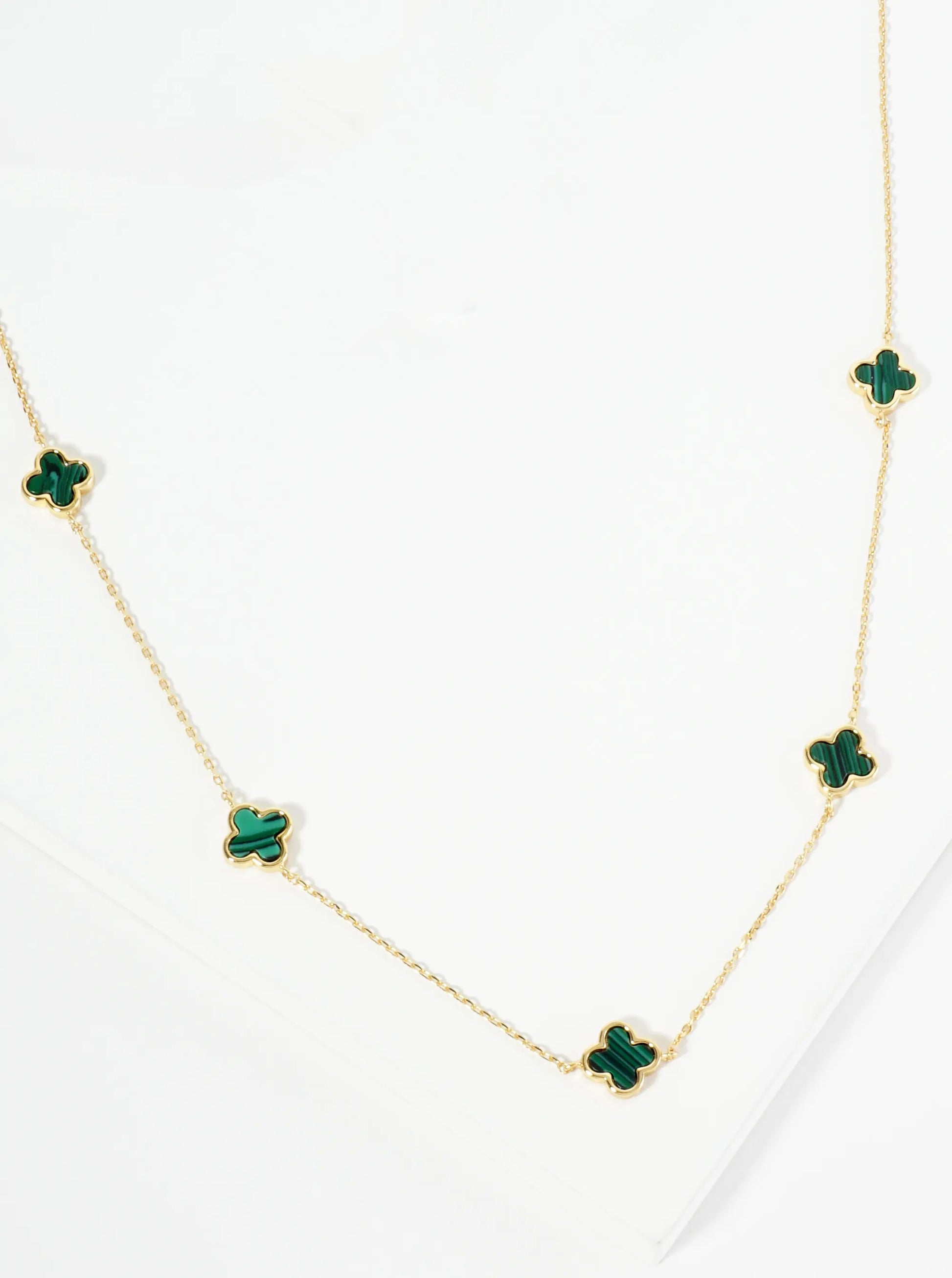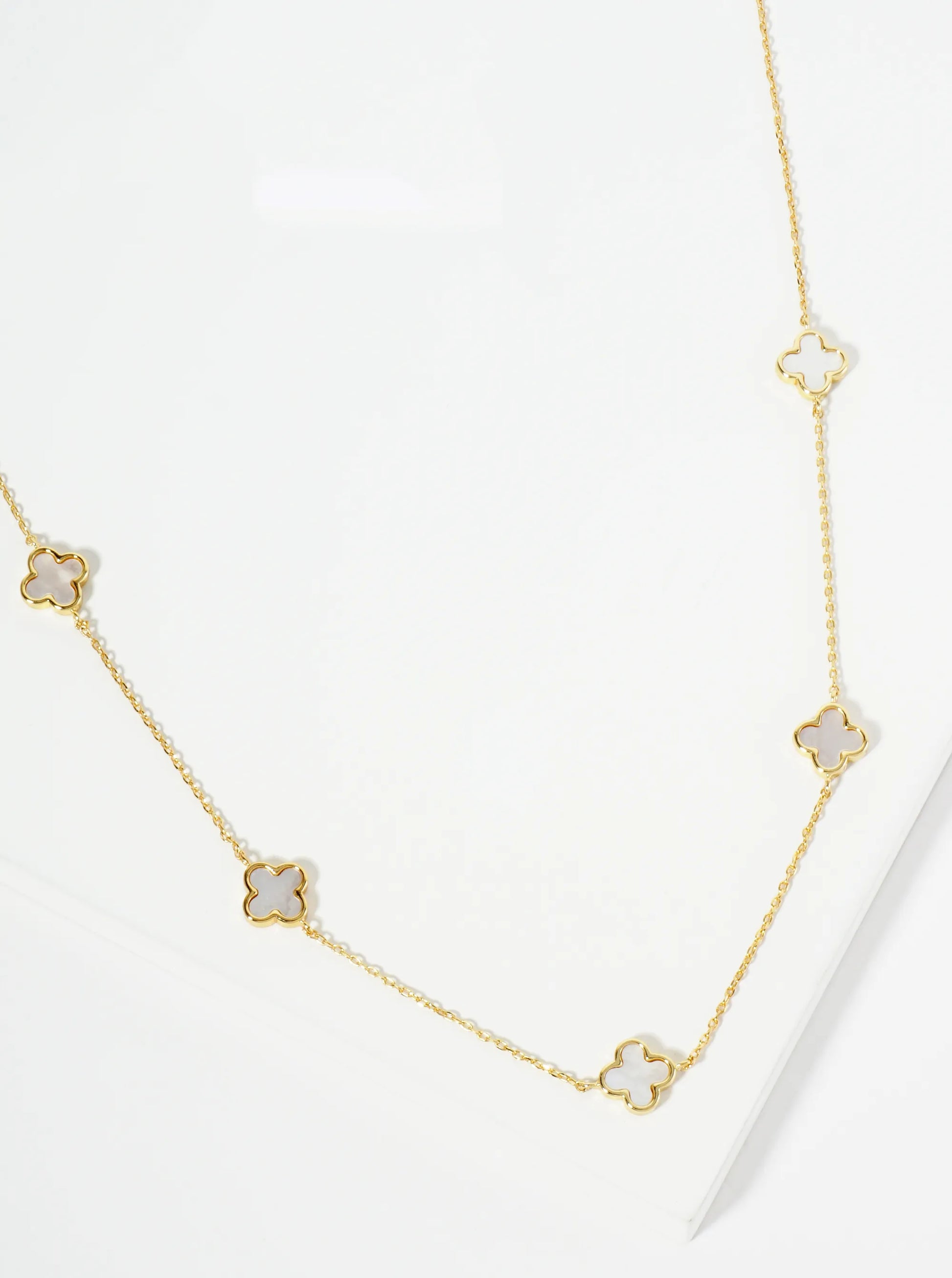 18K Gold Dipped Five 9mm Quatrefoil Station Necklace
