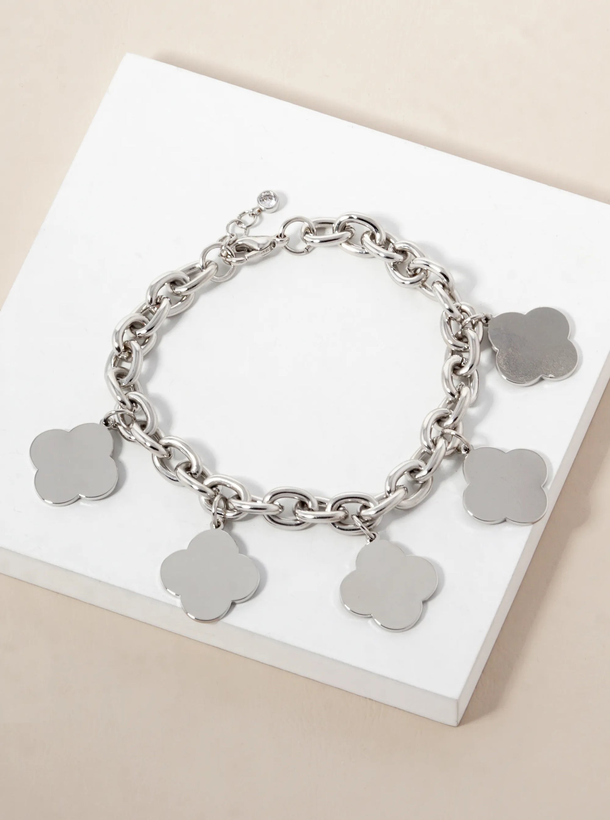 18K Gold Dipped Five Brass Quatrefoil Charms Chain Bracelet