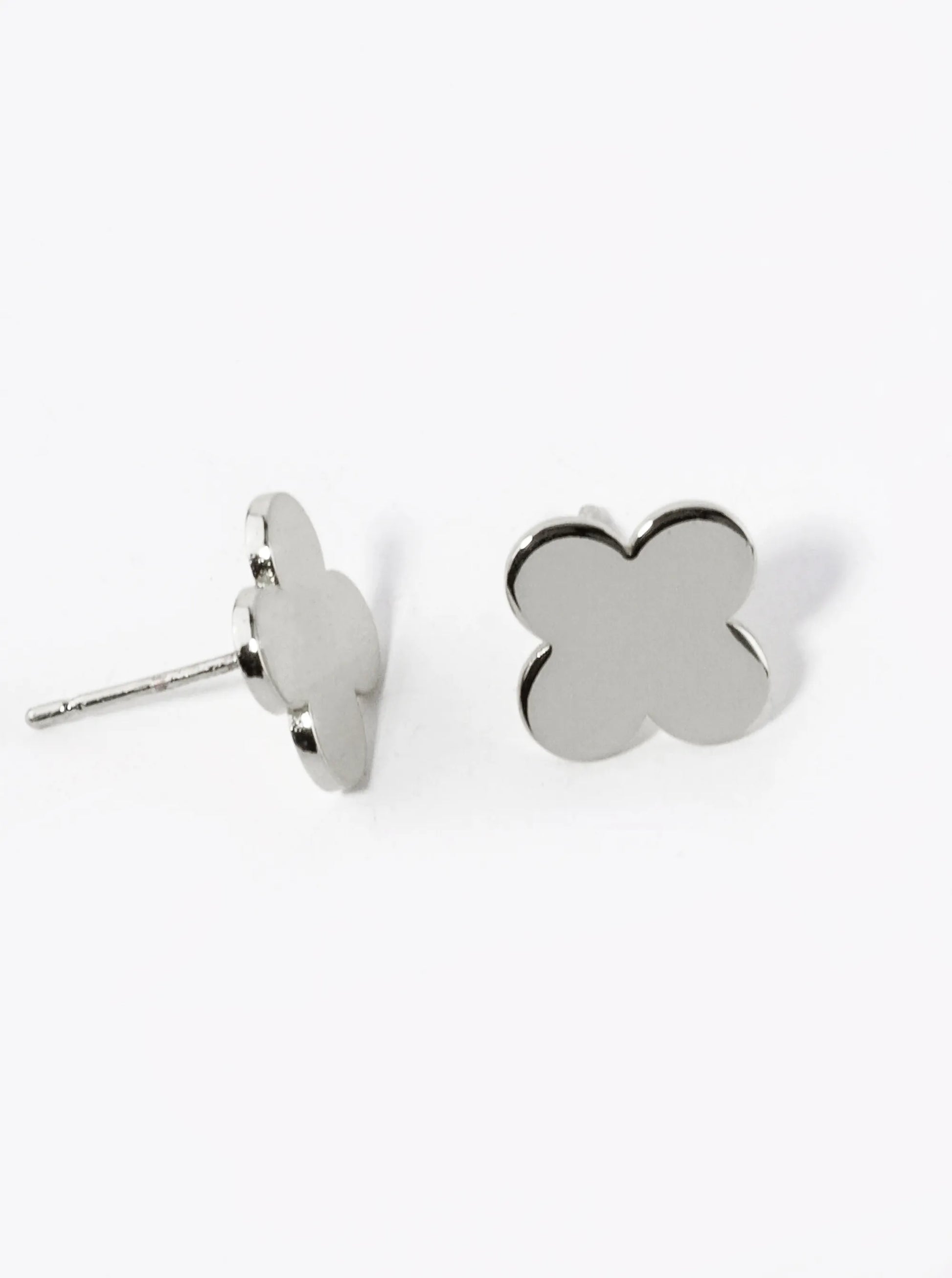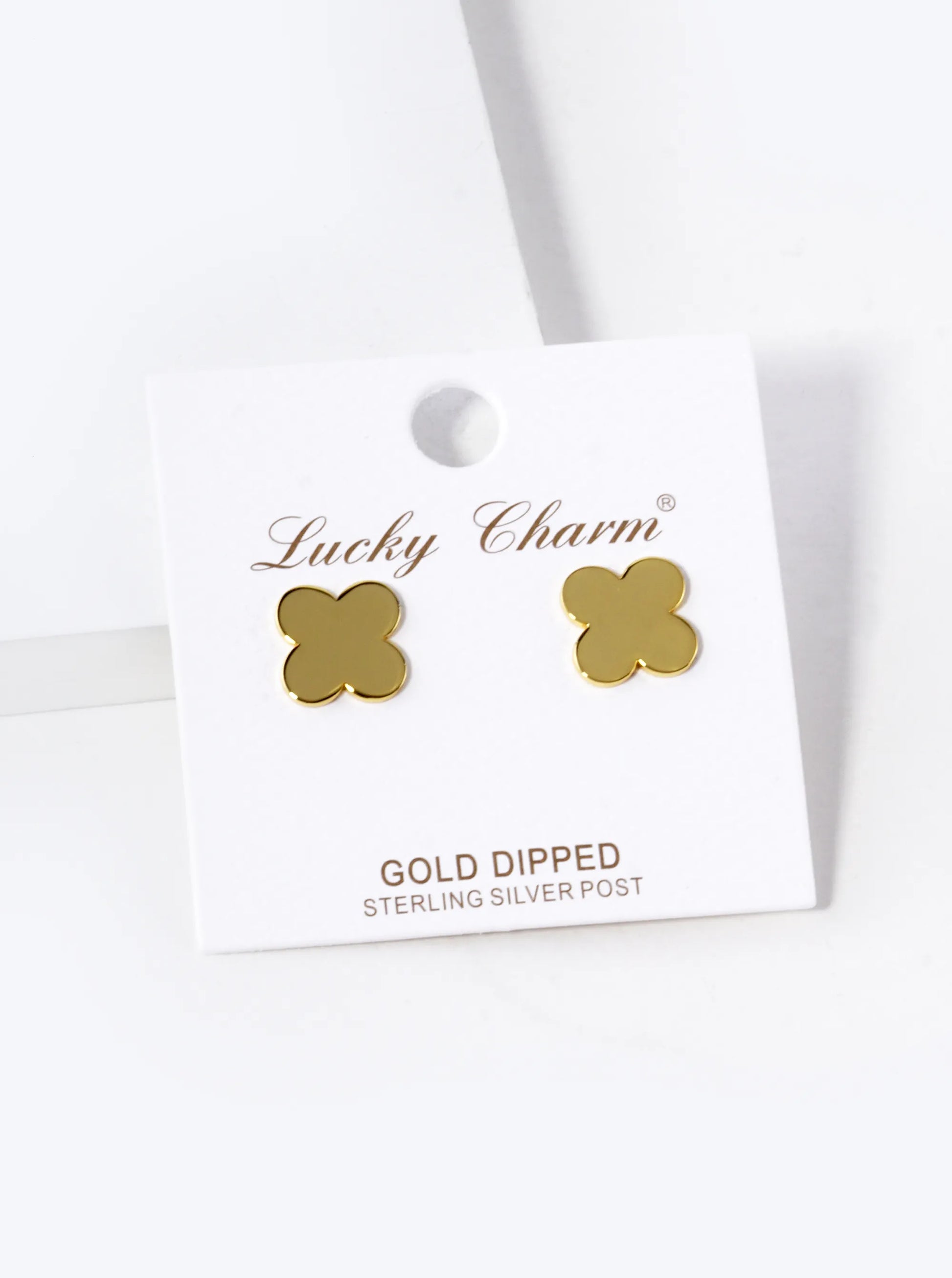 18K Gold Dipped Flat Brass Four Leaf Clover Stud Earrings