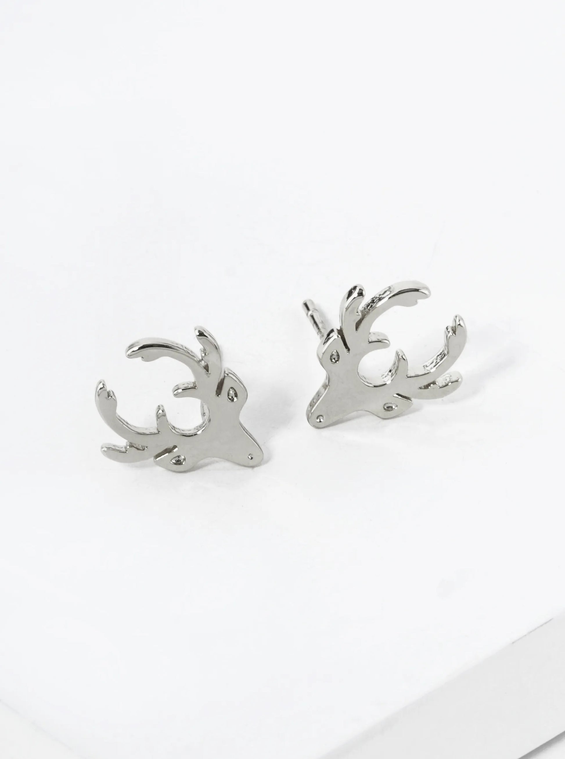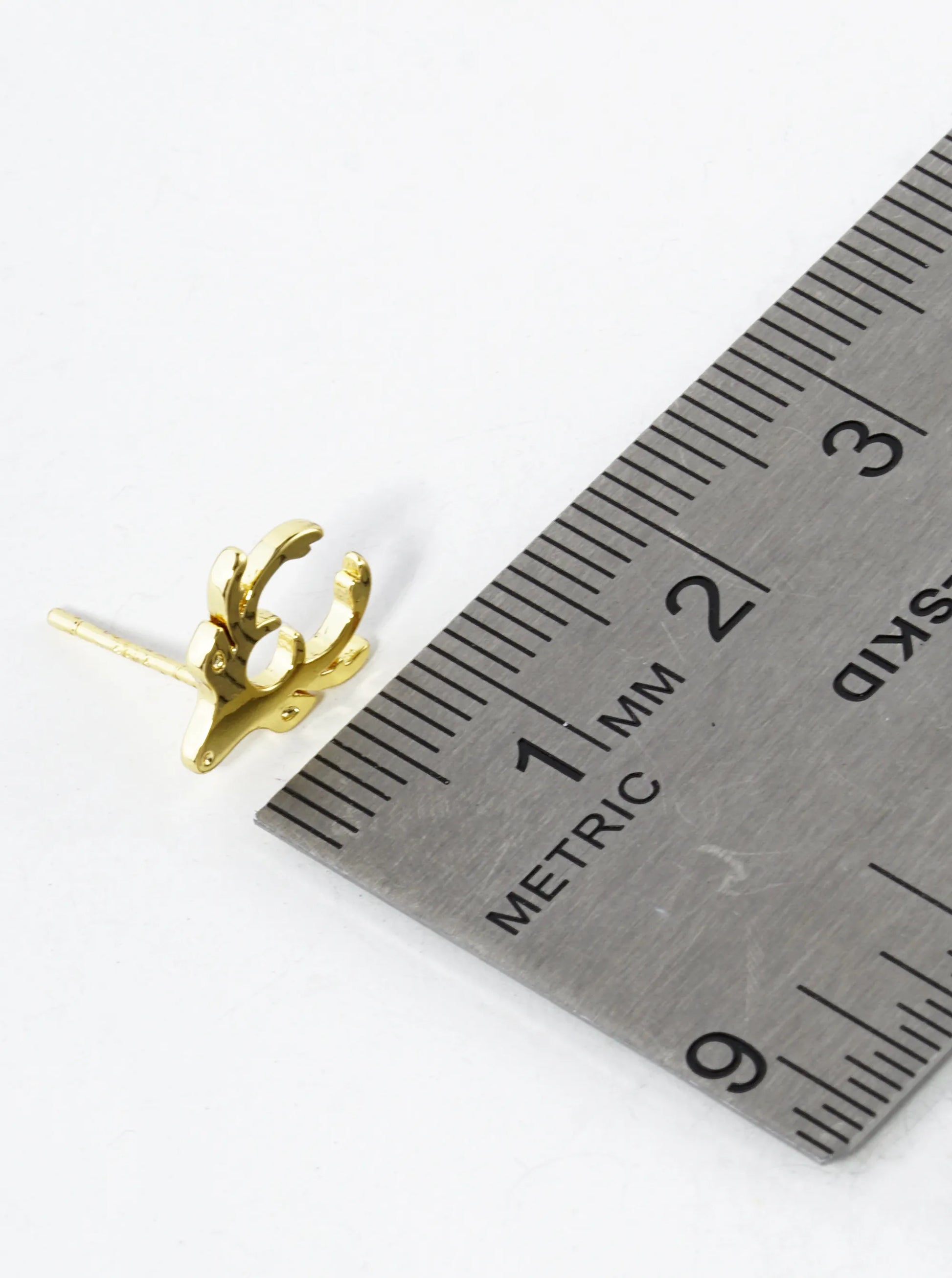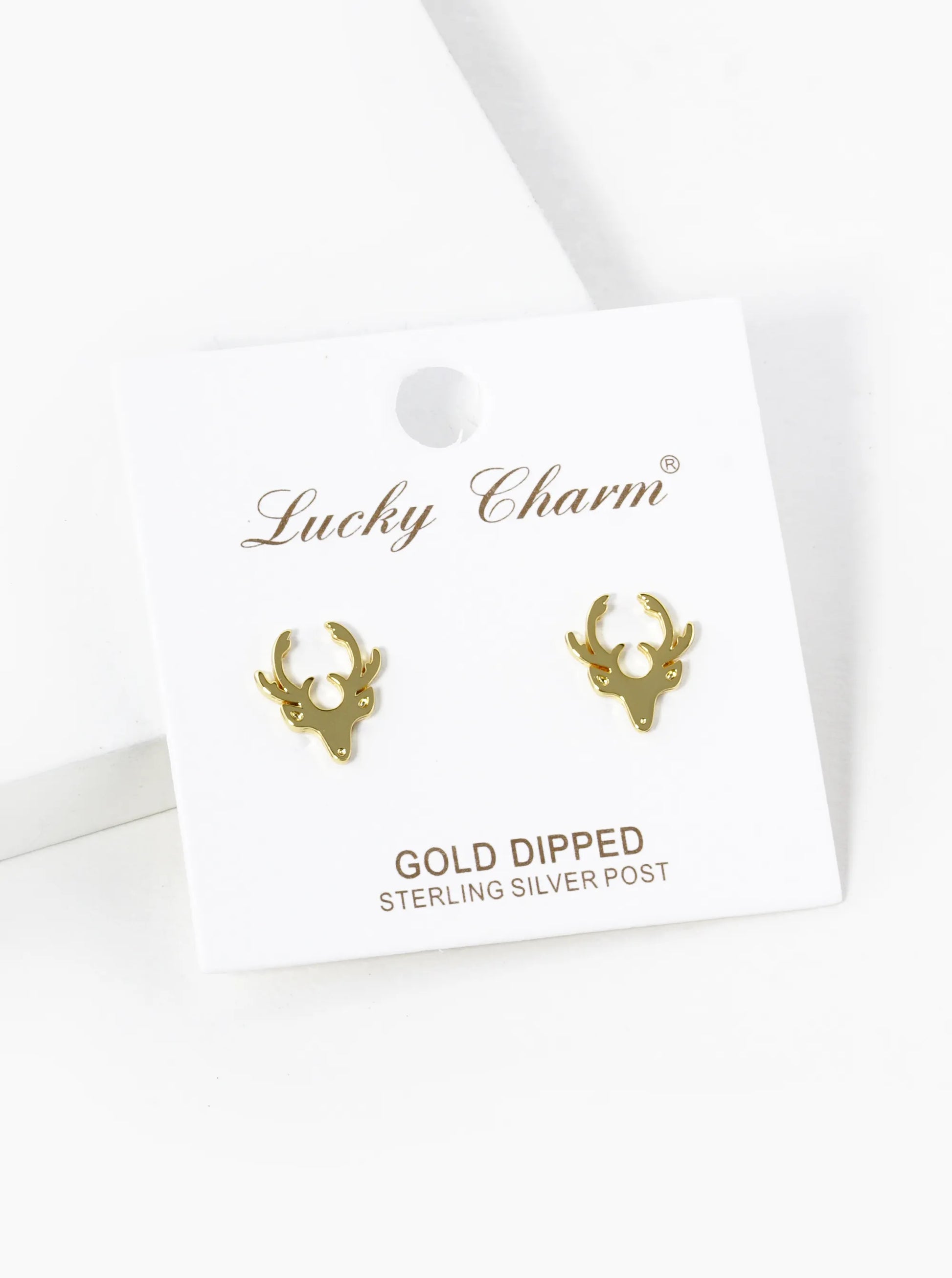 18K Gold Dipped Flat Deer Head Stud Earrings