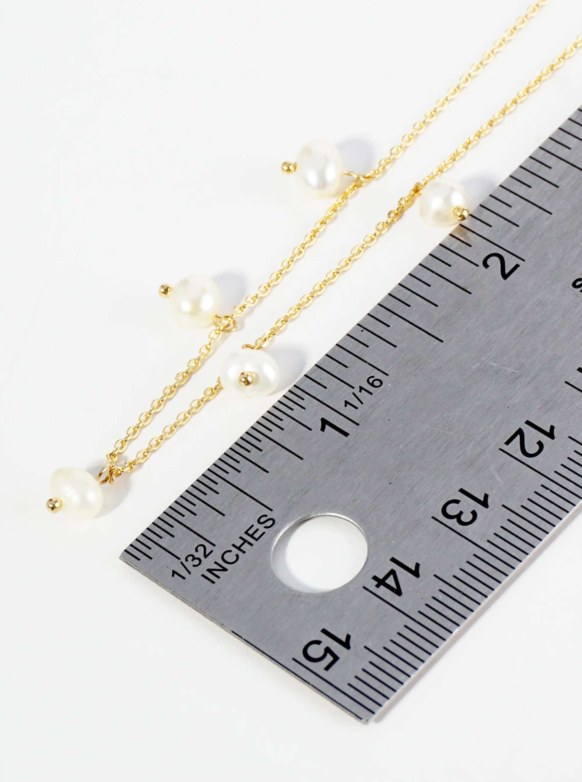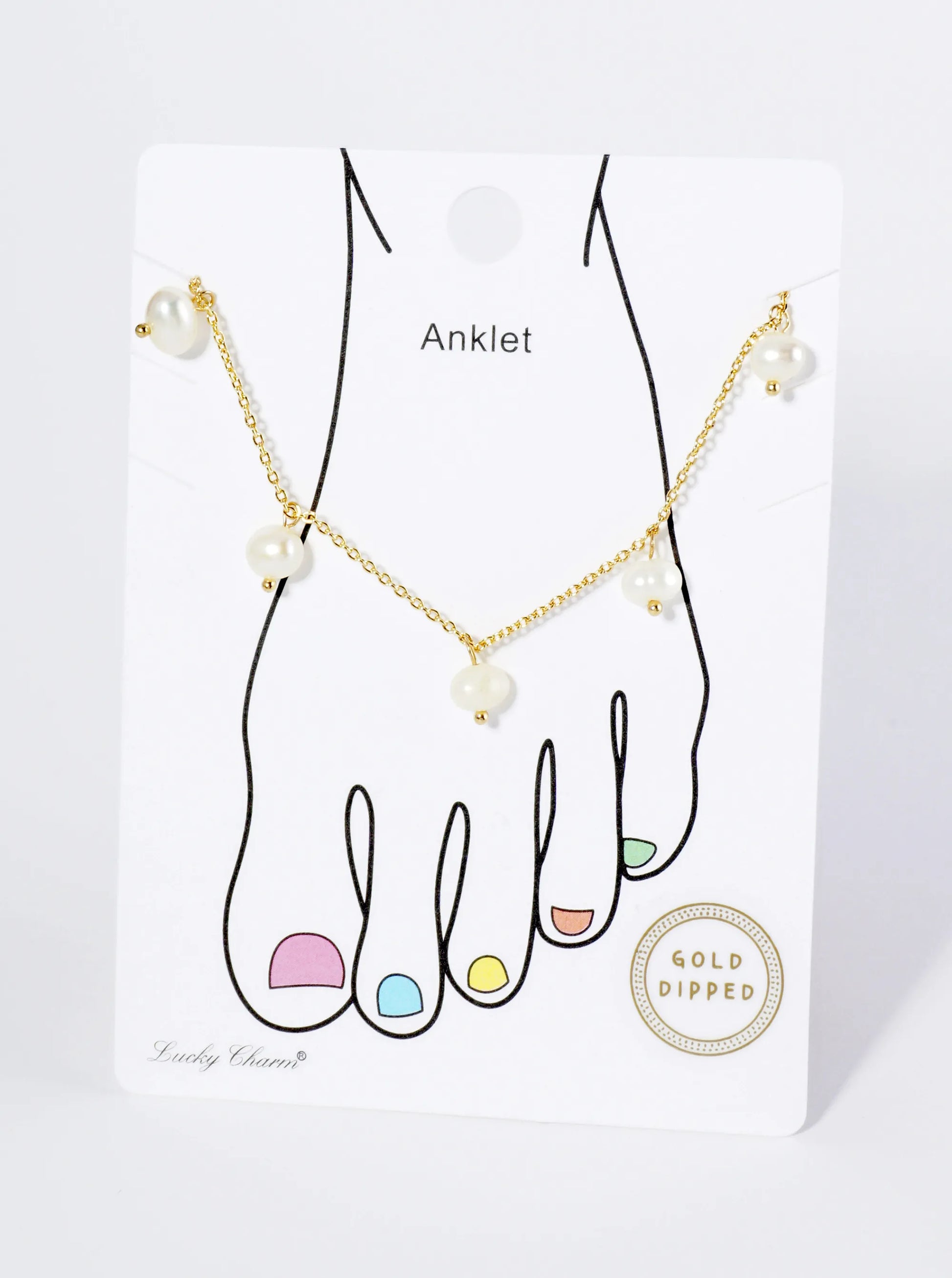 18K Gold Dipped Freshwater Pearl Charms Brass Chain Anklet