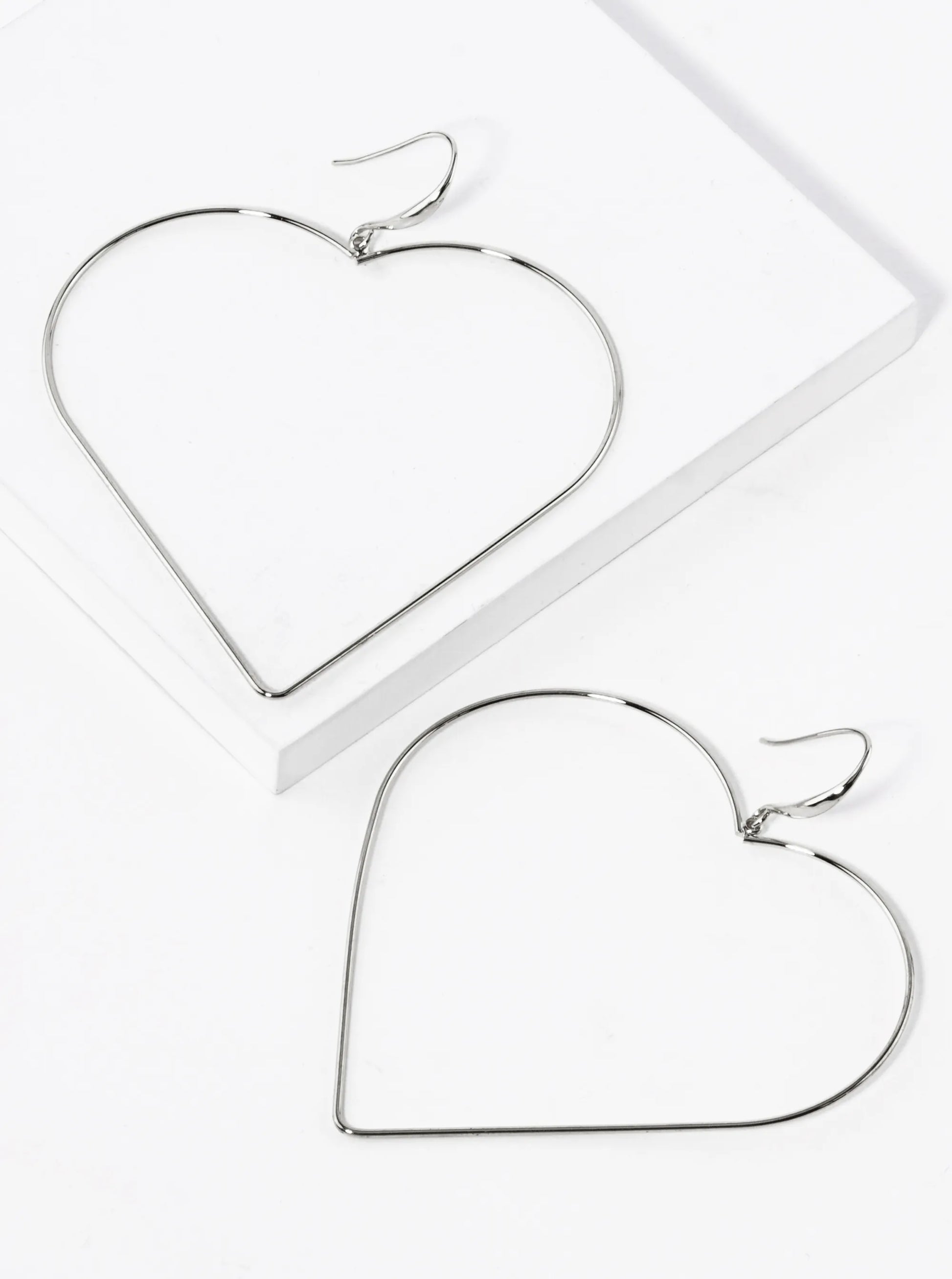 18K Gold Dipped Giant Wire Heart Drop Lightweight Earrings