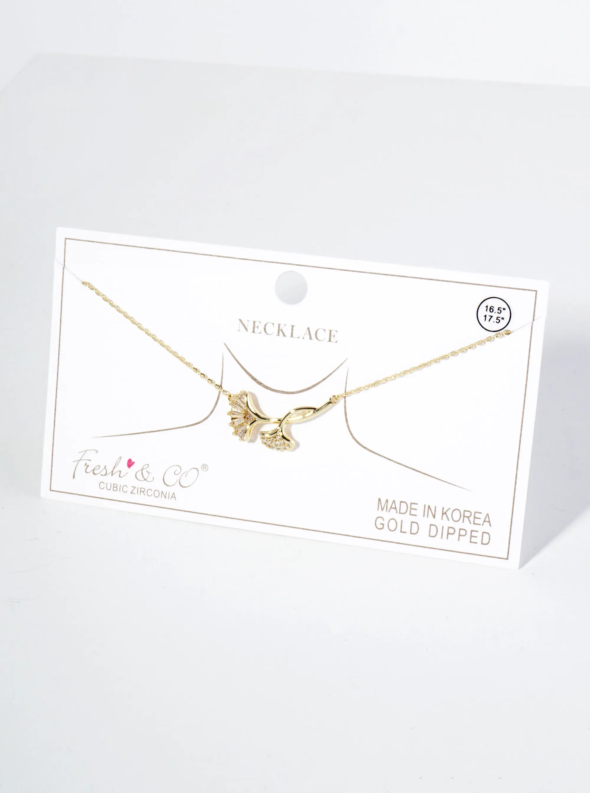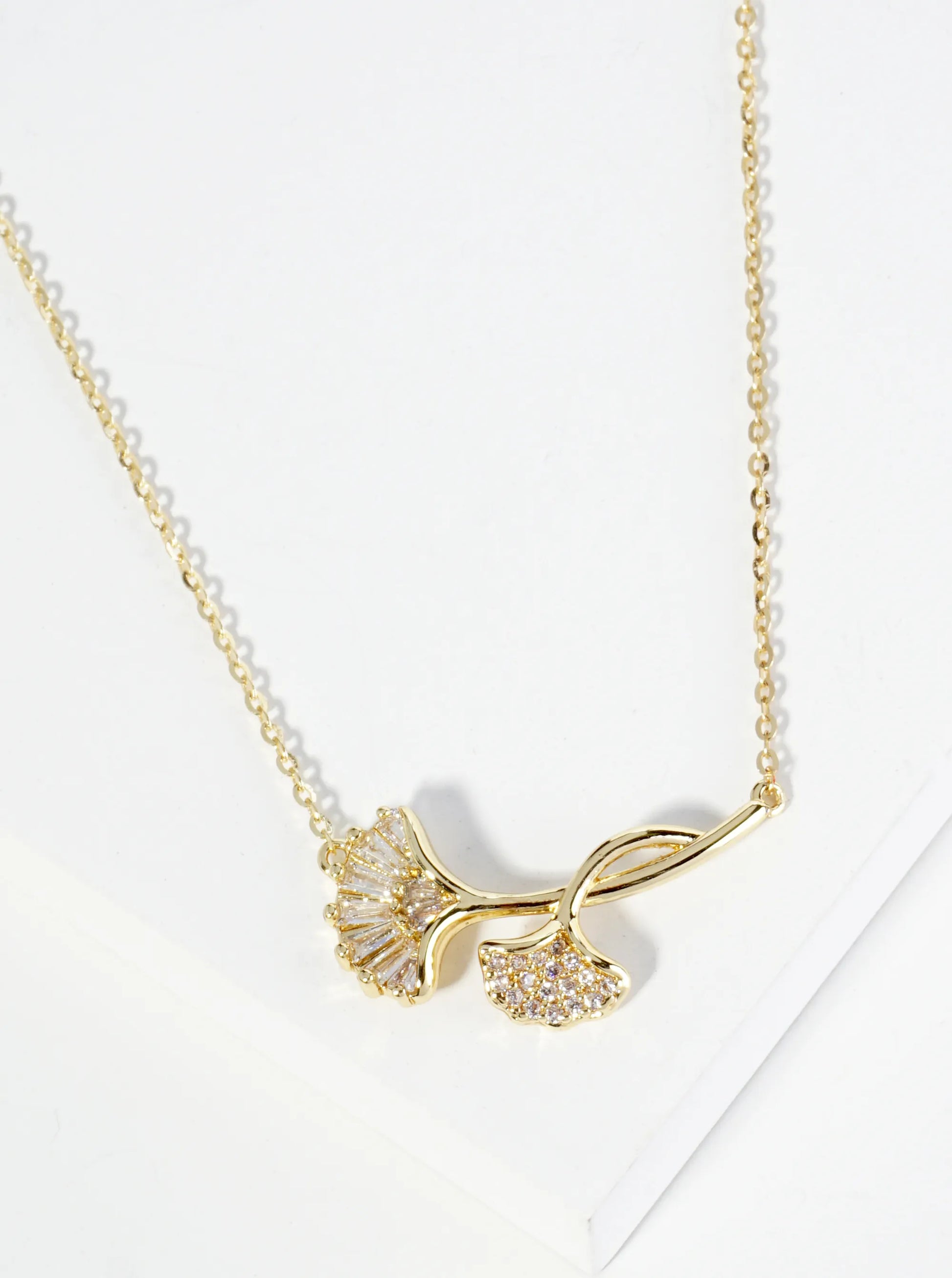 18K Gold Dipped Ginkgo Leaf Pendant Cubic Zirconia Necklace