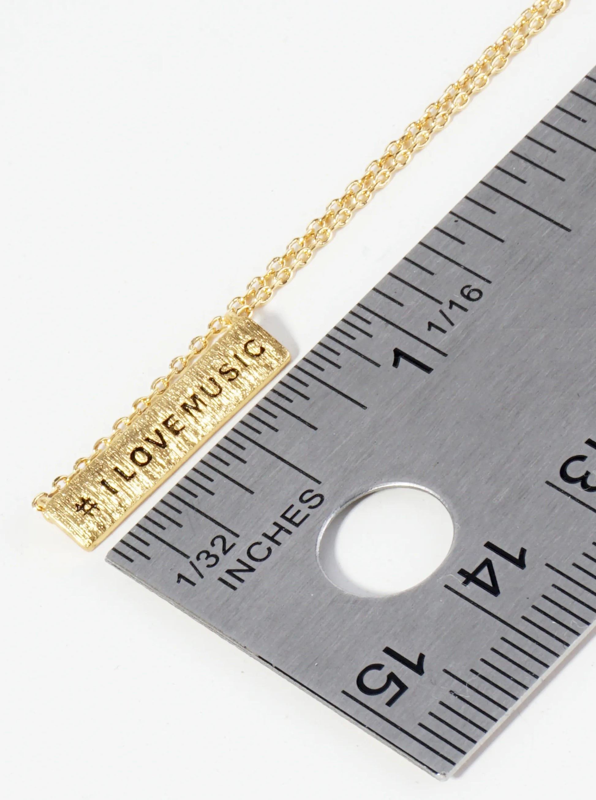 18K Gold Dipped Hashtag I Love Music Bar Pendant Necklace