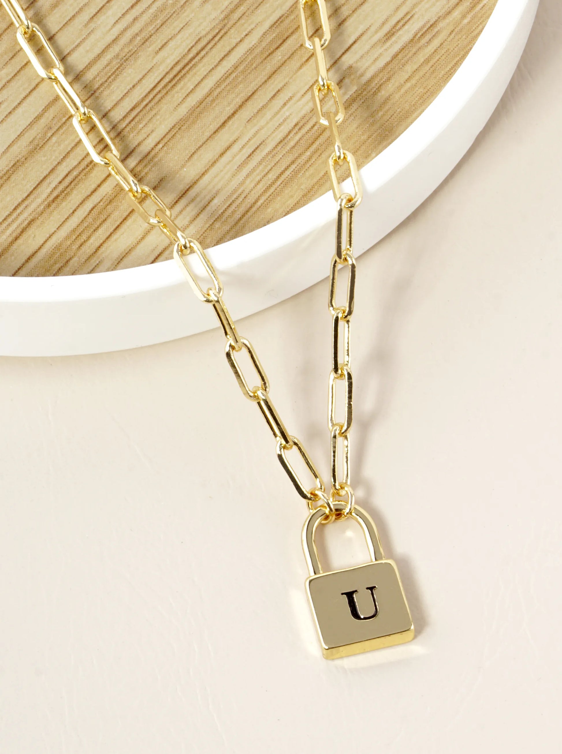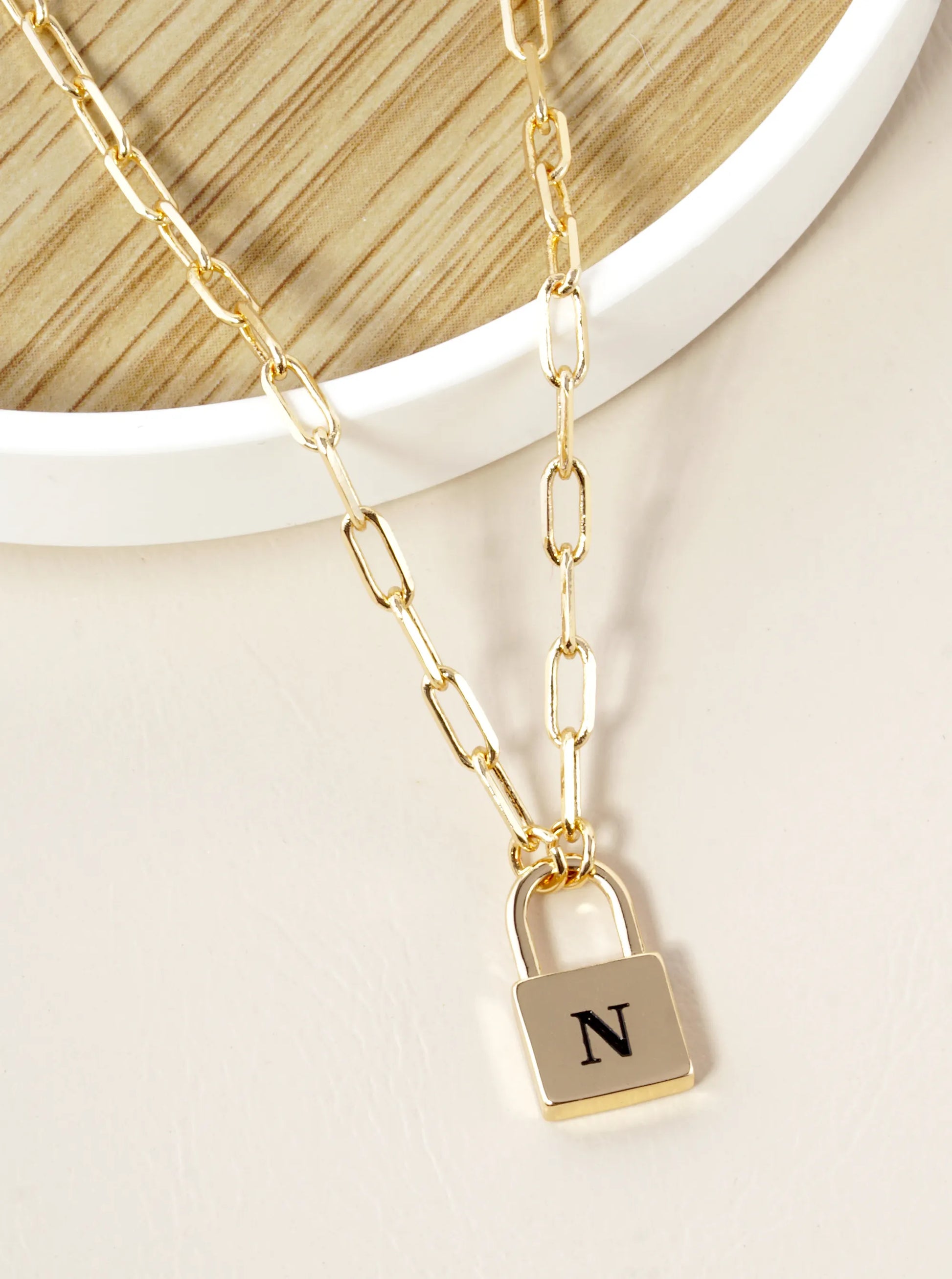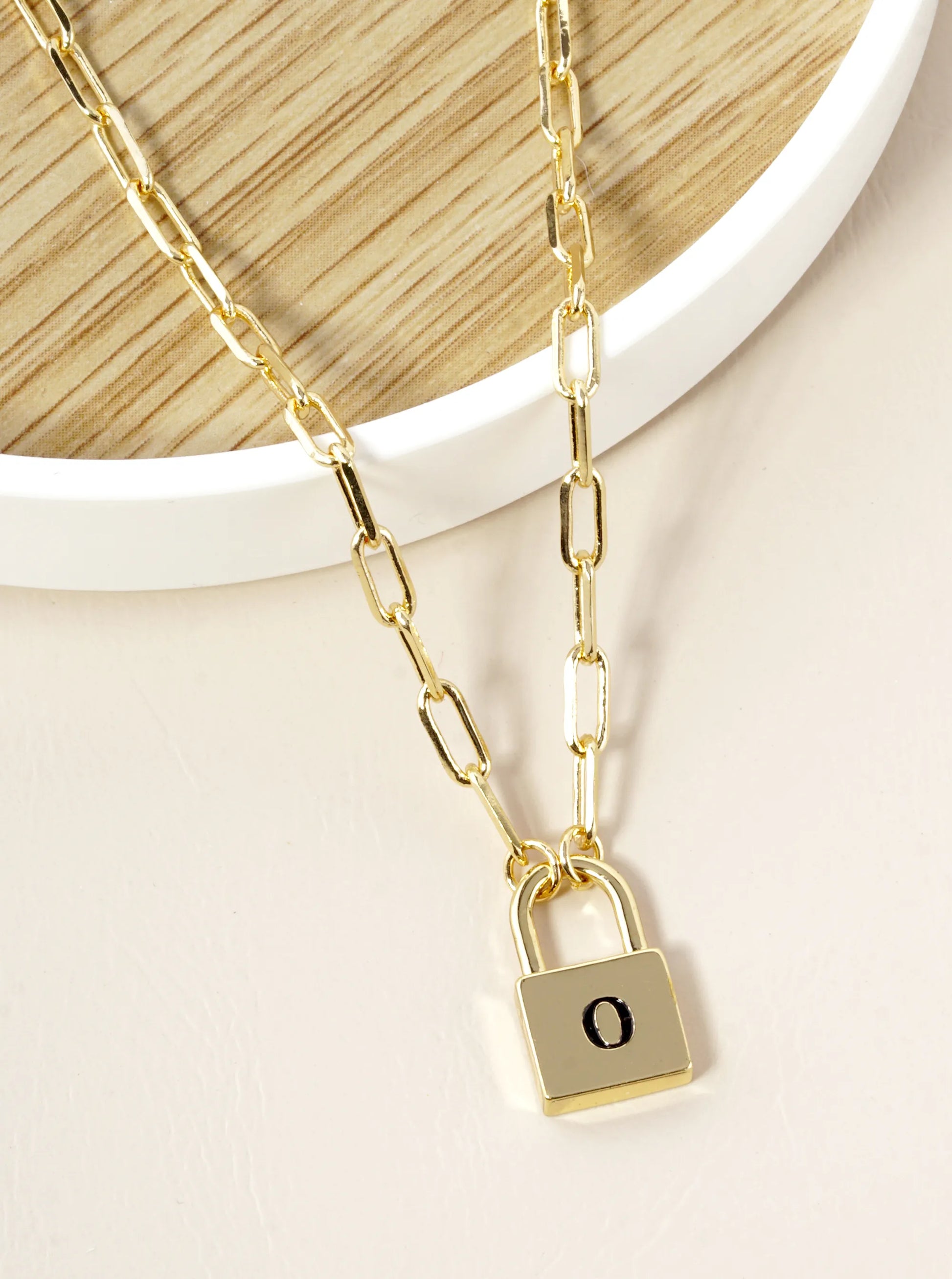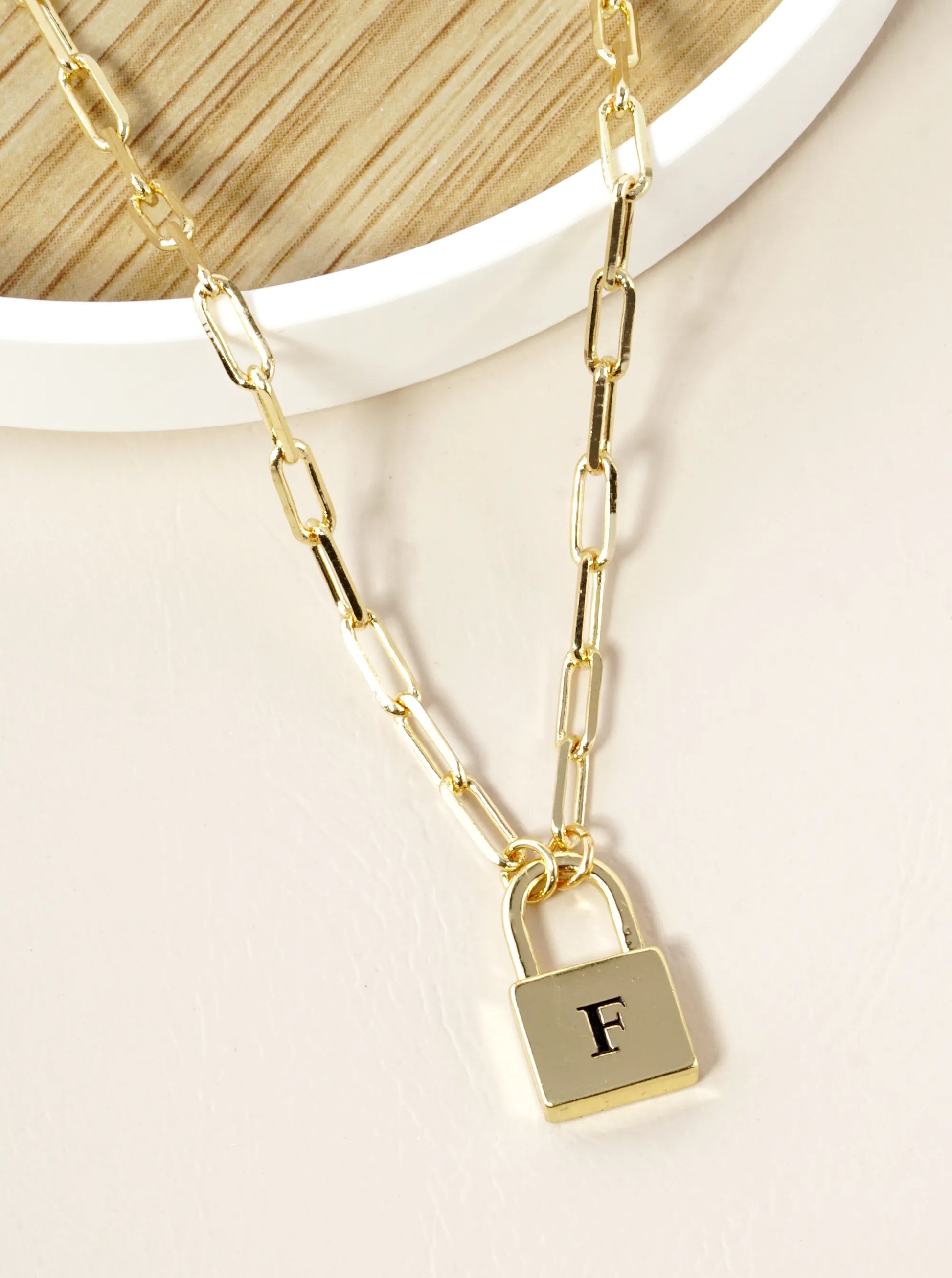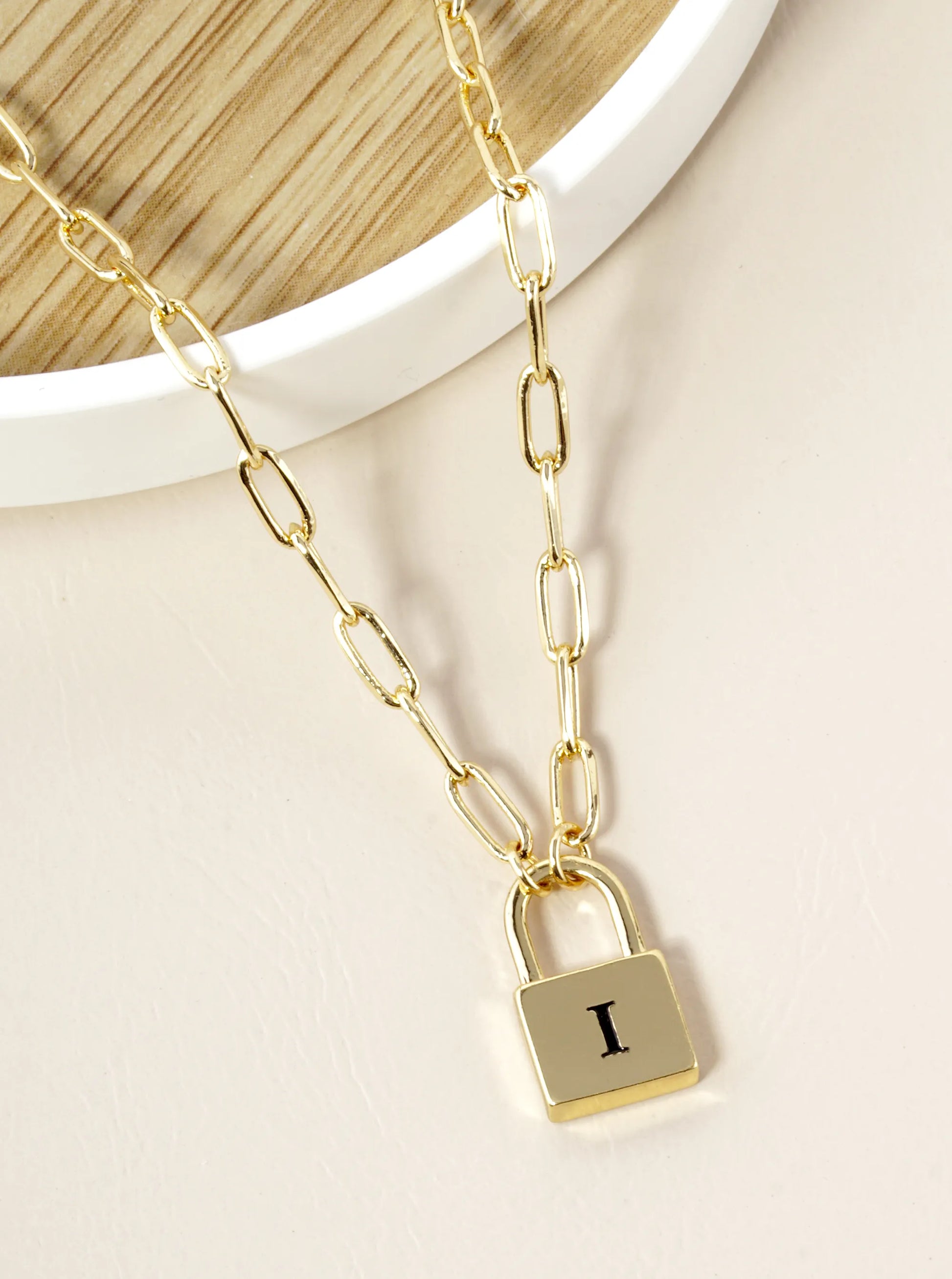 18K Gold Dipped Initial Lock Pendant Link Chain Necklace