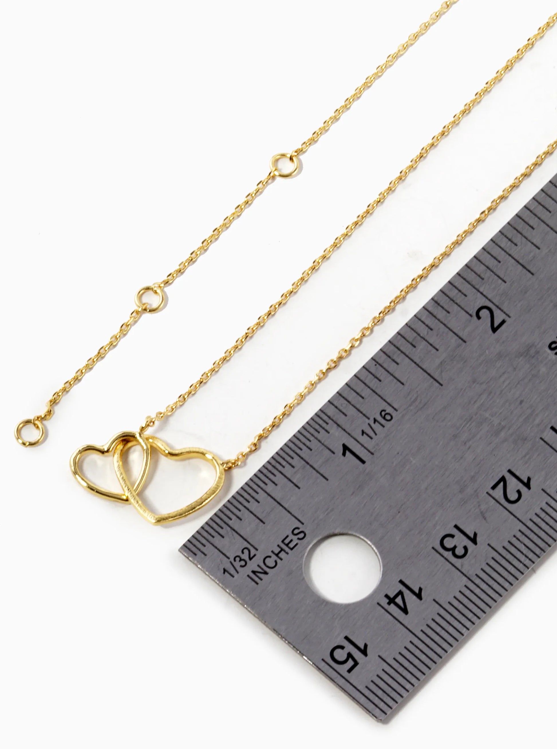 18K Gold Dipped Interlocking Two Wire Heart Pendant Necklace