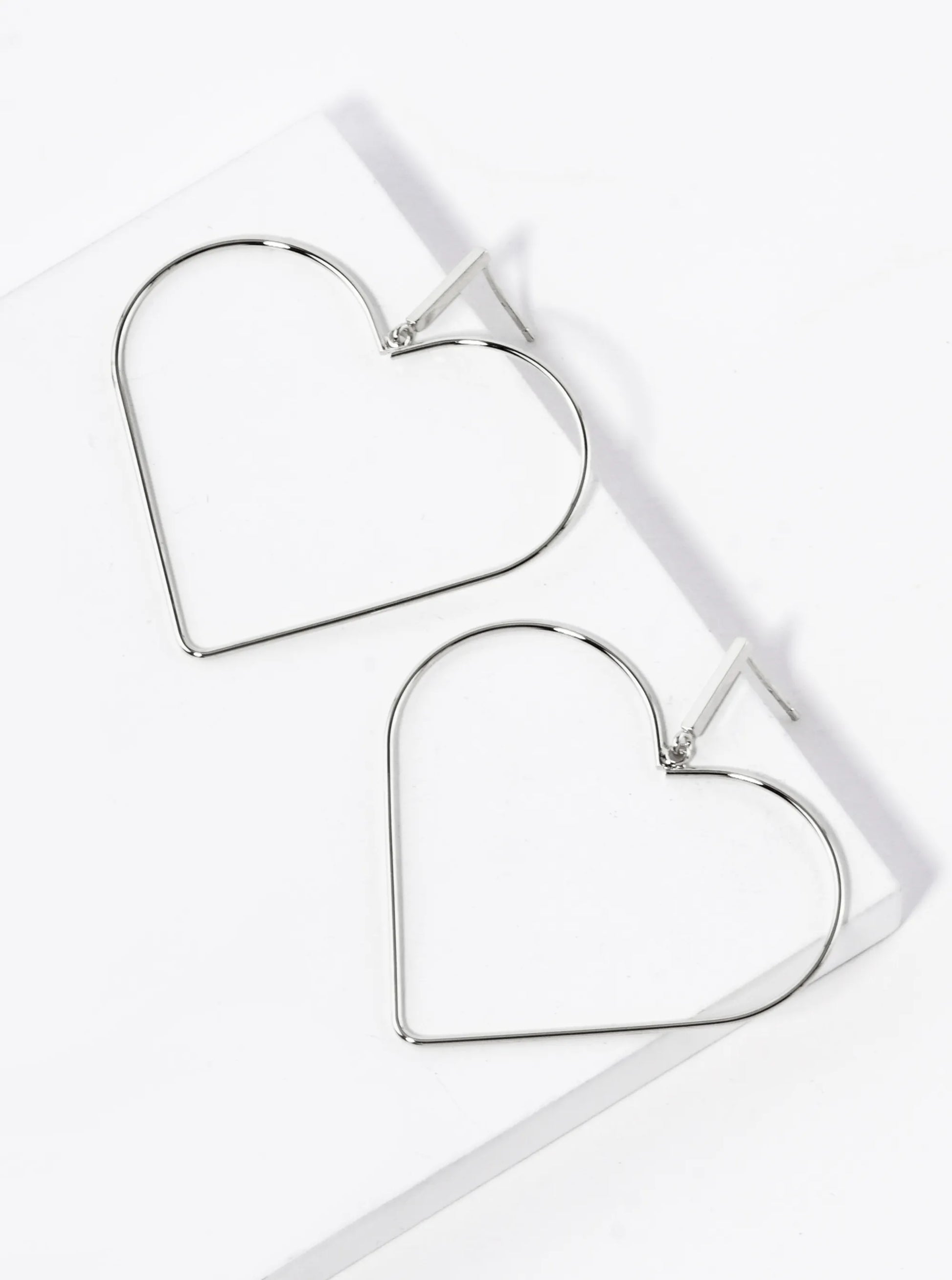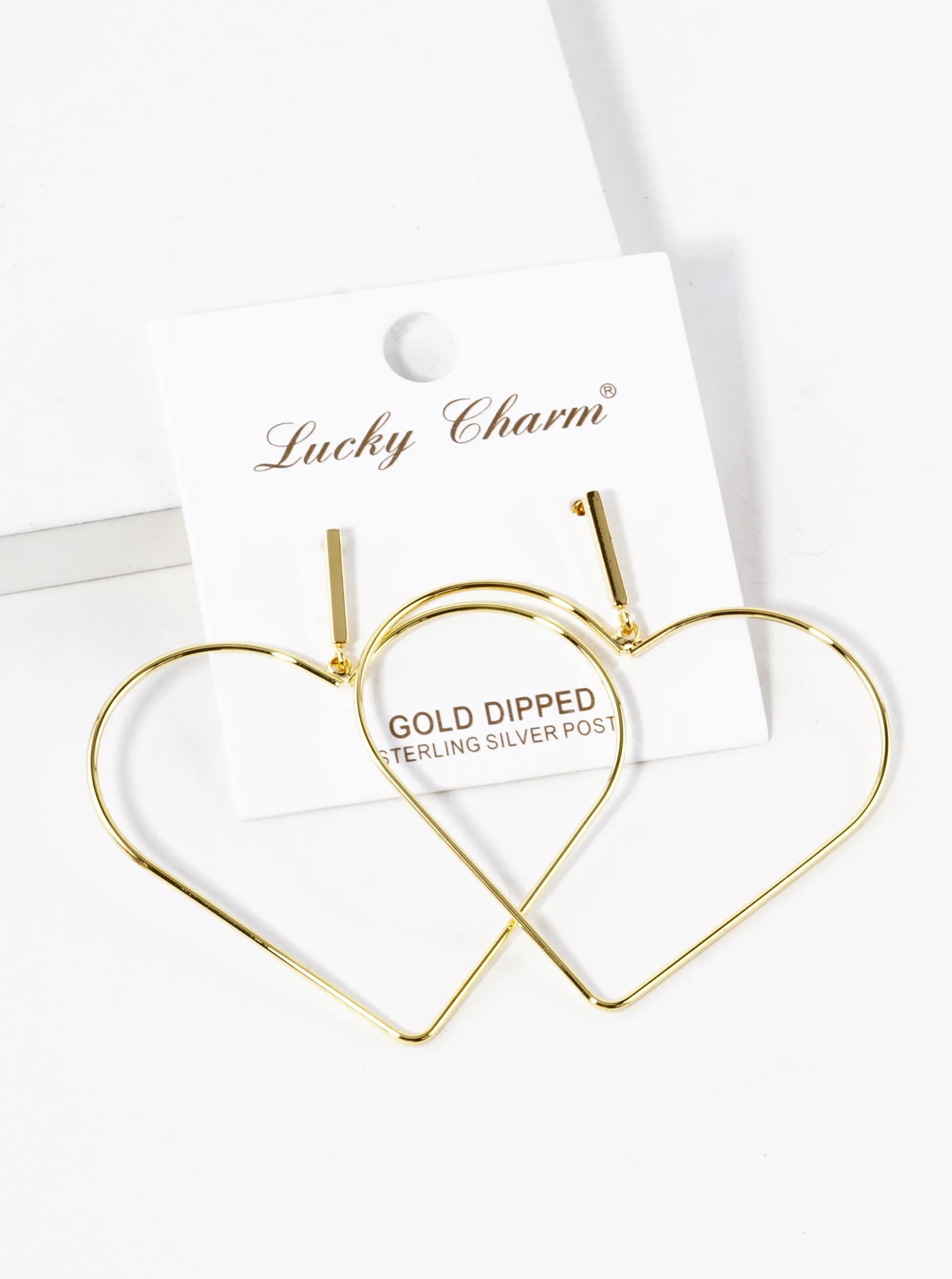 18K Gold Dipped Large Wire Heart Drop Dangle Post Earrings
