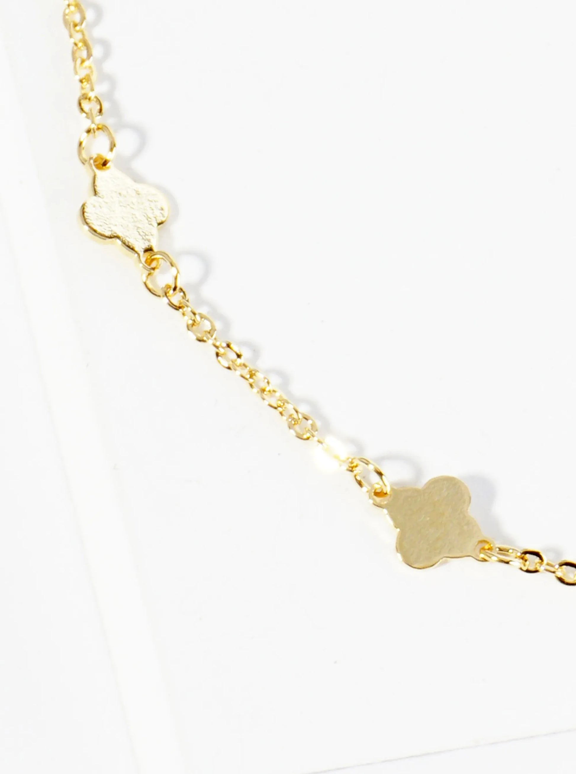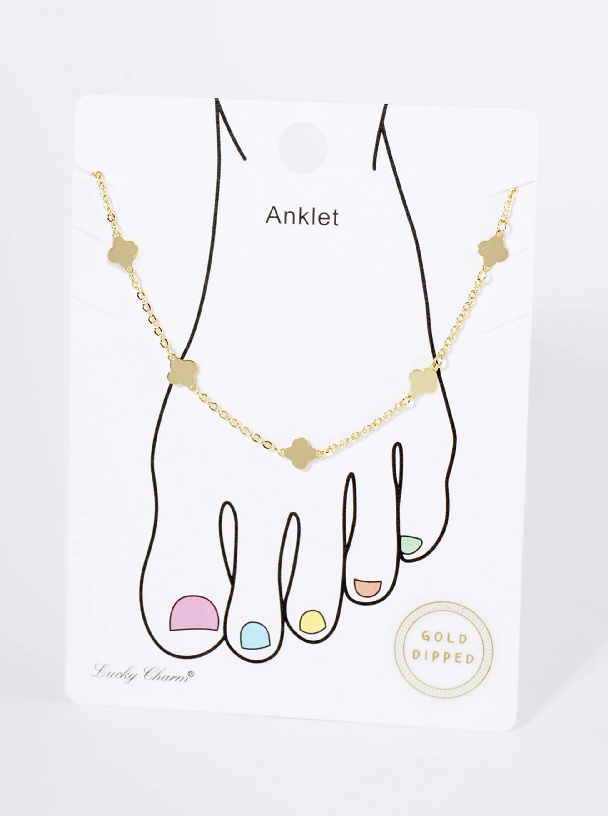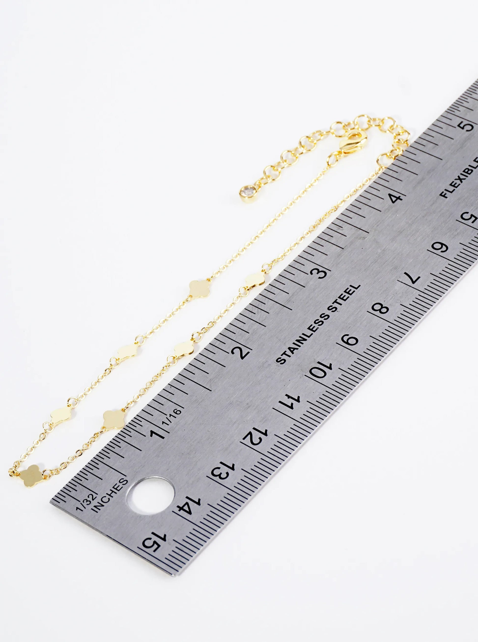 18K Gold Dipped Linked Delicate Quatrefoil Brass Chain Anklet