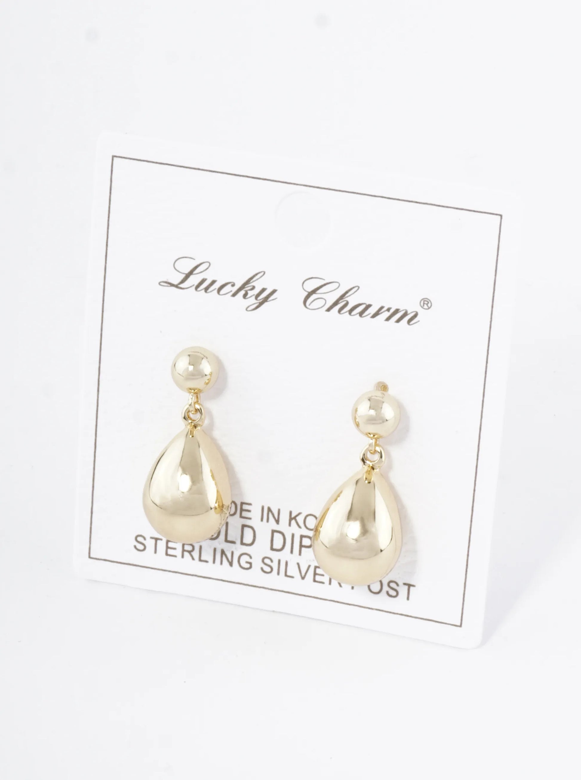18K Gold Dipped Medium Puffy Teardrop Drop Dangle Post Earrings