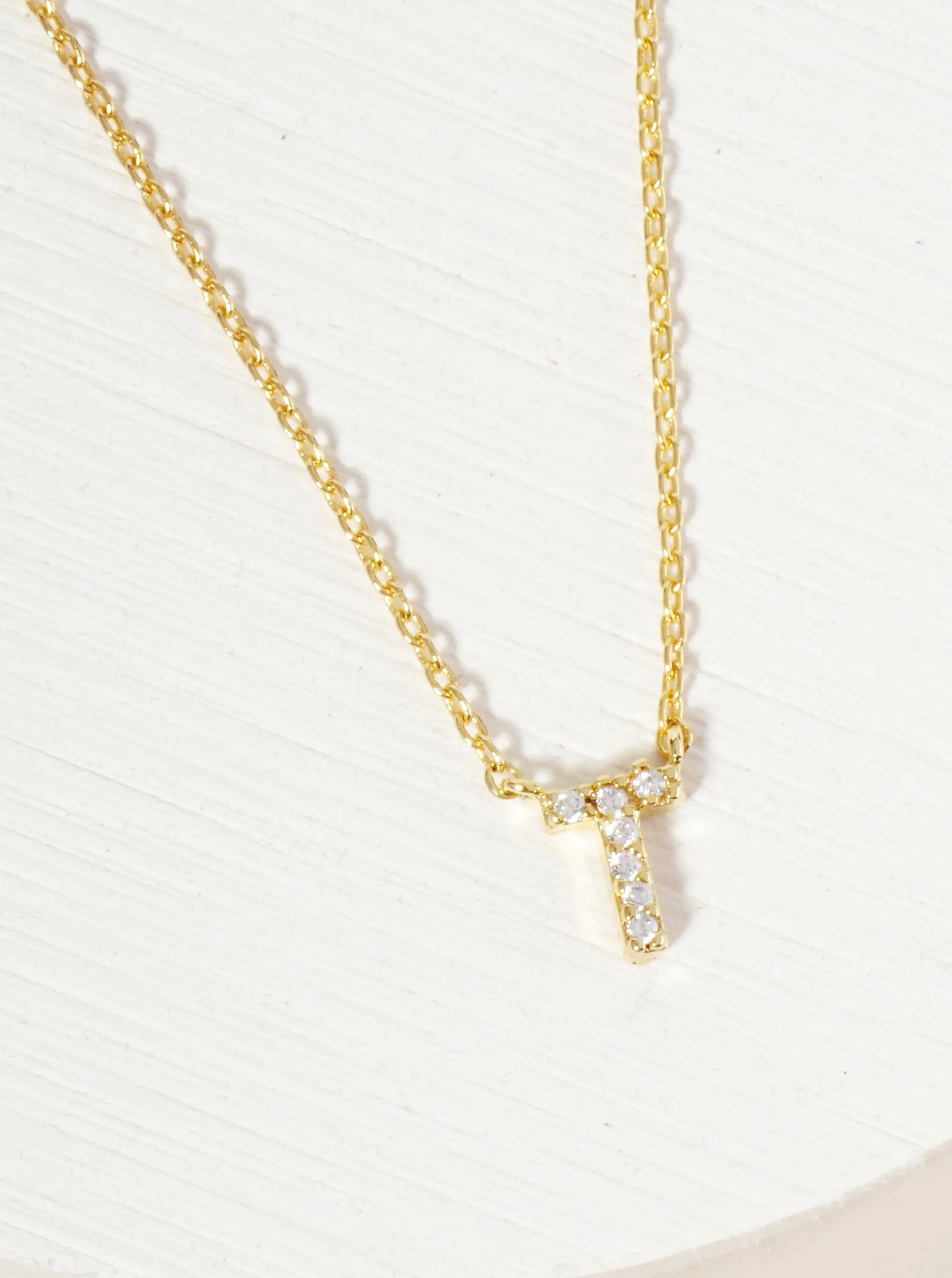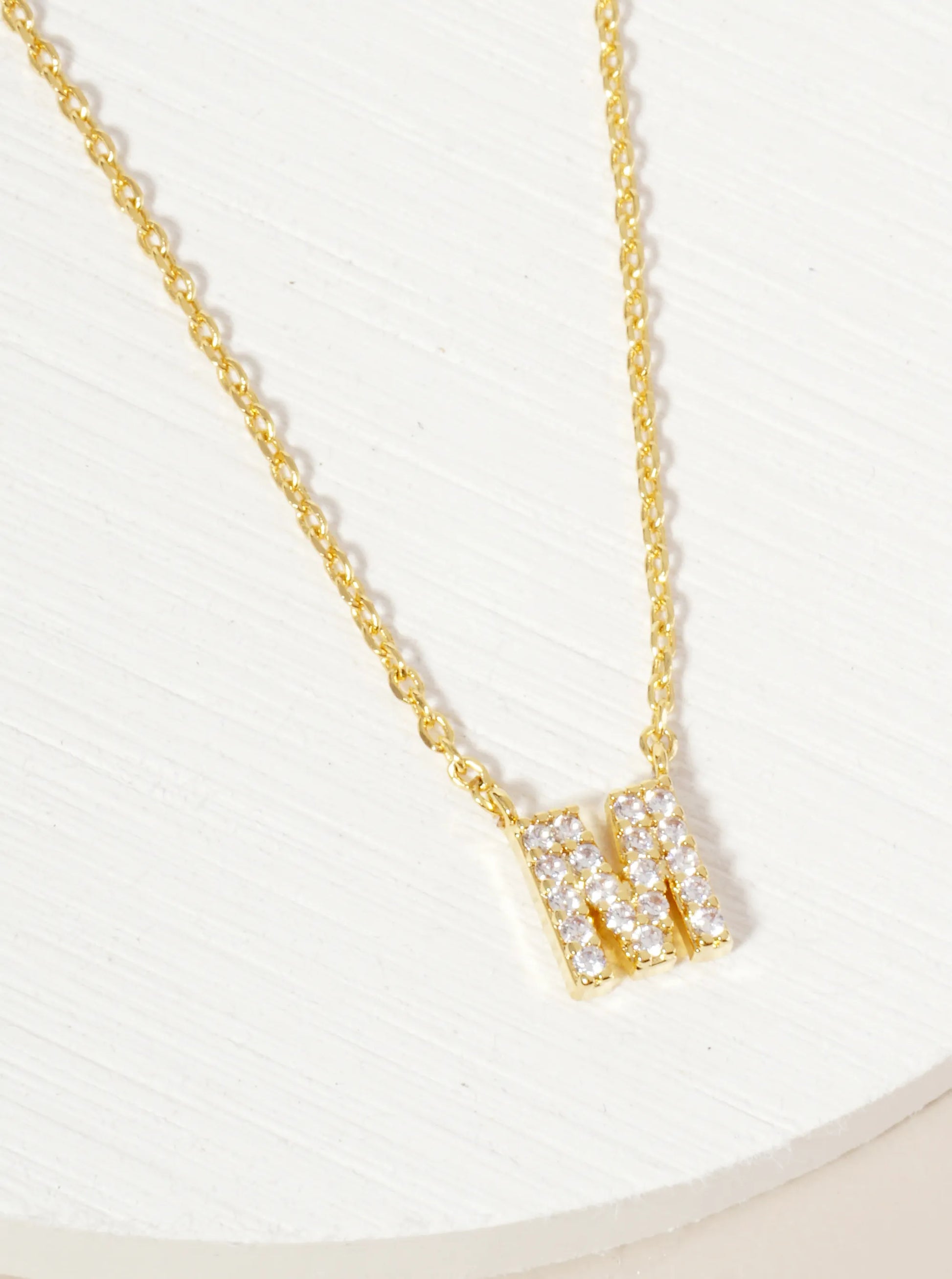 18K Gold Dipped Micro CZ Pave Initial Pendant Necklace