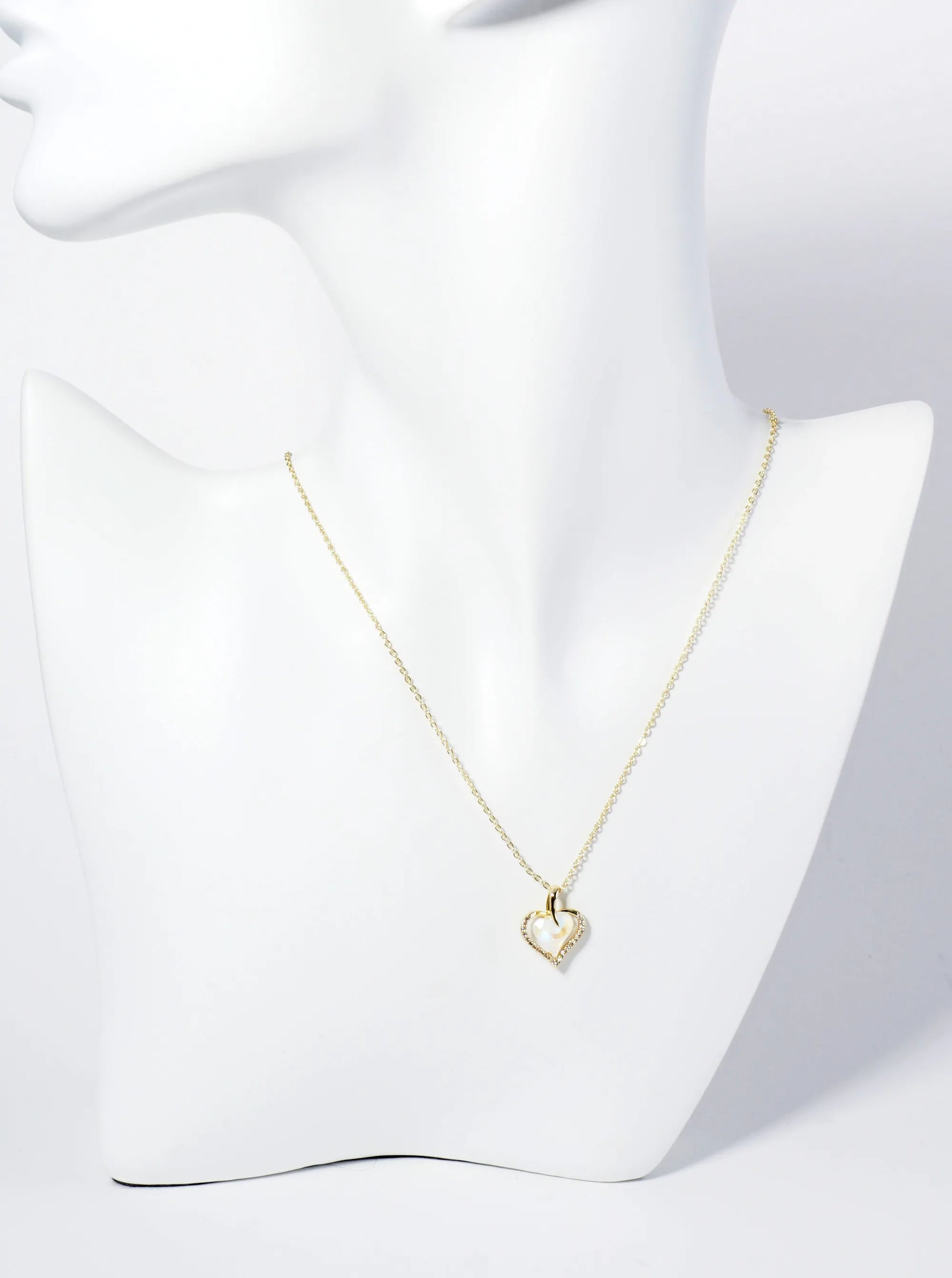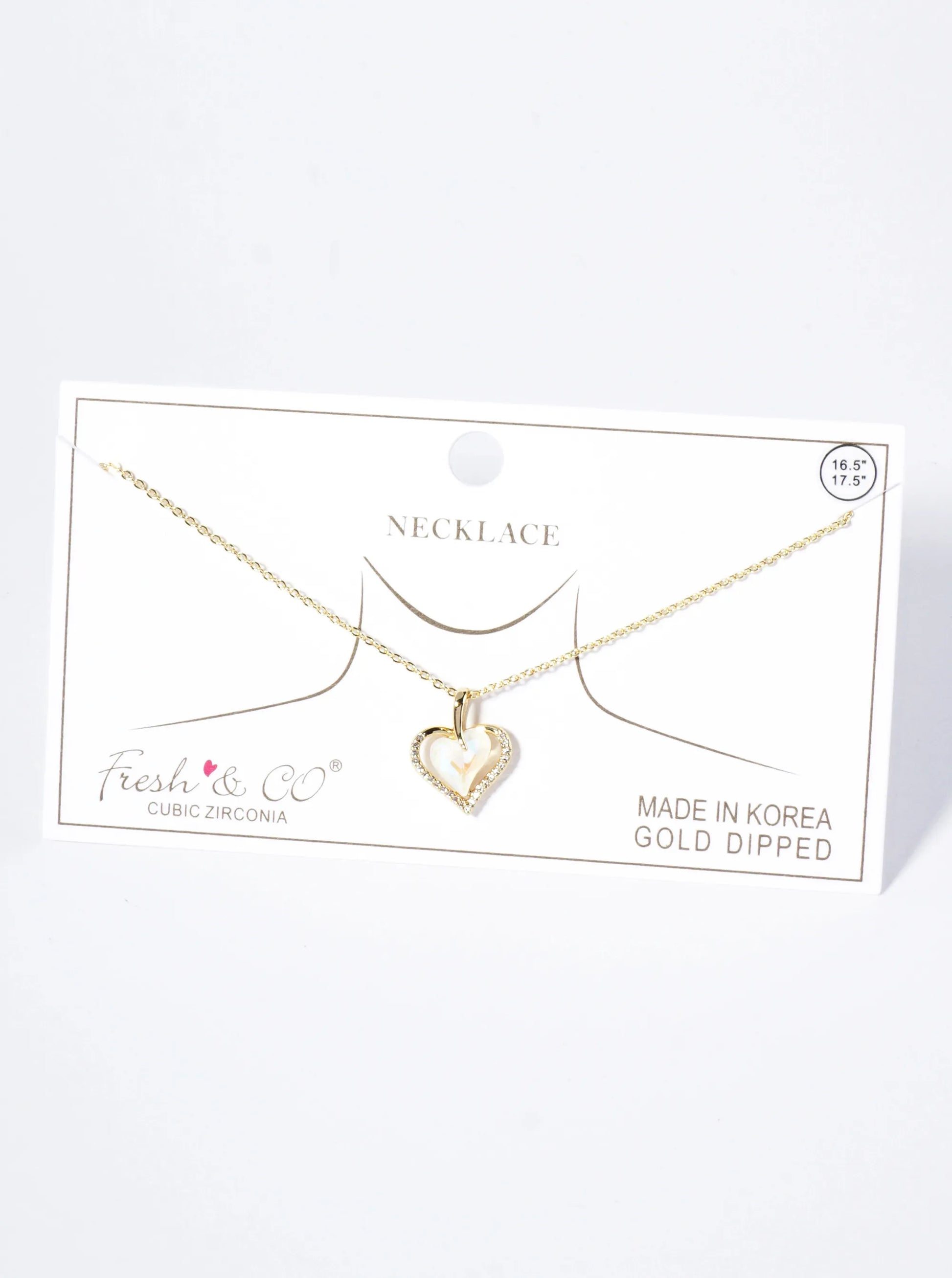 18K Gold Dipped Micro CZ Pave Opal Heart Pendant Necklace