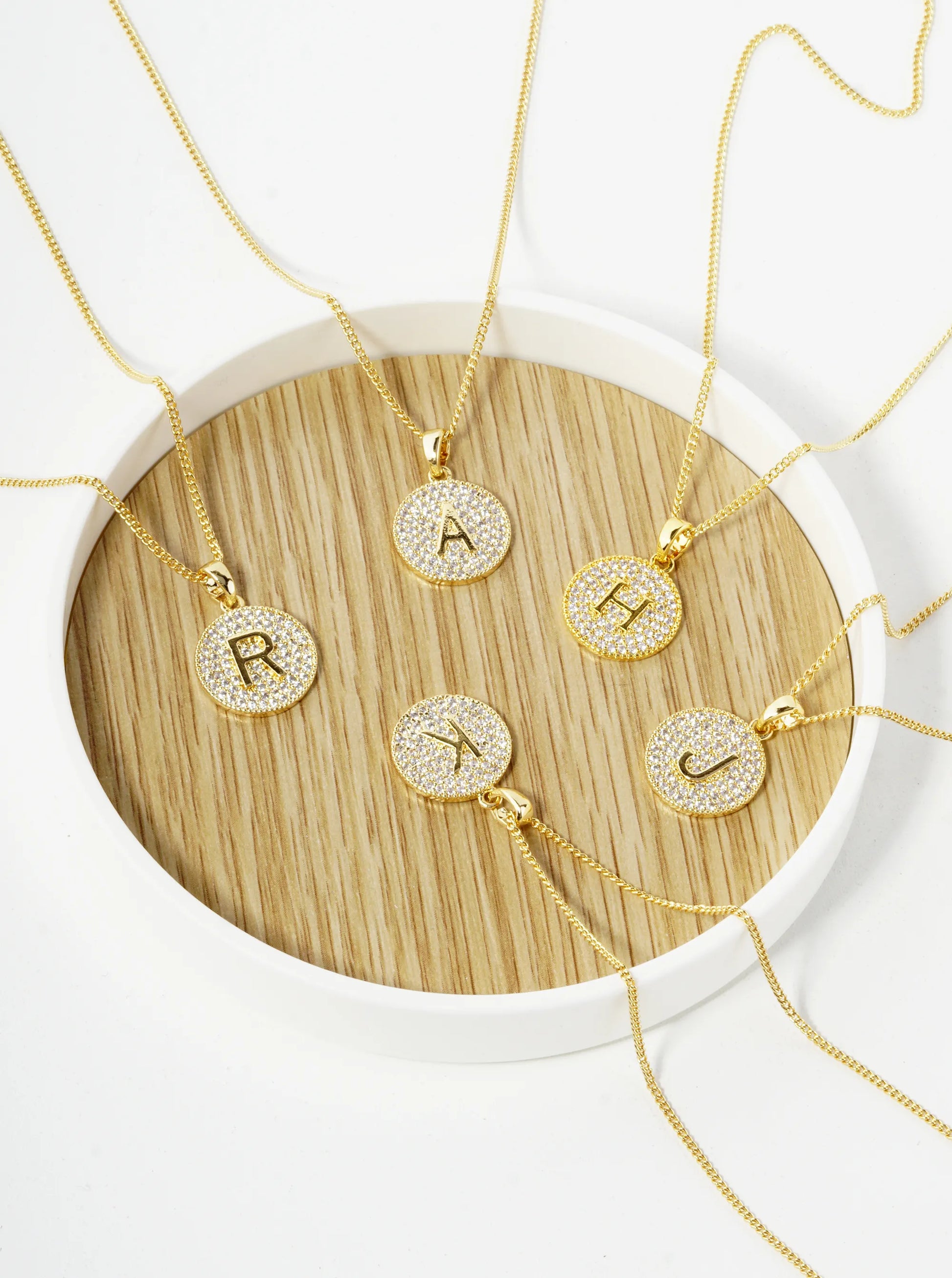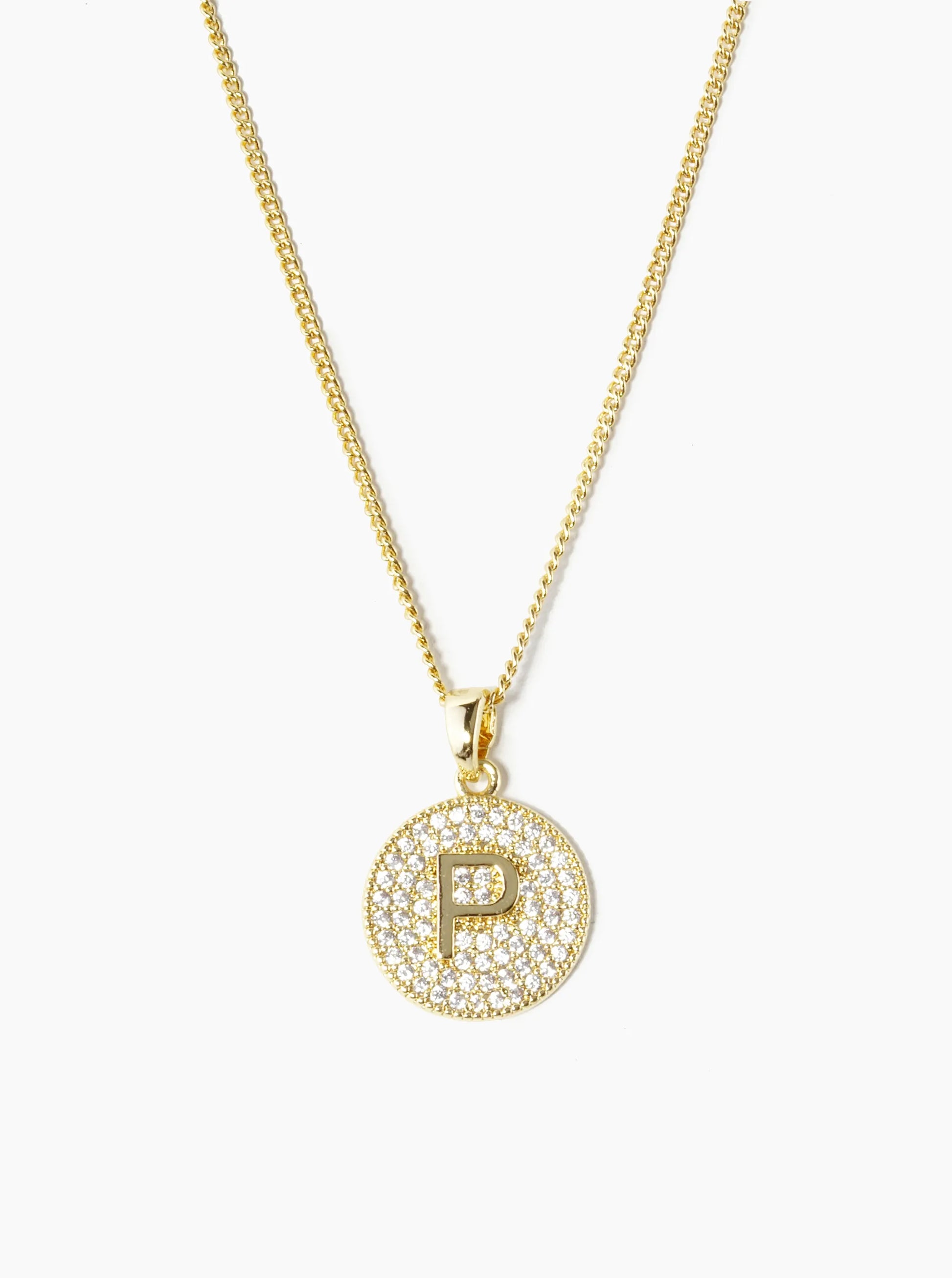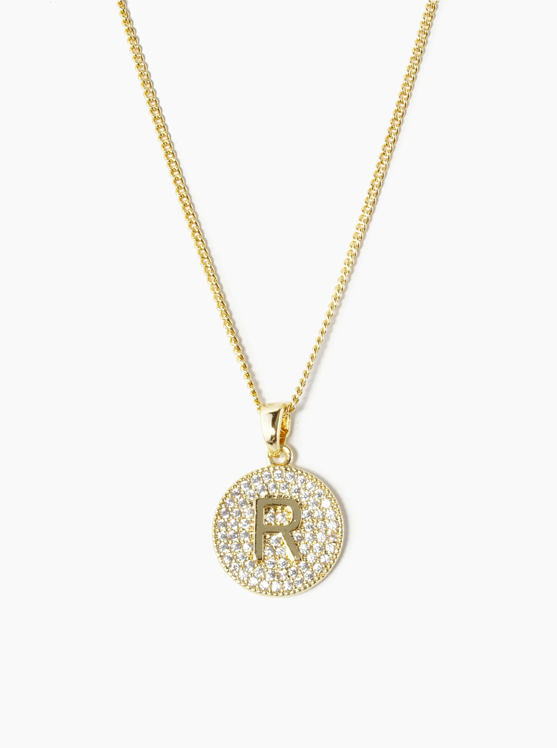 18K Gold Dipped Micro Pave Cubic Zirconia Initial Letter Pendant Necklace