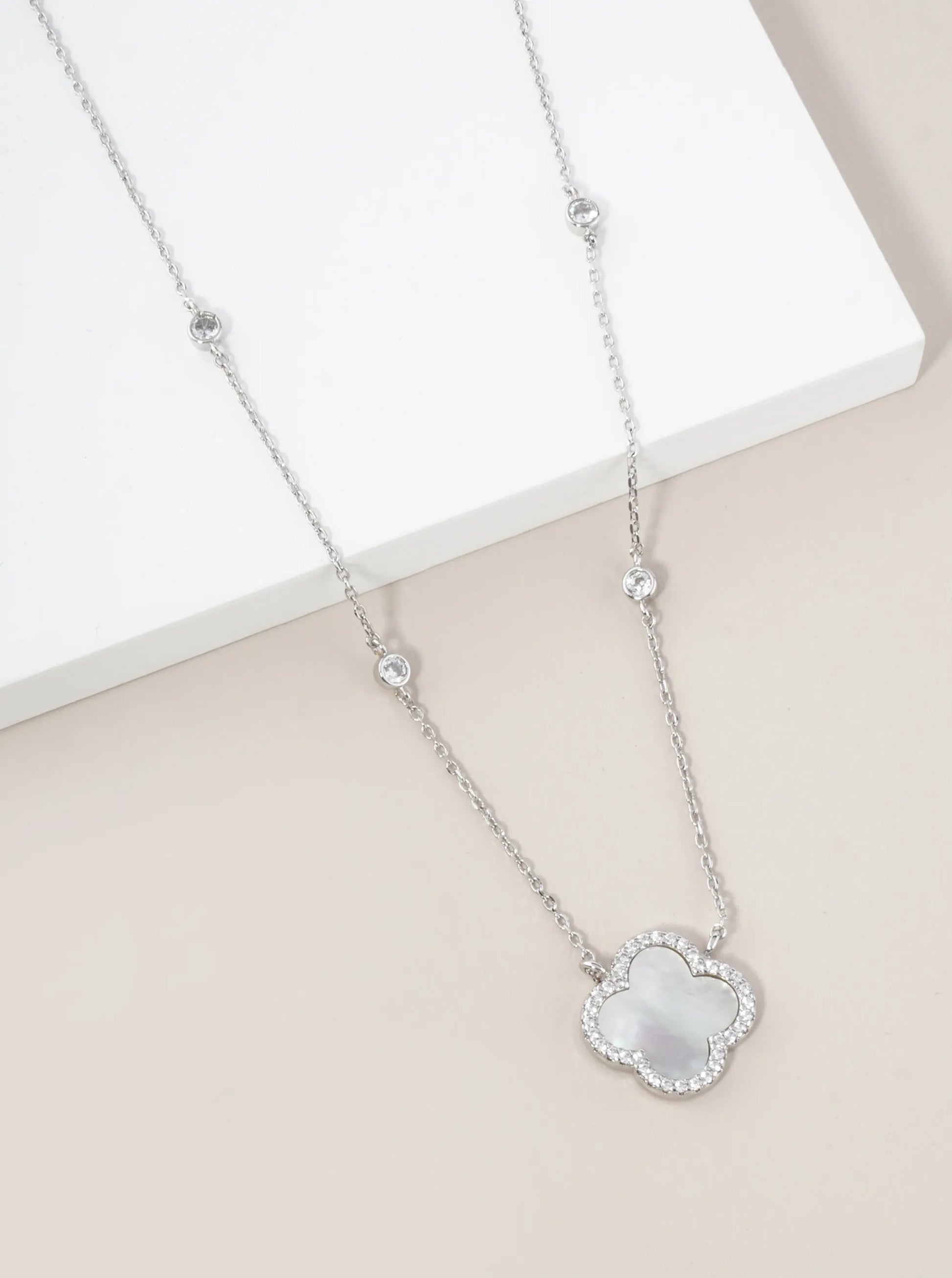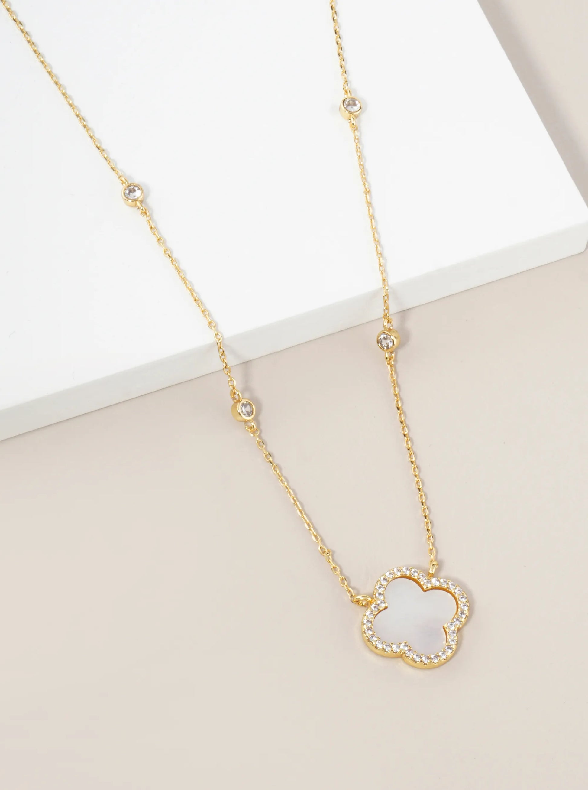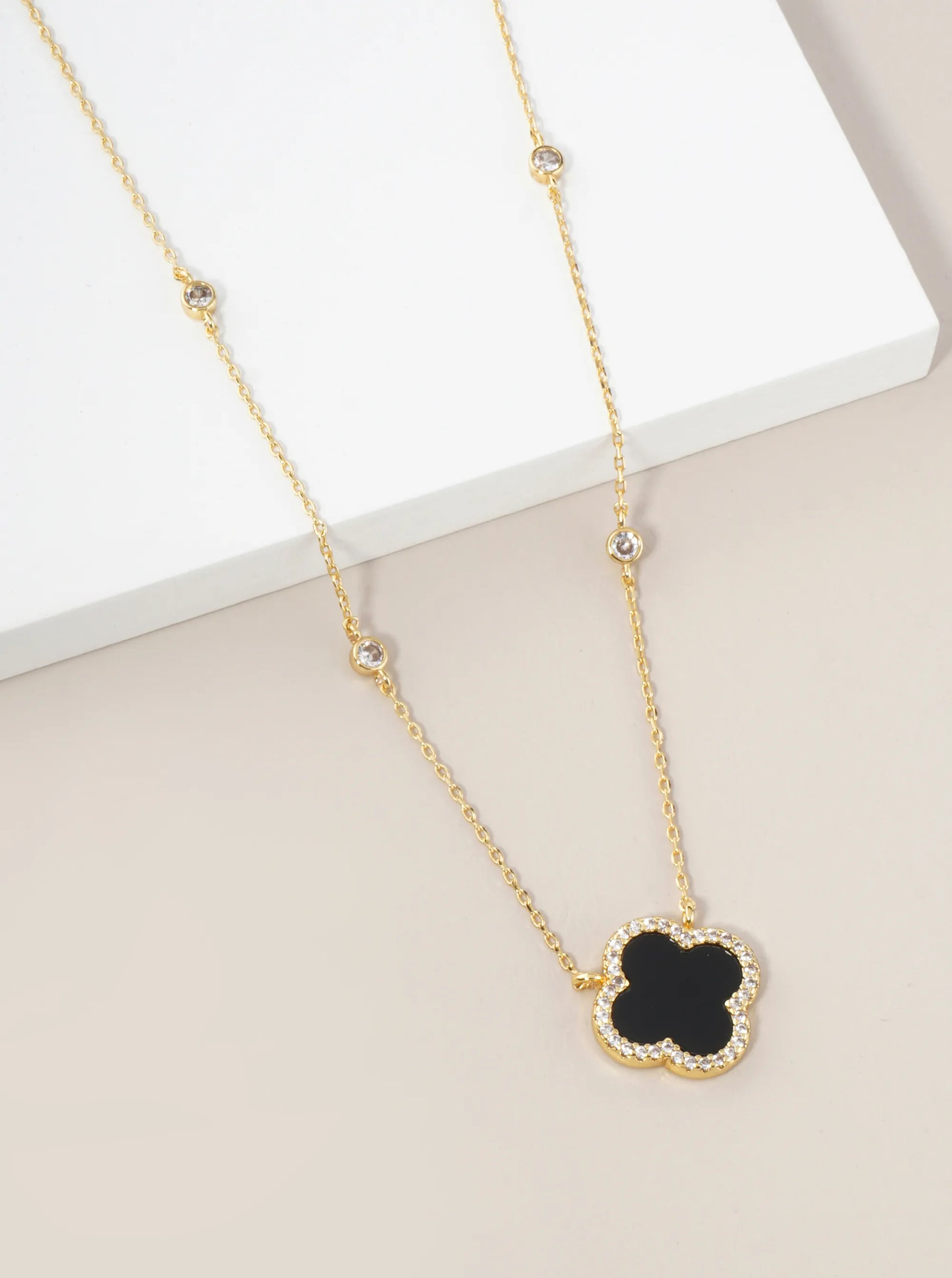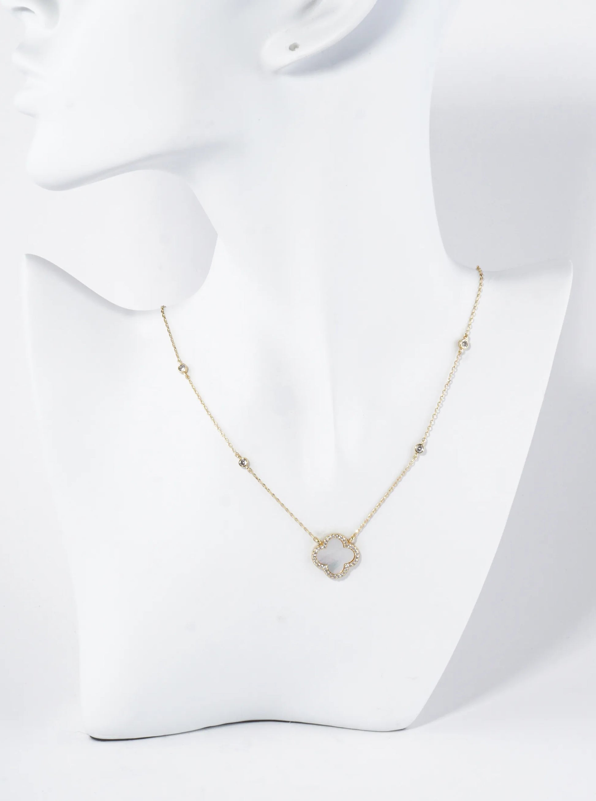 18K Gold Dipped Micro Pave Set Cubic Zirconia 15mm Quatrefoil Pendant Necklace