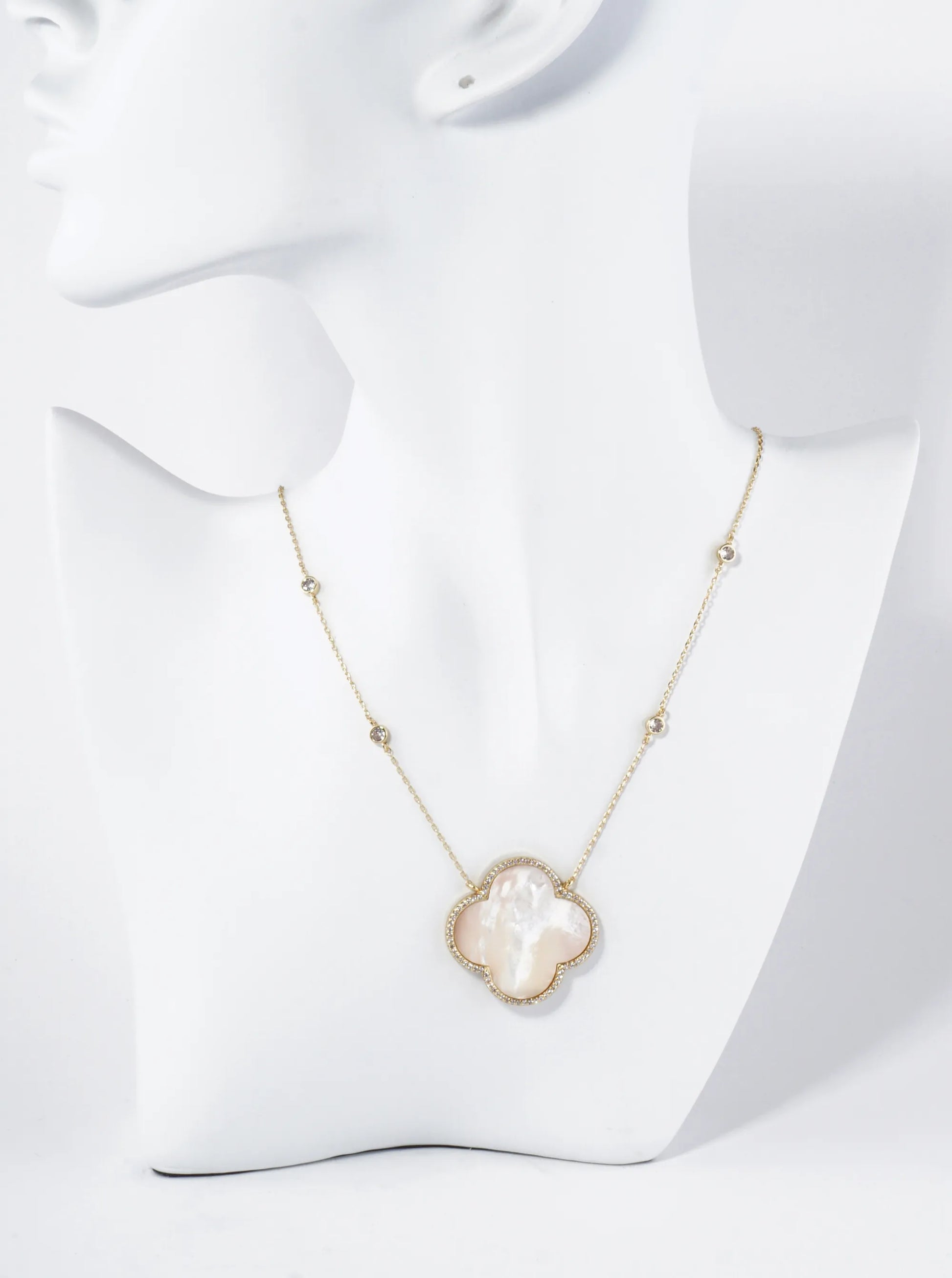 18K Gold Dipped Micro Pave Set Cubic Zirconia 32mm Quatrefoil Pendant Necklace