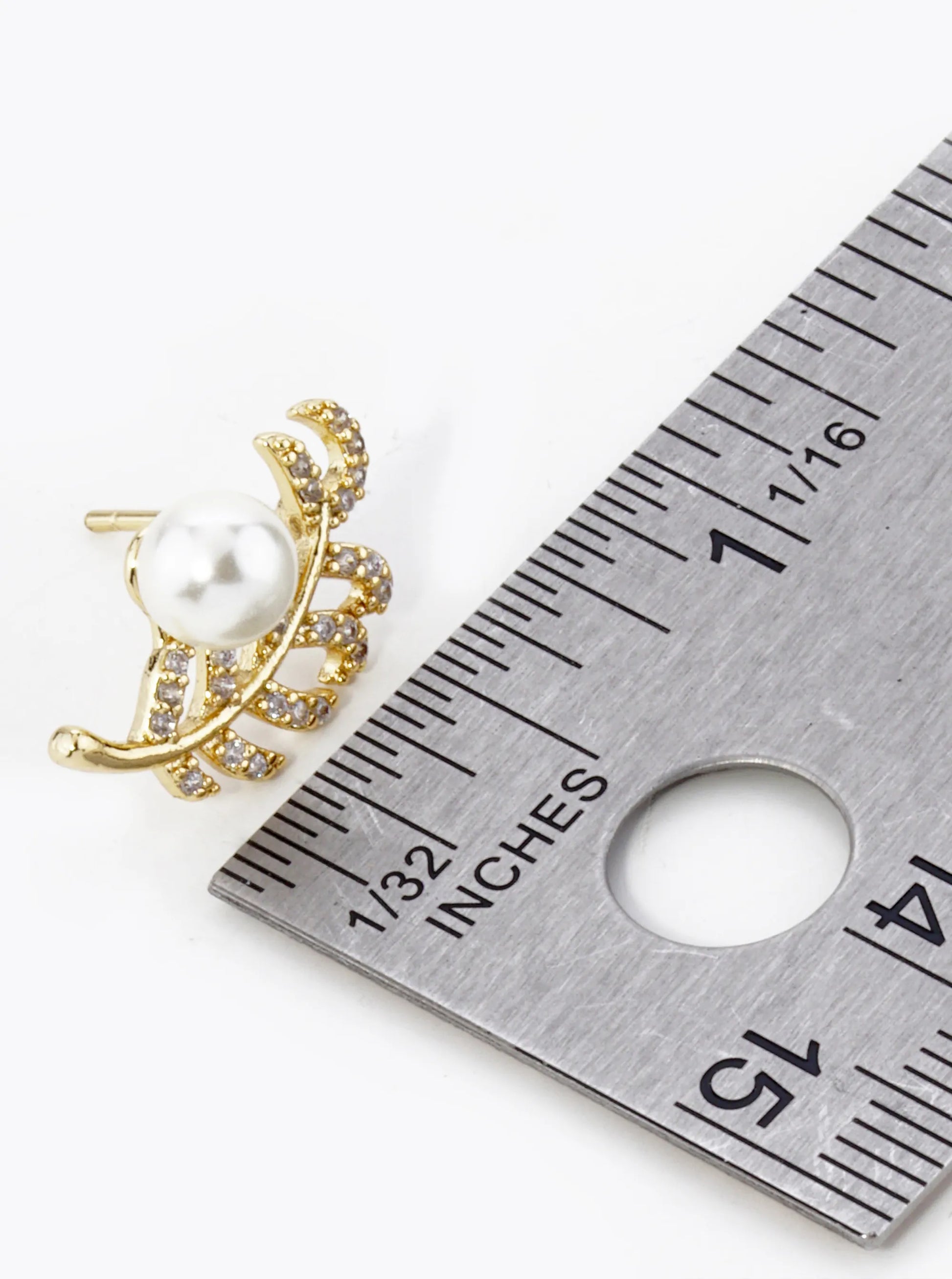 18K Gold Dipped Micro Pave Set Cubic Zirconia Feather And Pearl Stud Earrings