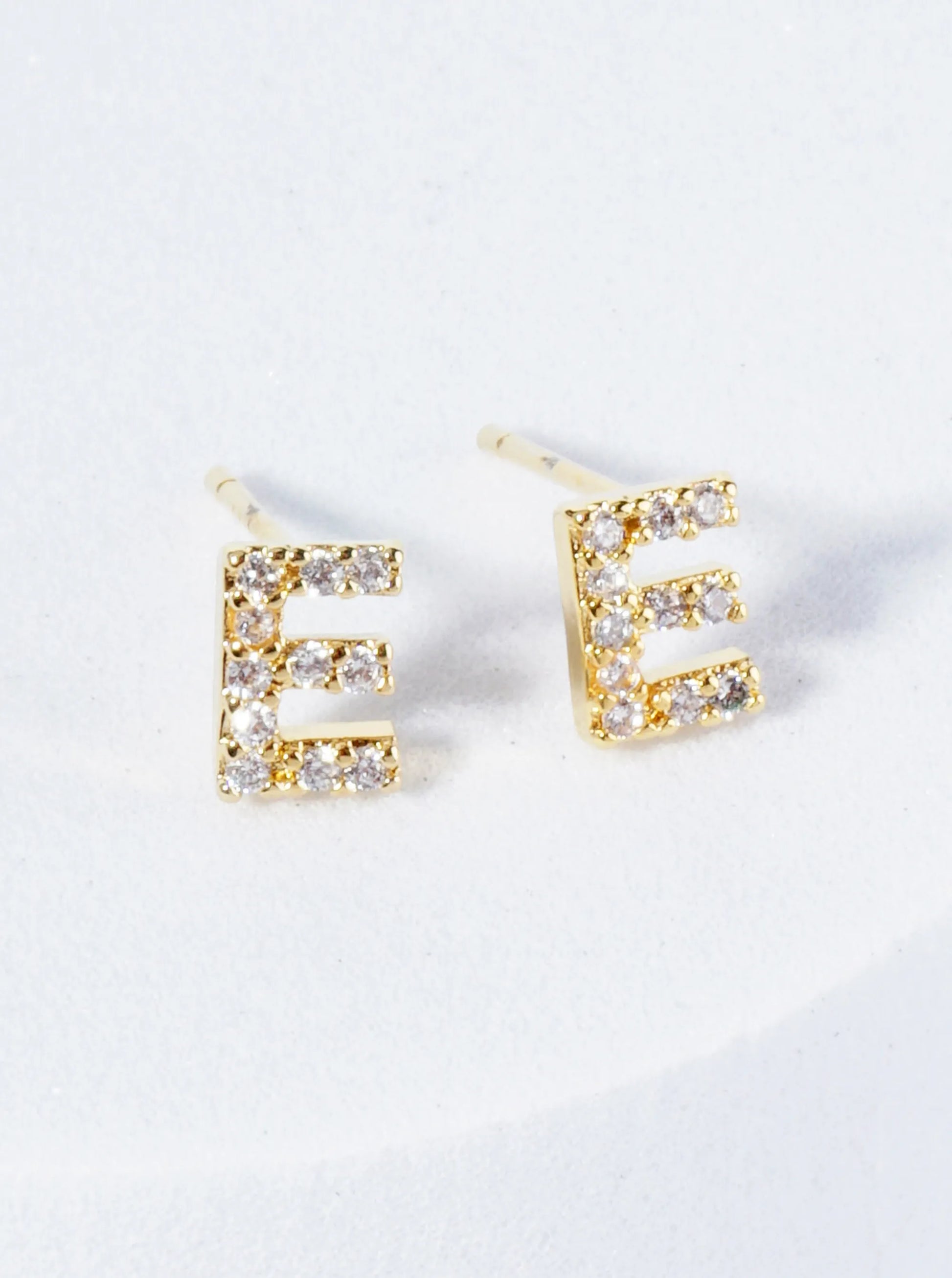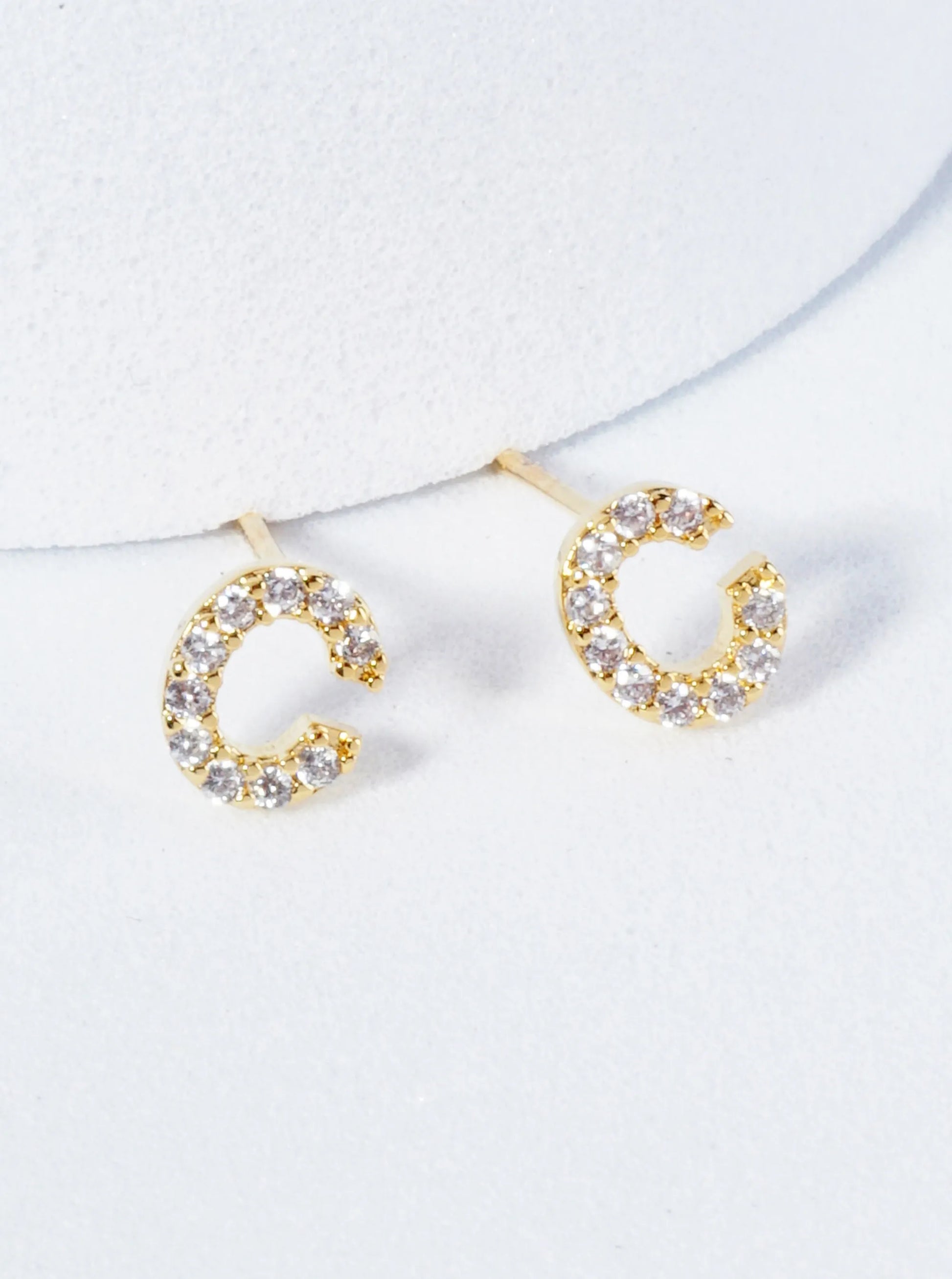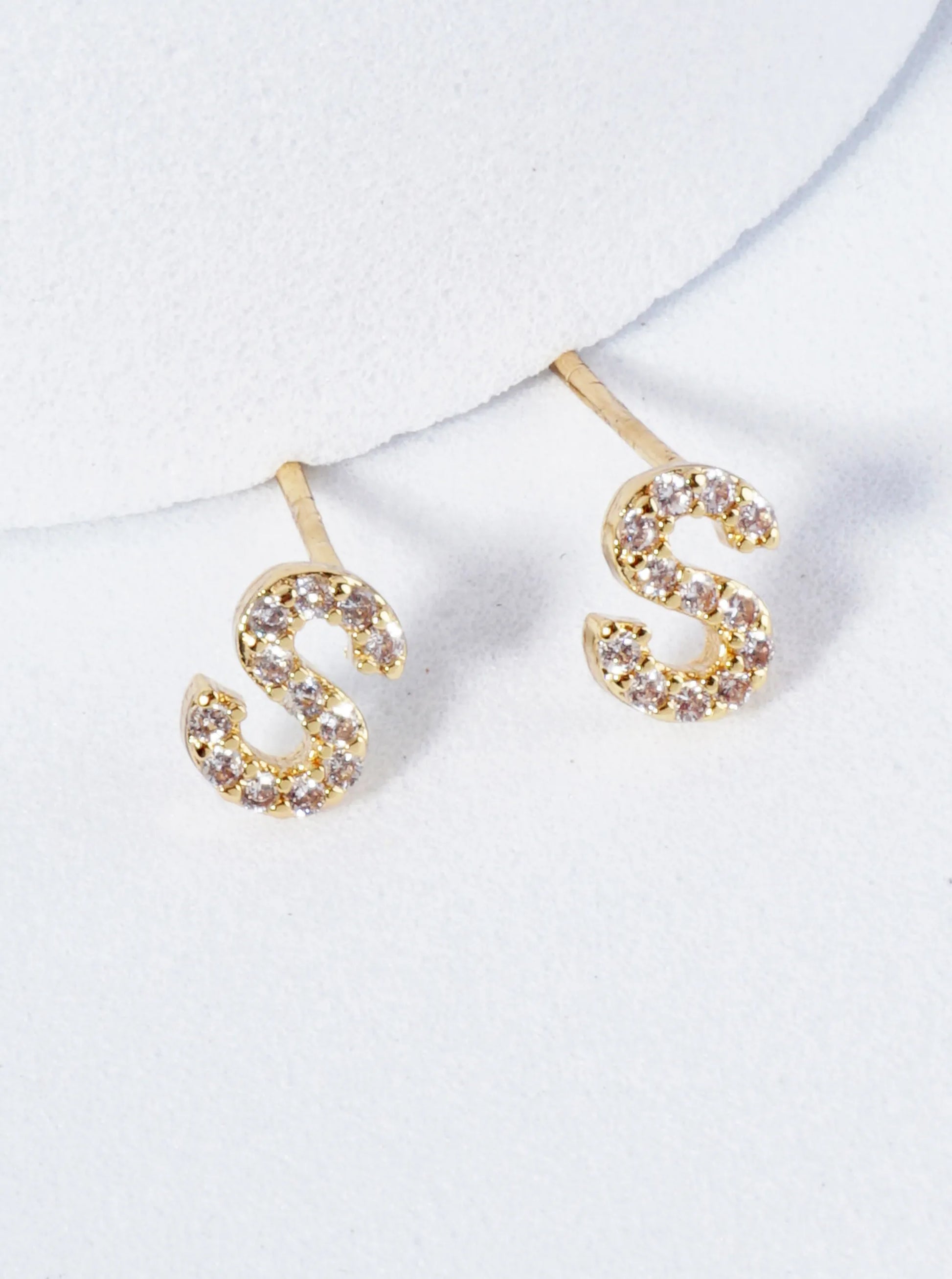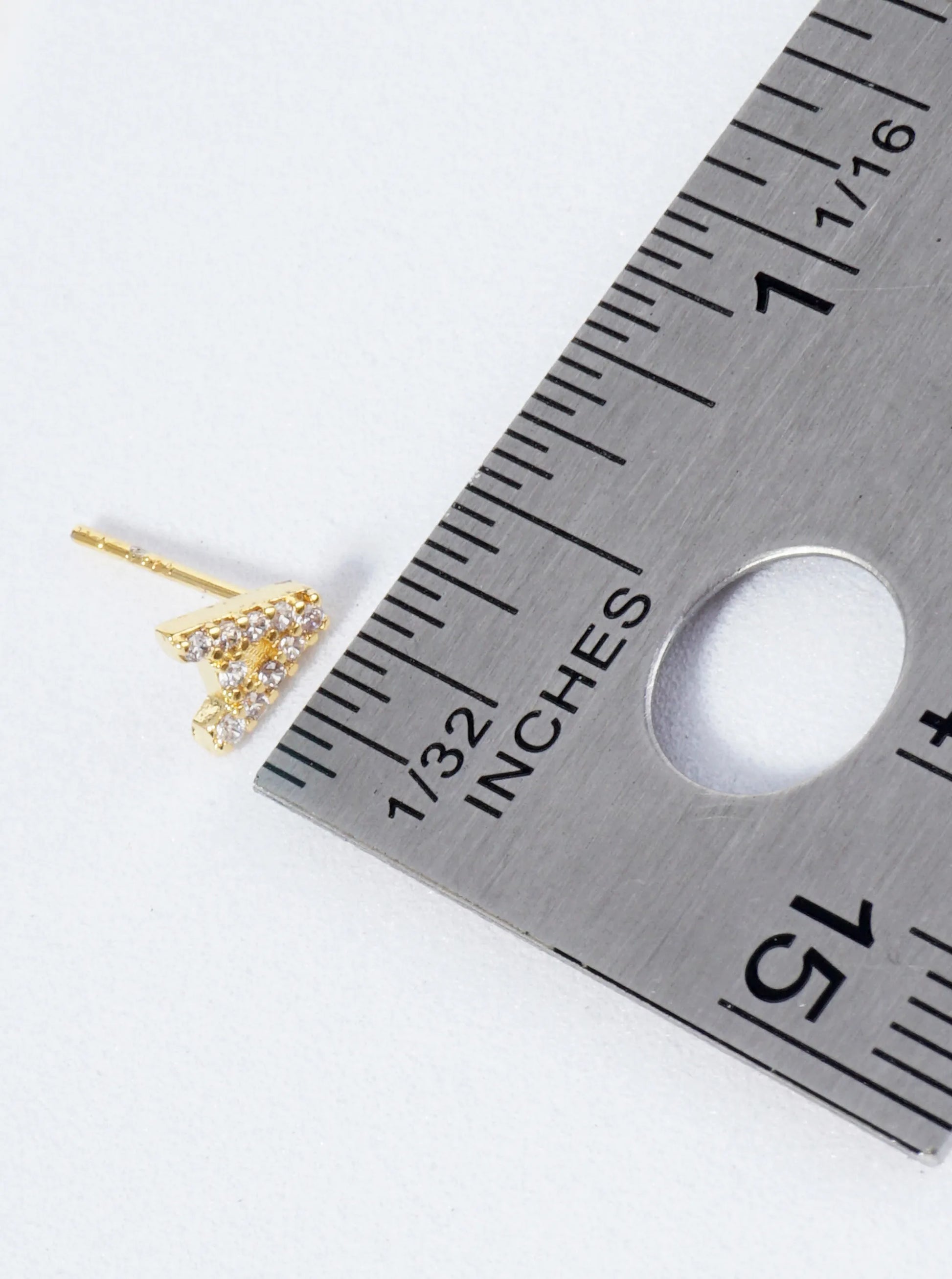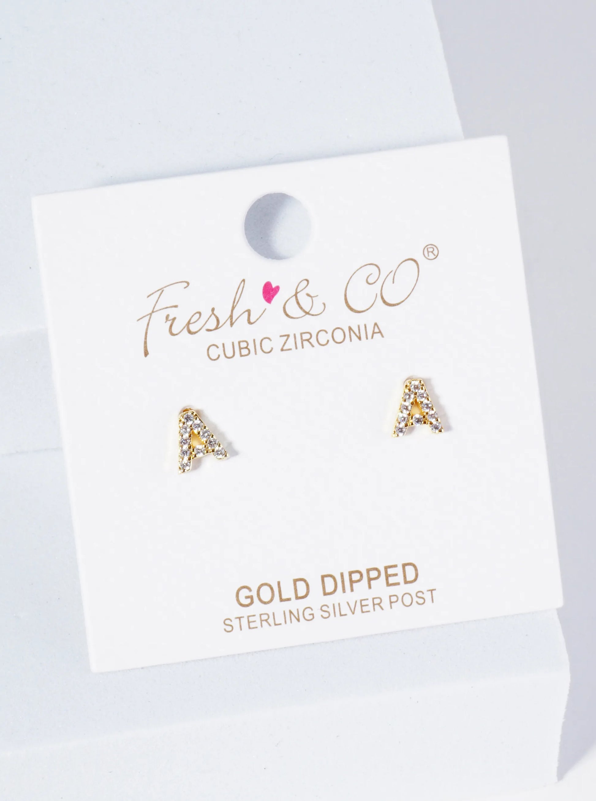 18K Gold Dipped Micro Pave Set Cubic Zirconia Initial Stud Earrings