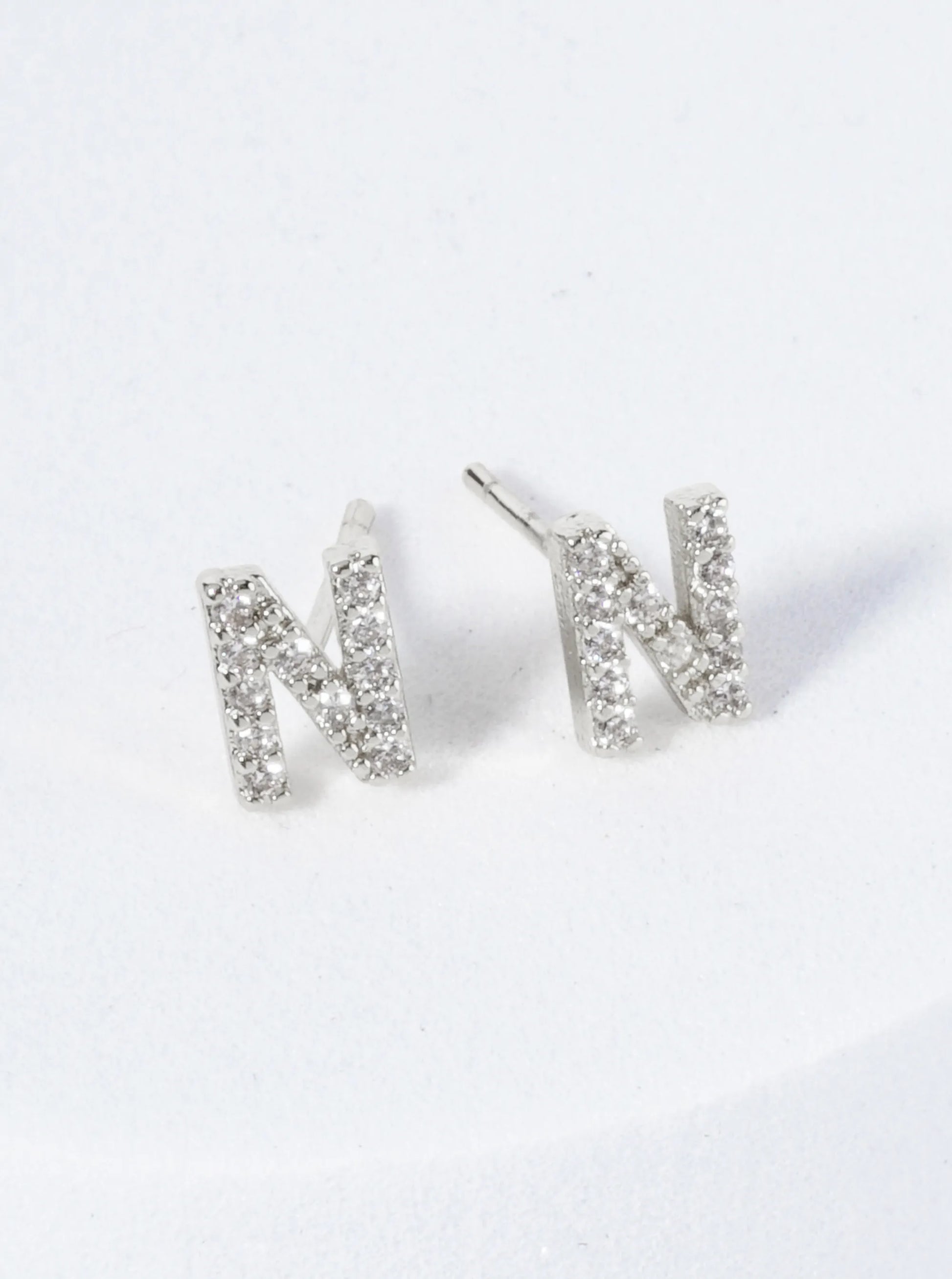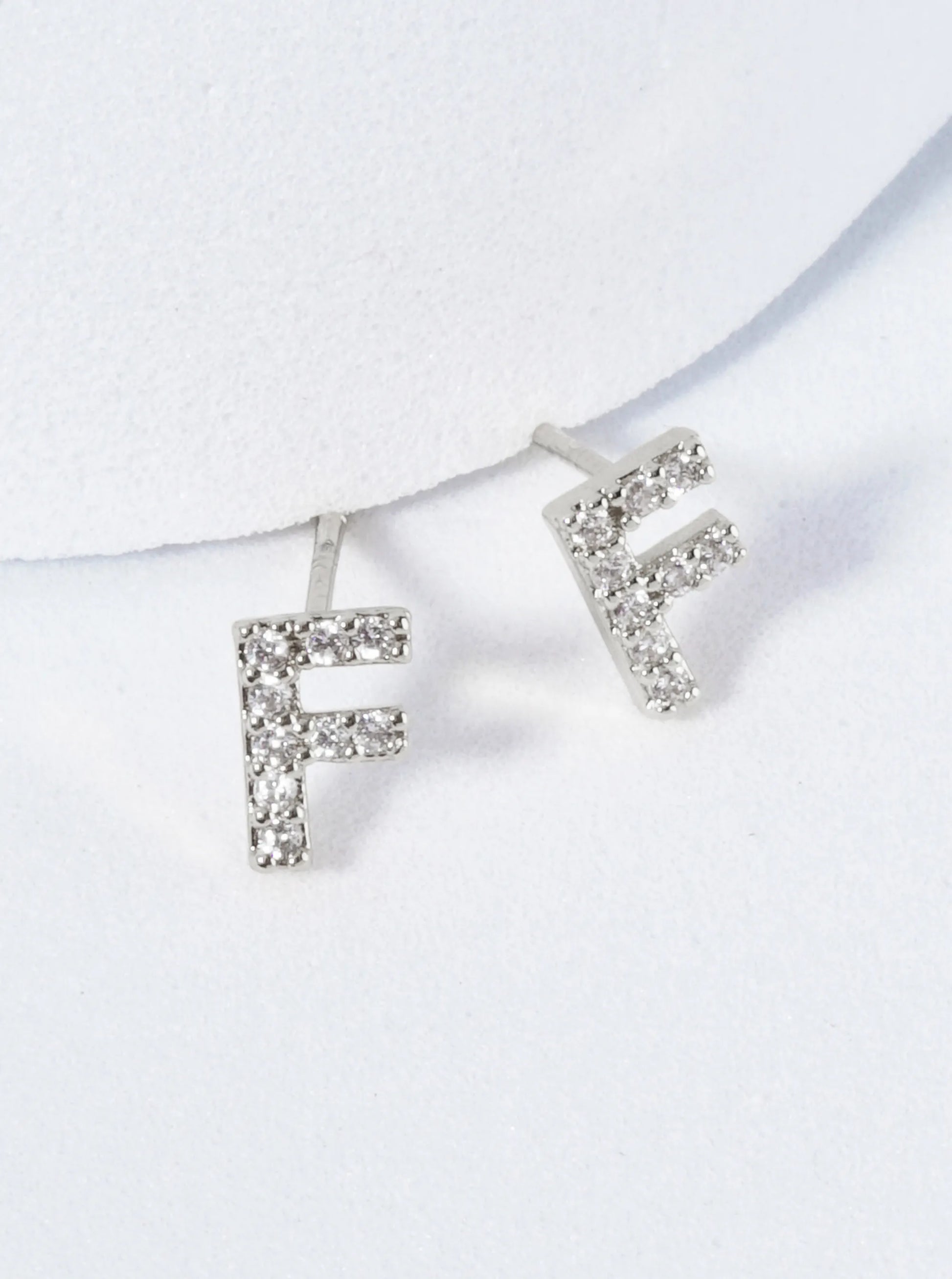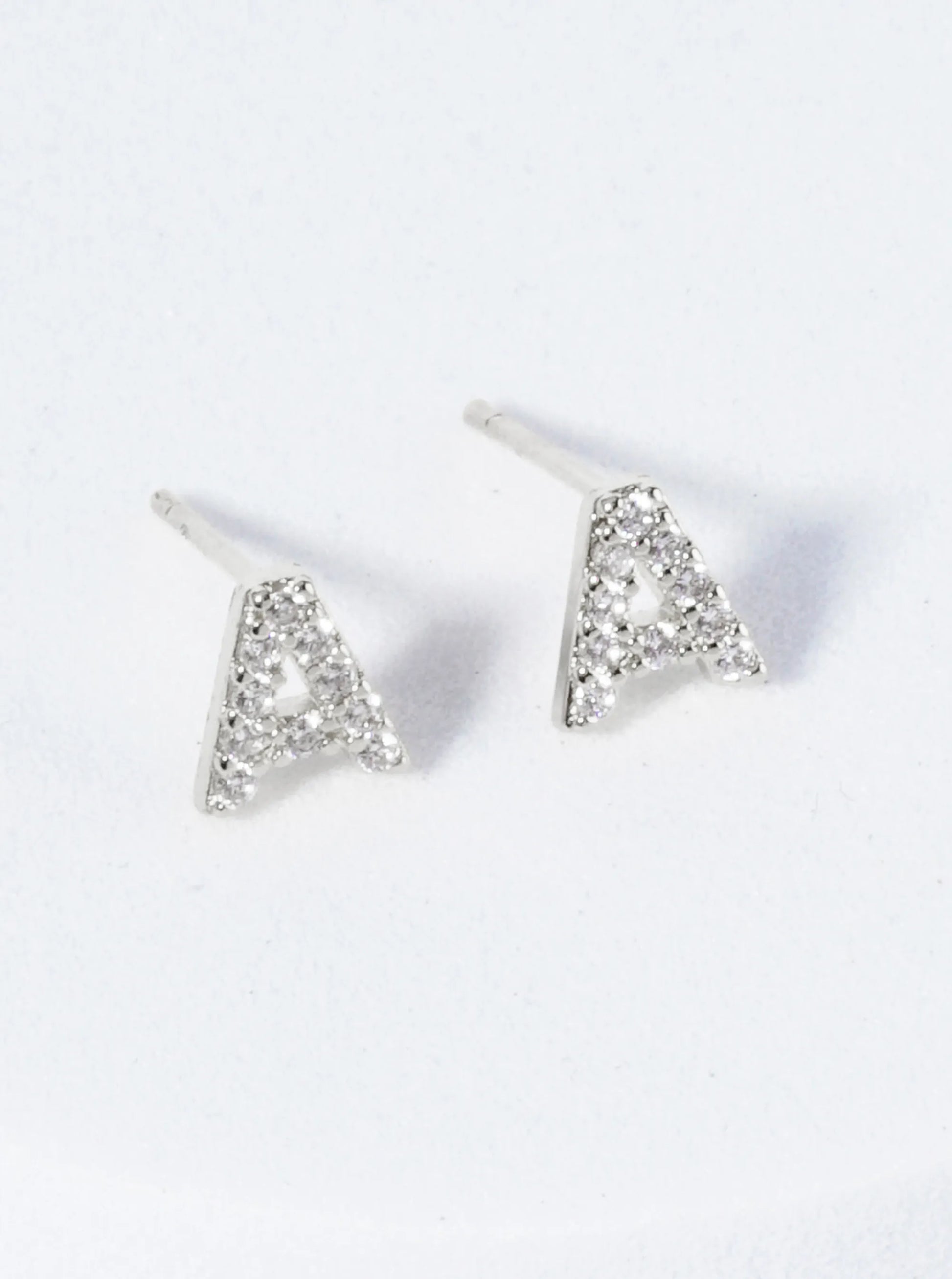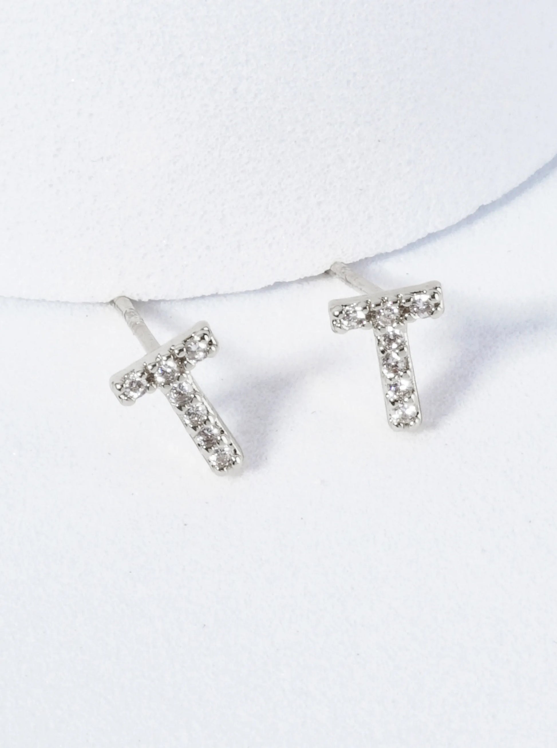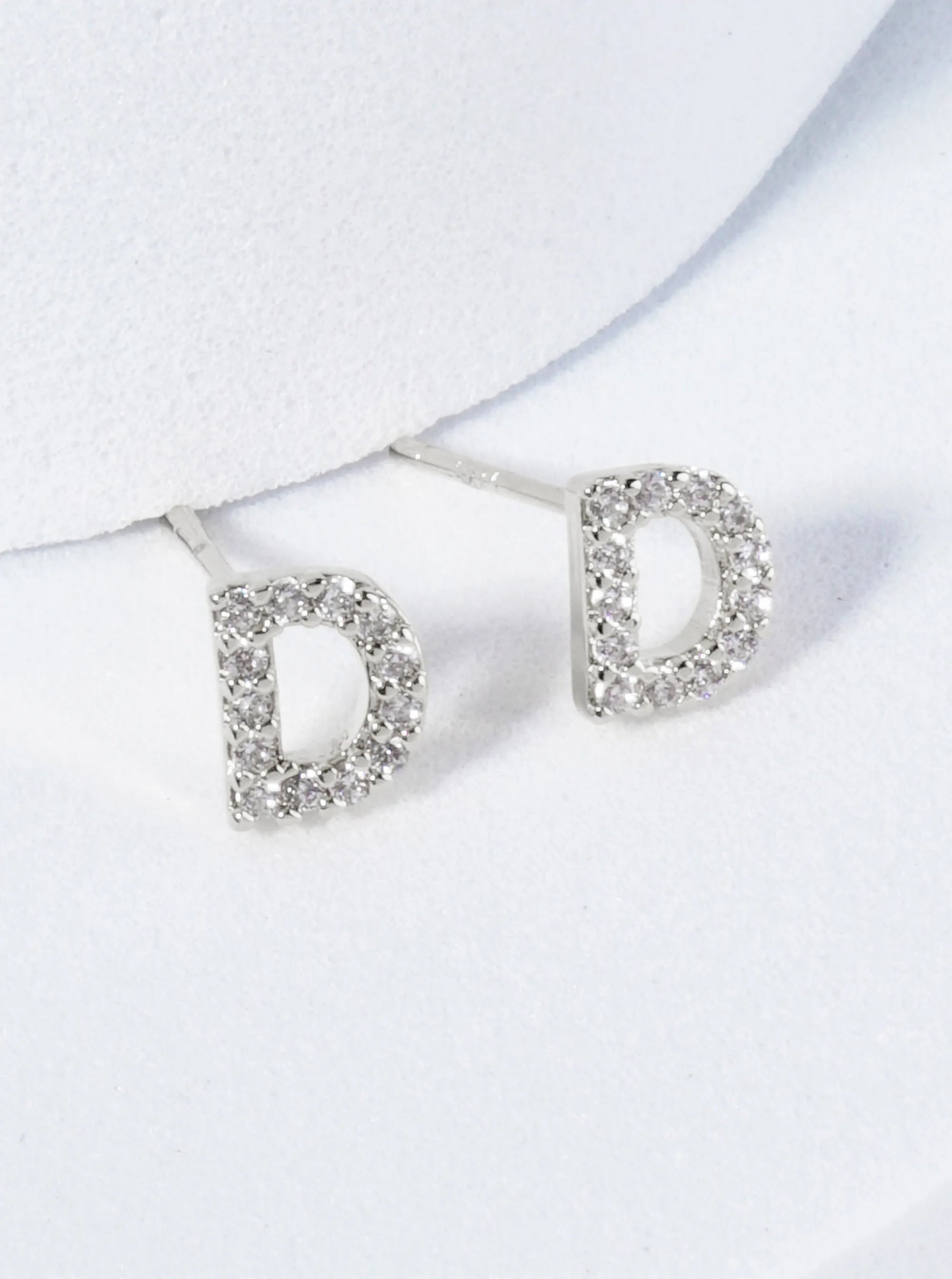18K Gold Dipped Micro Pave Set Cubic Zirconia Initial Stud Earrings