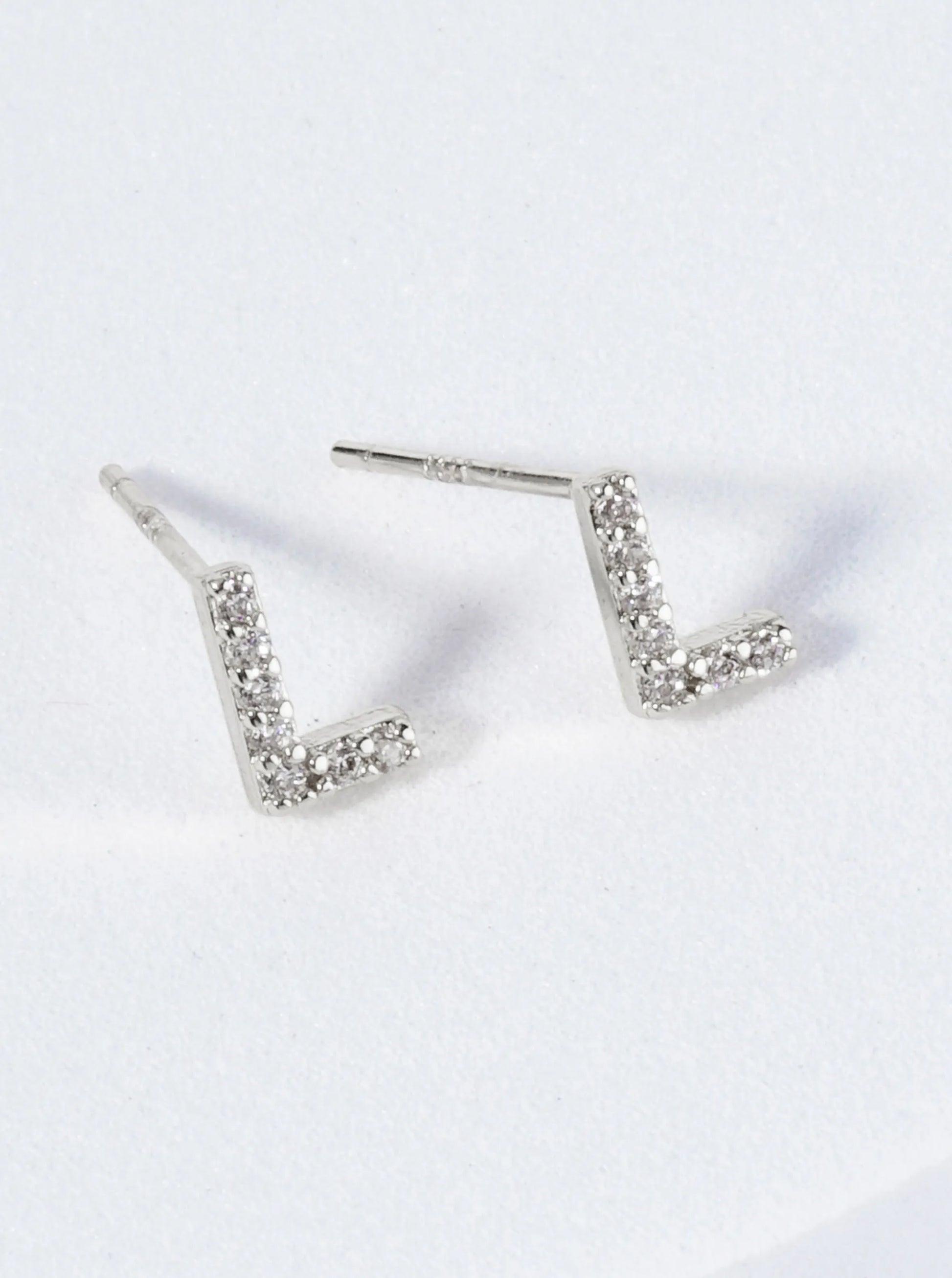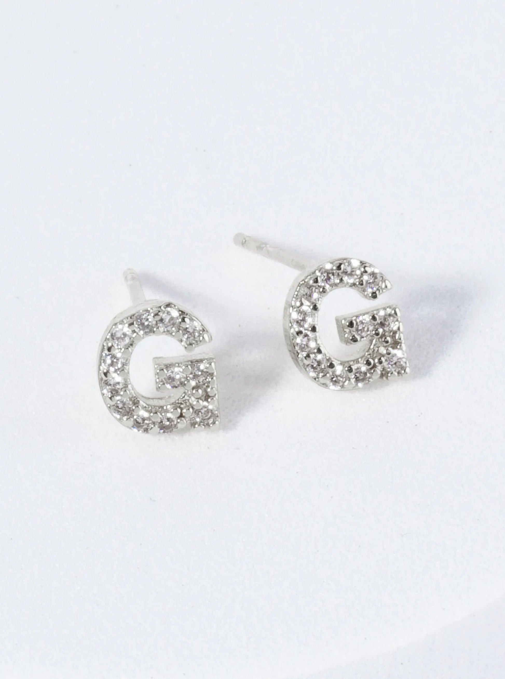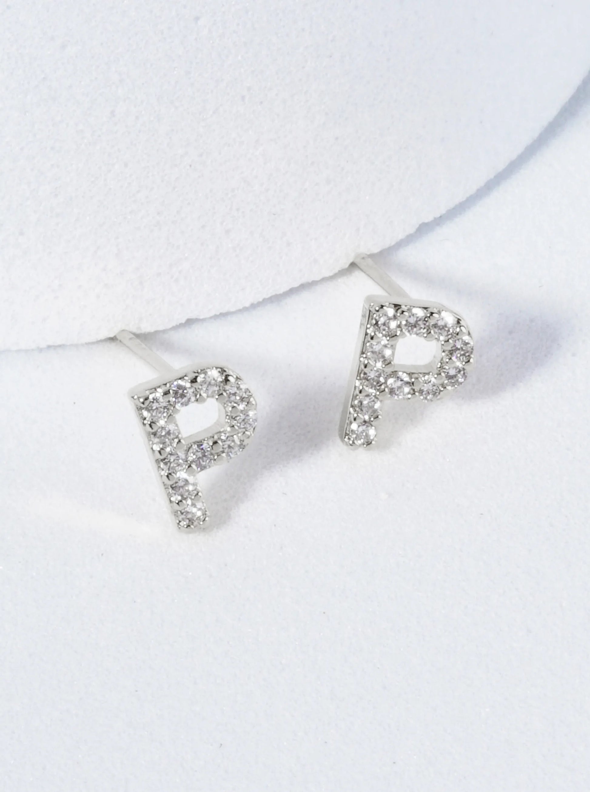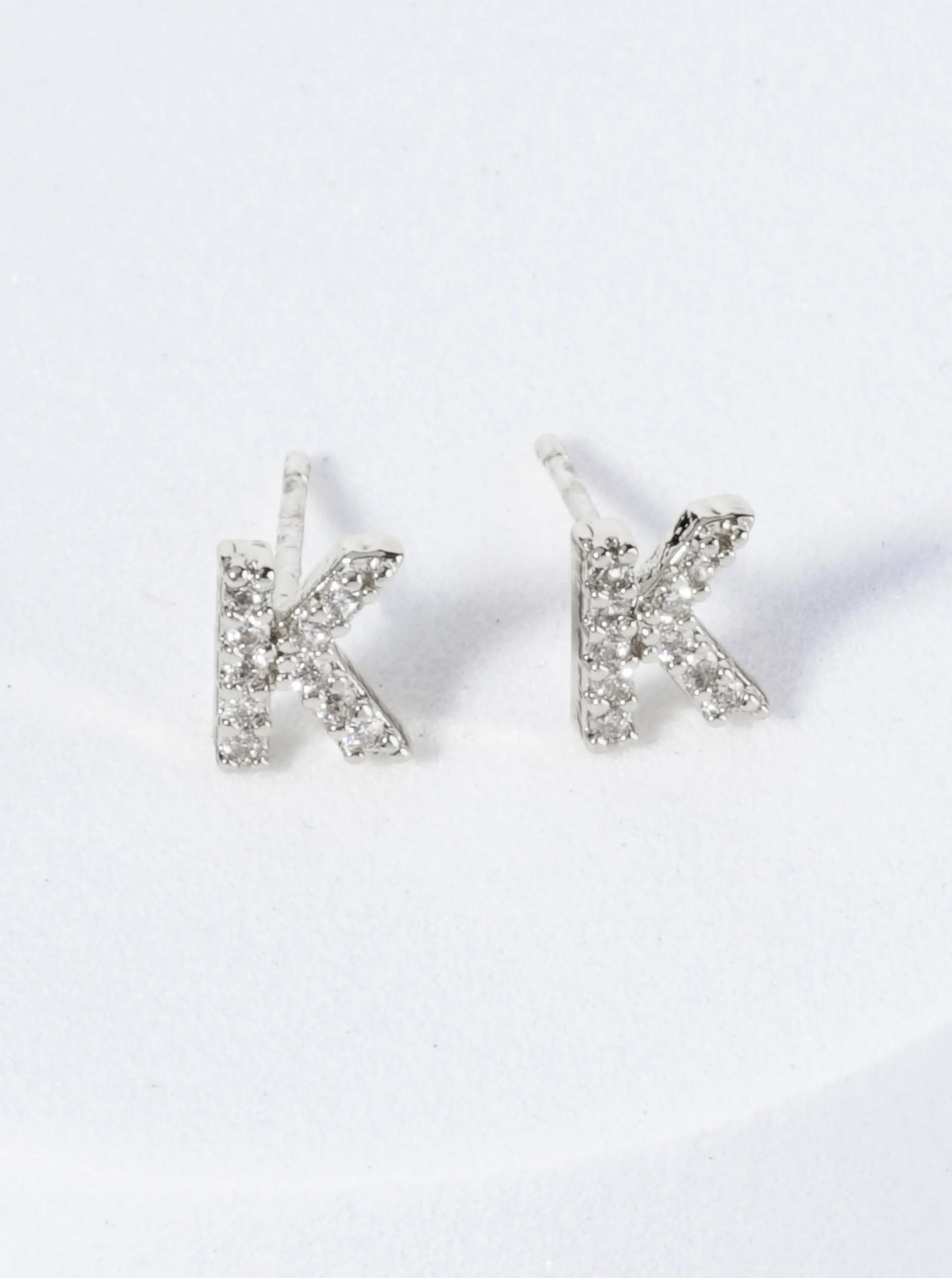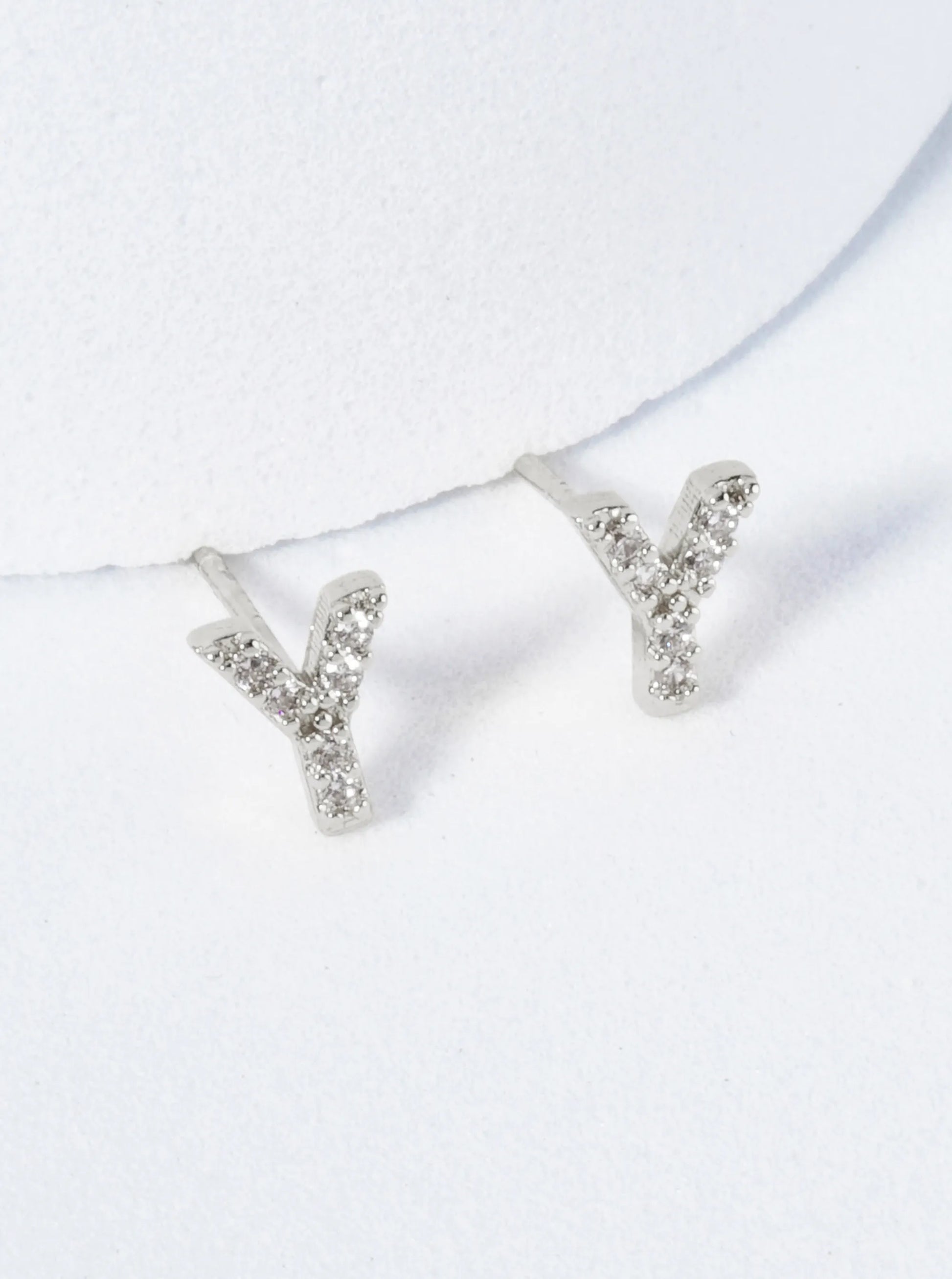 18K Gold Dipped Micro Pave Set Cubic Zirconia Initial Stud Earrings
