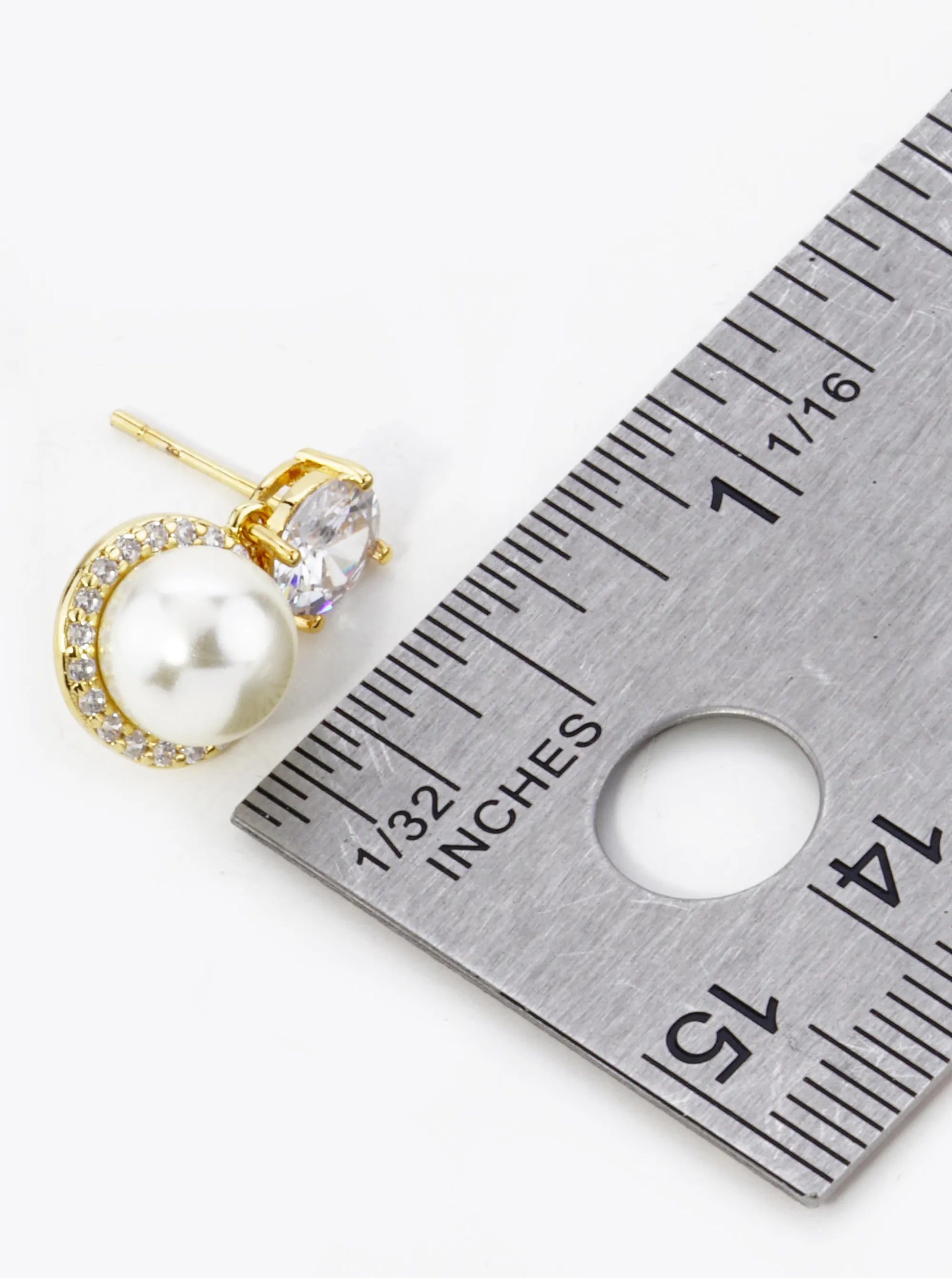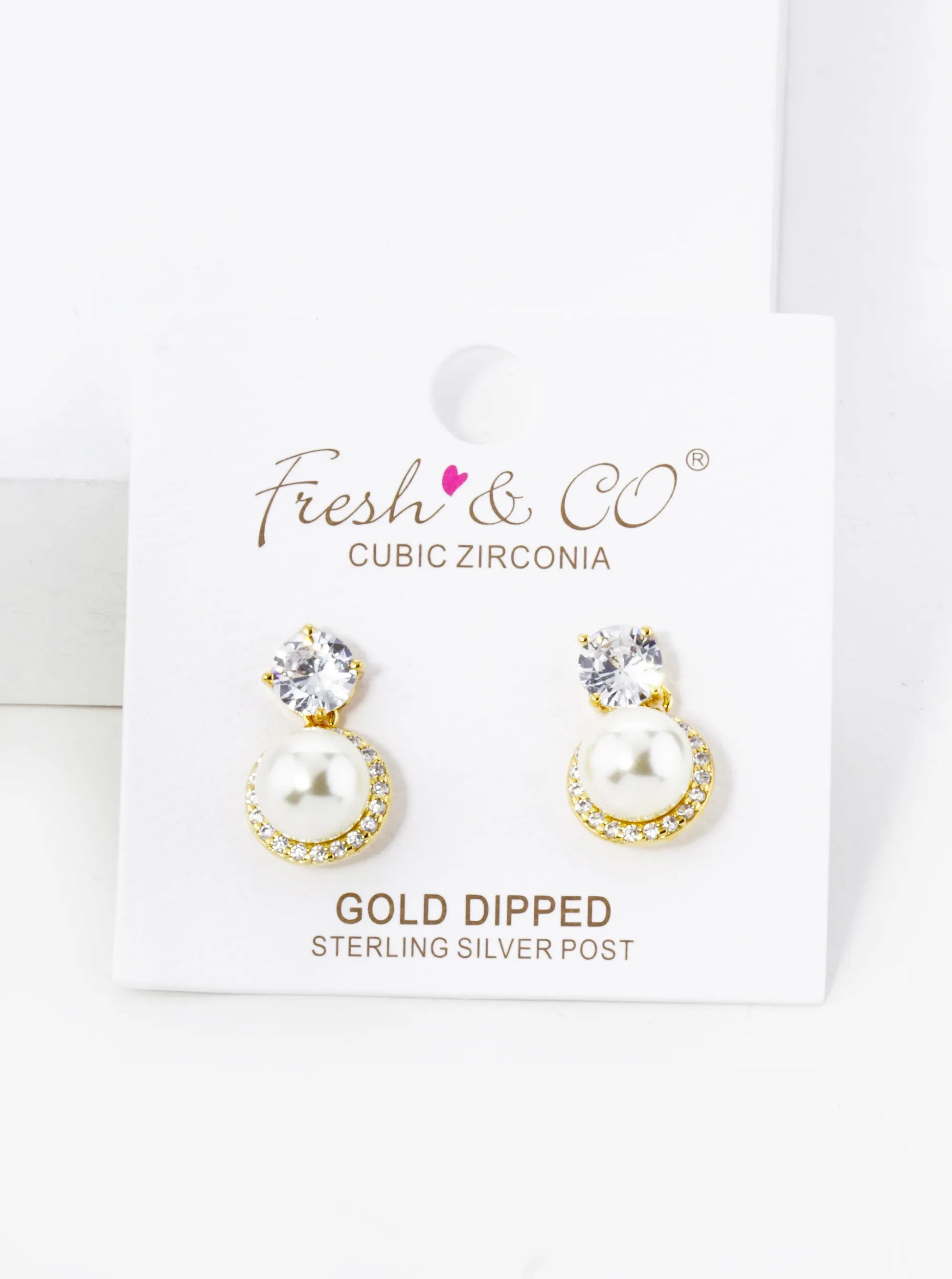 18K Gold Dipped Micro Pave Set Cubic Zirconia Pearl Drop Post Earrings