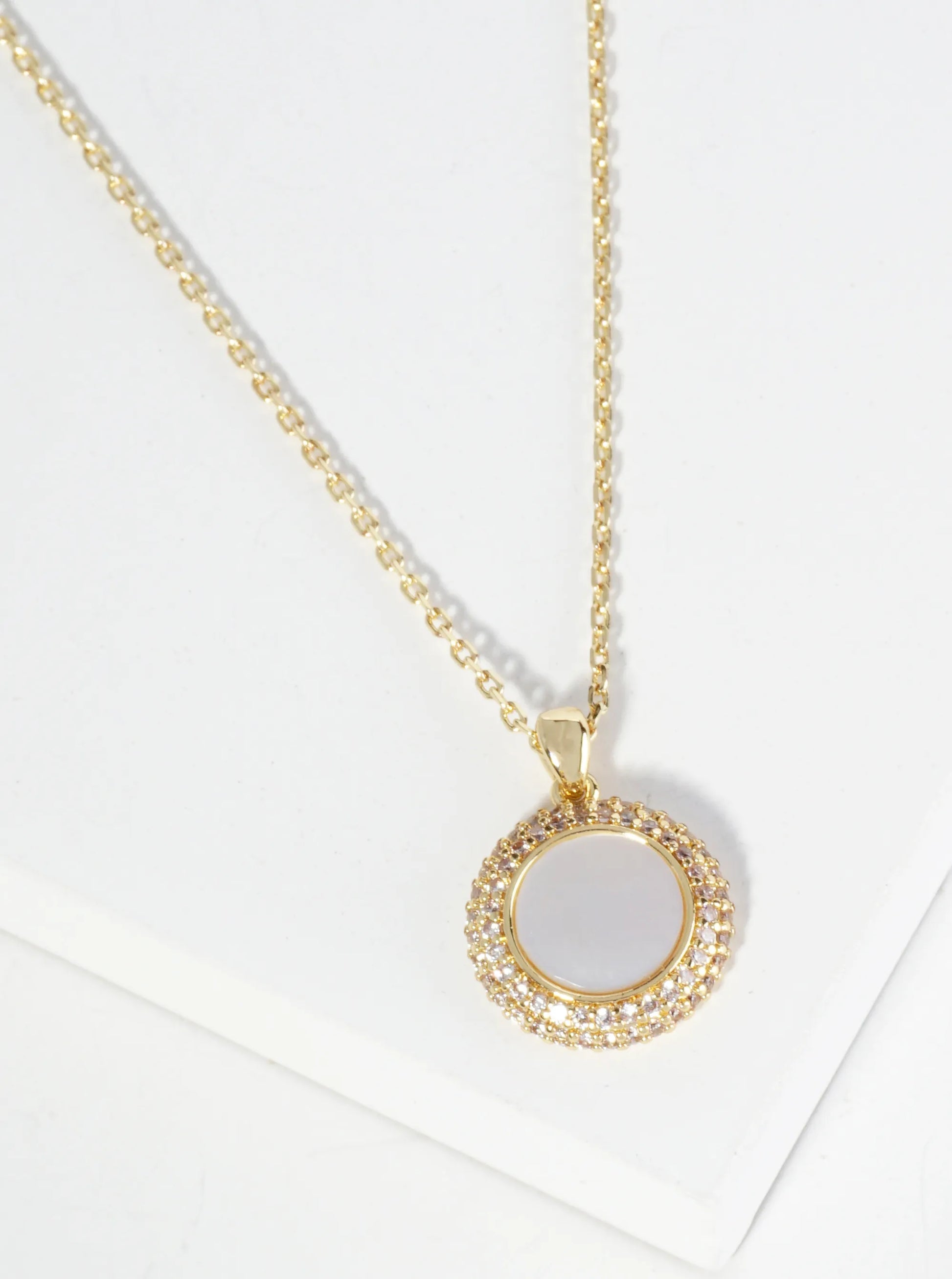 18K Gold Dipped Micro Pave Set Cubic Zirconia Round Pendant Necklace