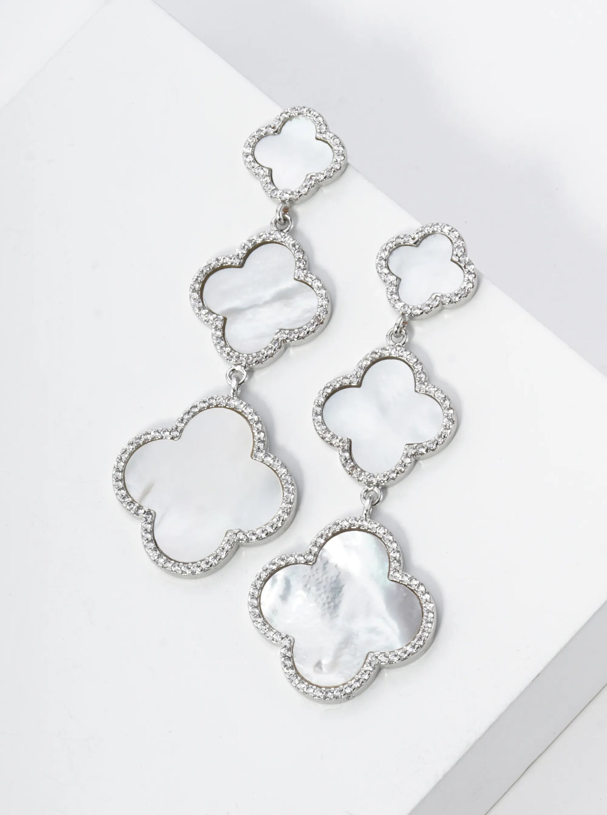 18K Gold Dipped Micro Pave Set Cubic Zirconia Three Graduated Quatrefoil Drop Dangle Post Earrings