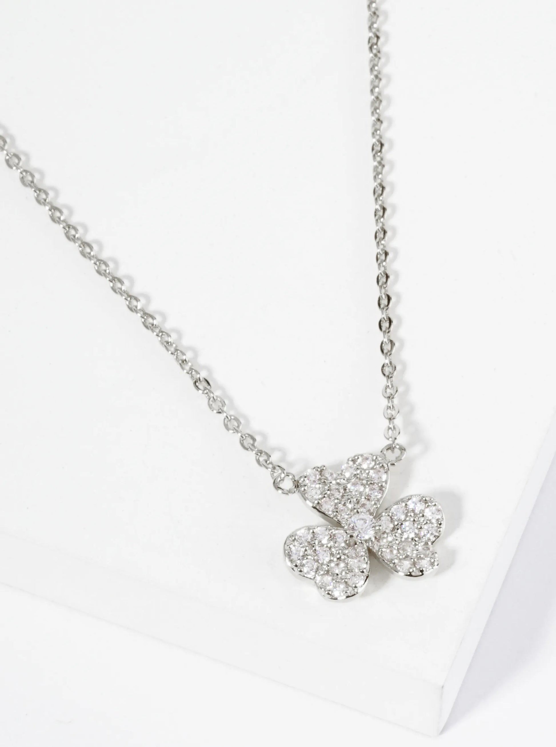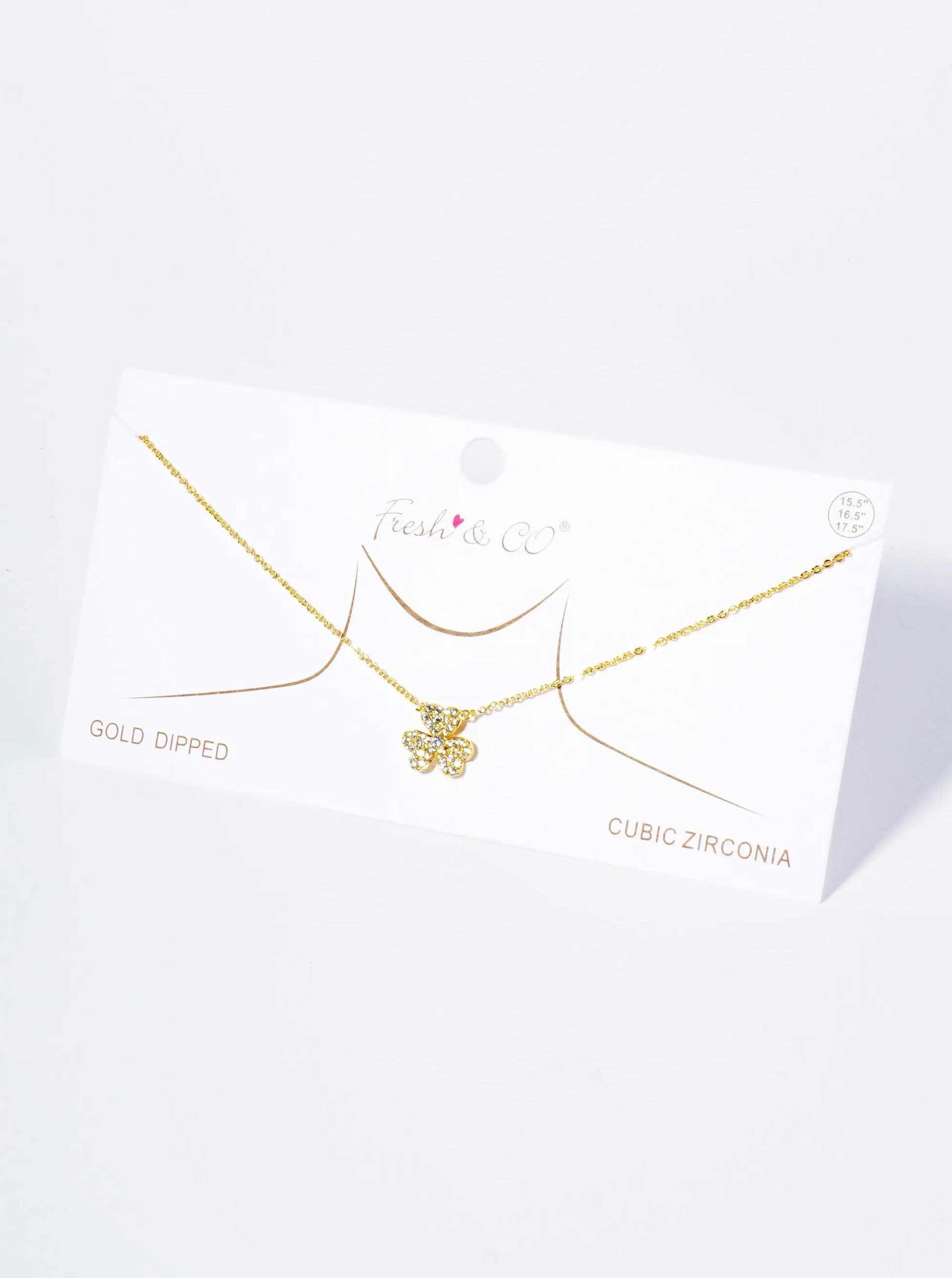 18K Gold Dipped Micro Pave Set CZ 3 Leaf Clover Pendant Necklace
