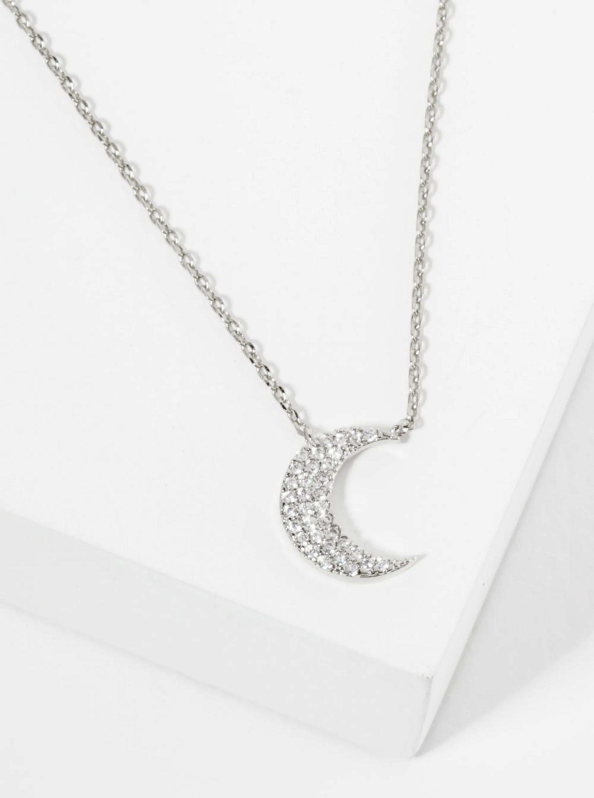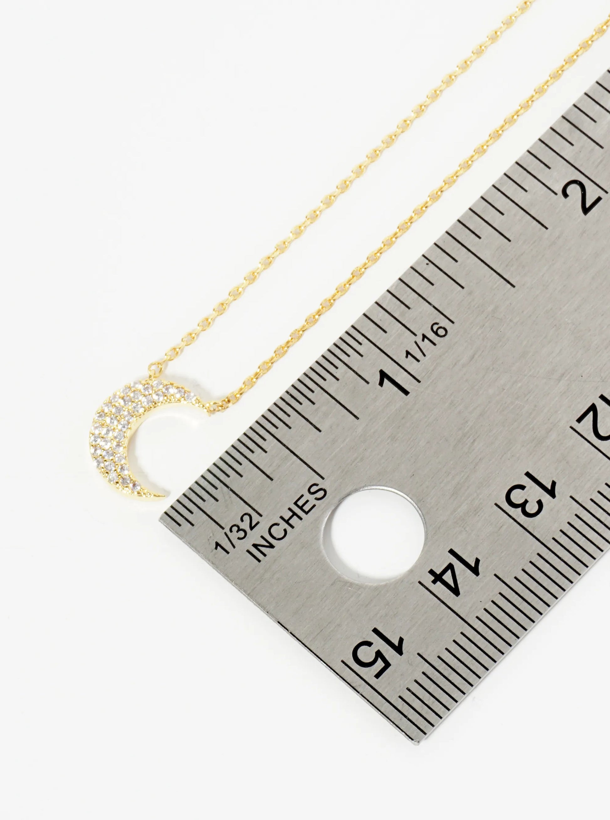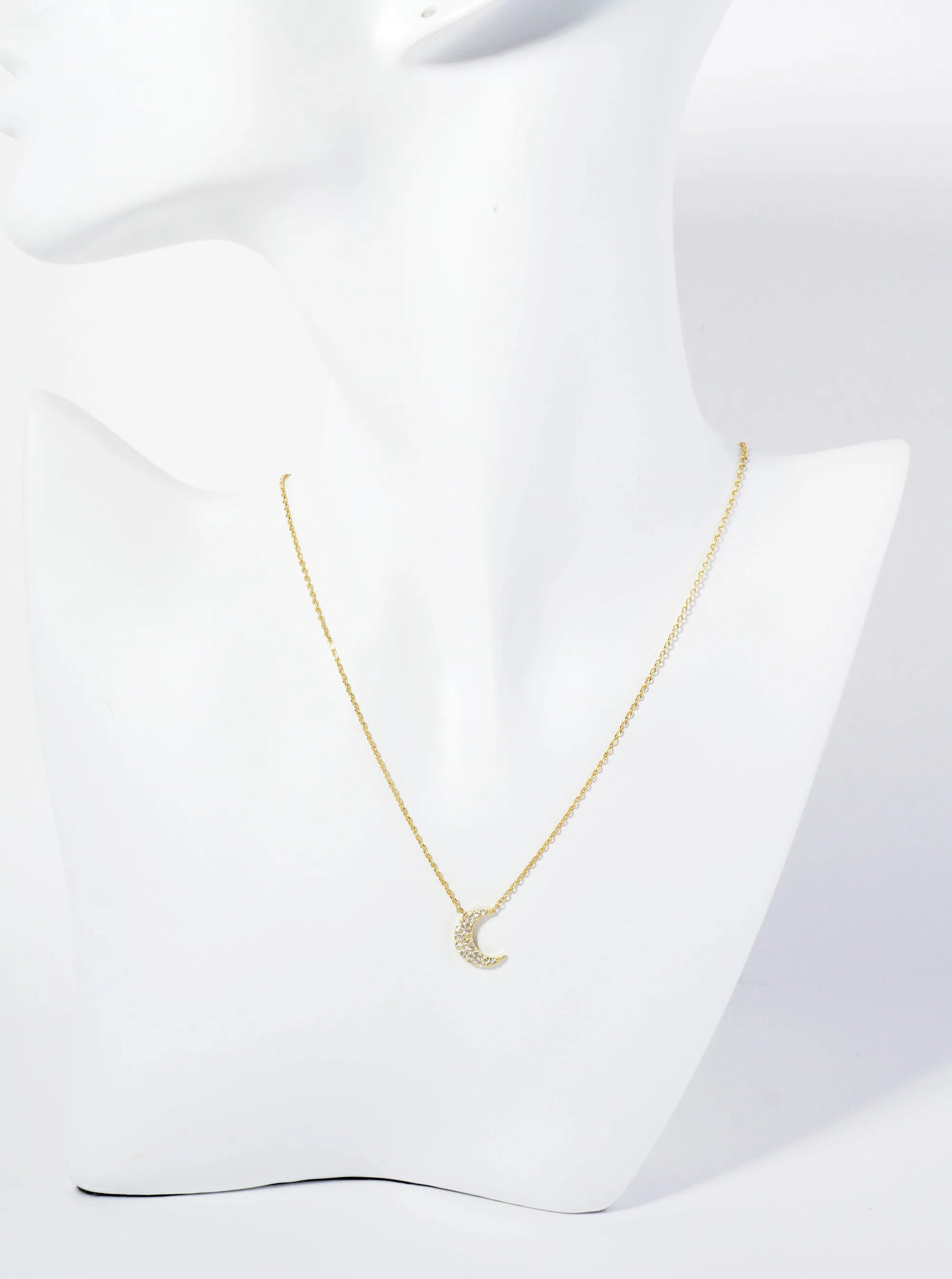 18K Gold Dipped Micro Pave Set CZ Crescent Moon Pendant Necklace