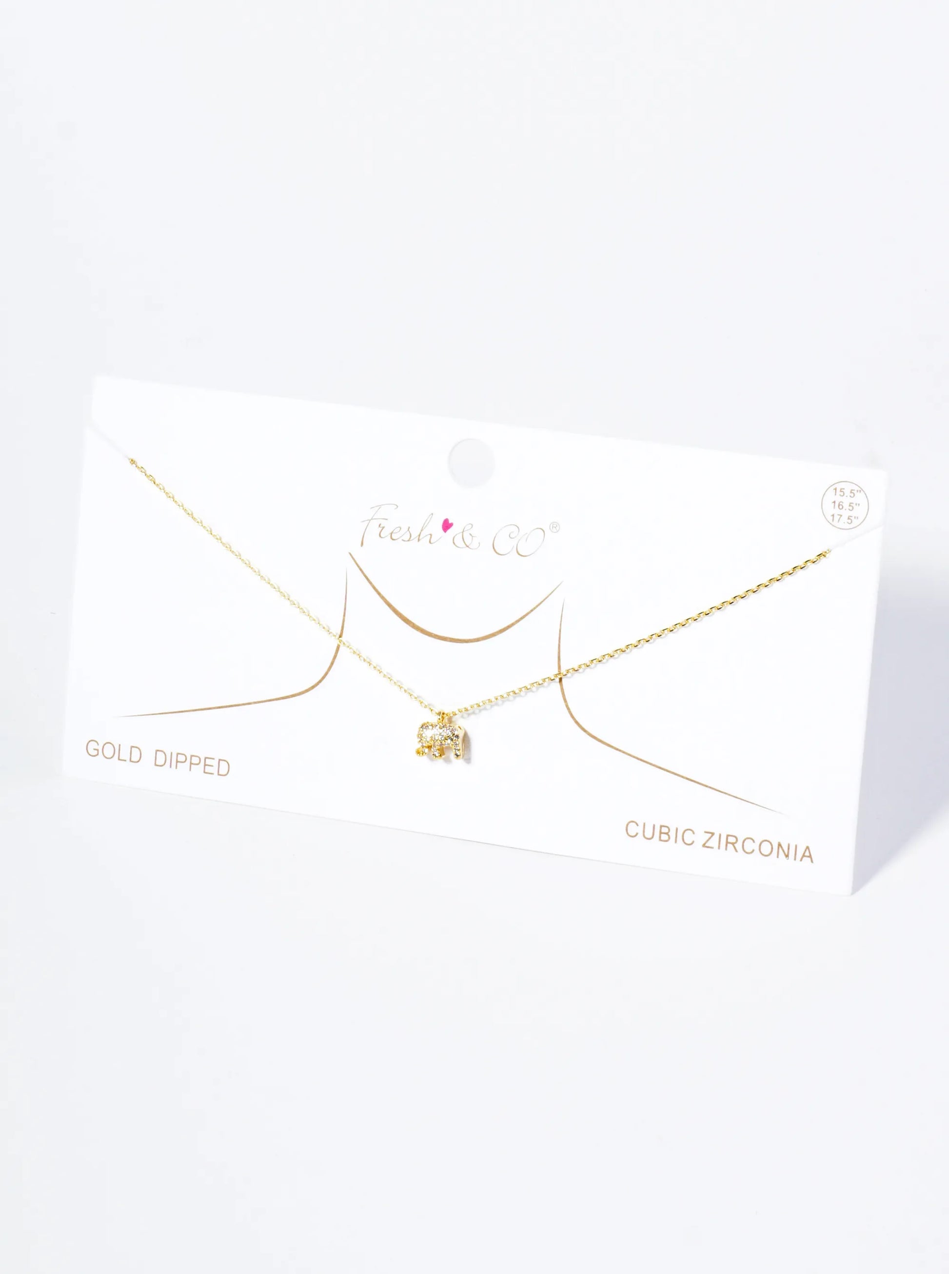 18K Gold Dipped Micro Pave Set CZ Elephant Pendant Necklace