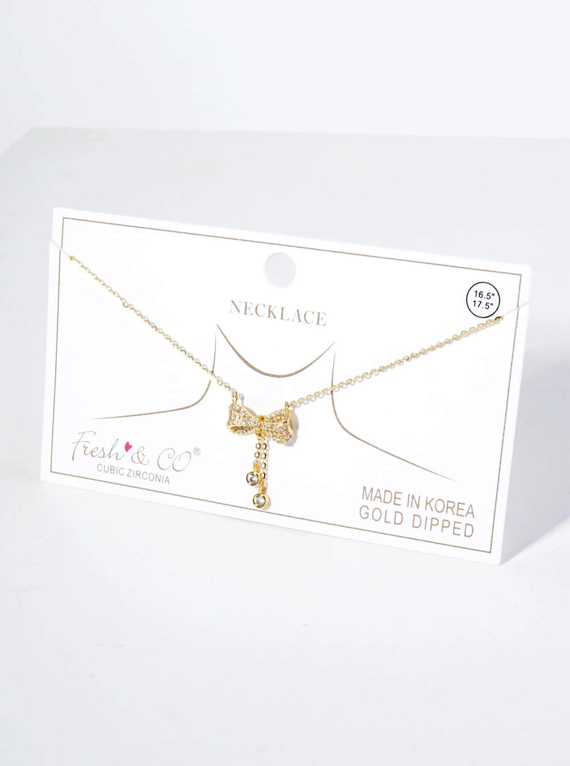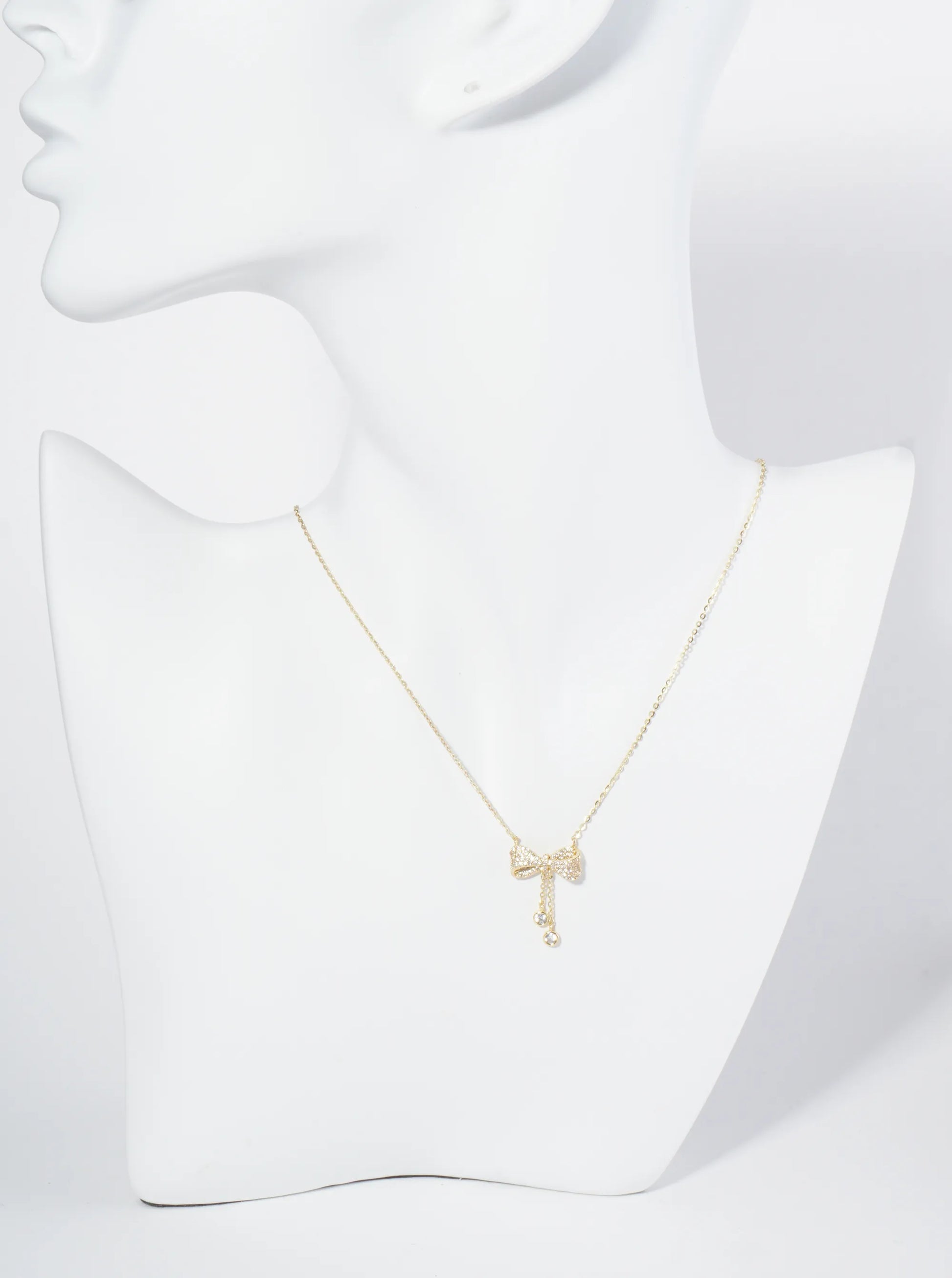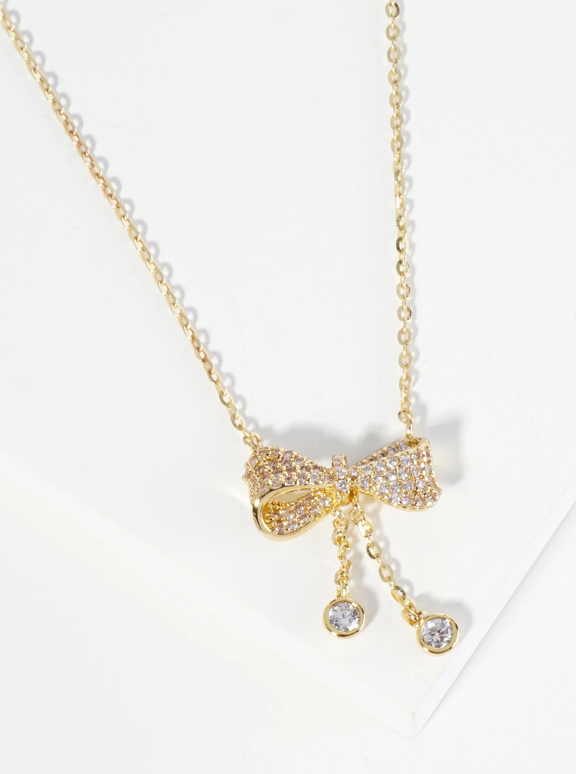 18K Gold Dipped Micro Pave Set CZ Ribbon Bow Pendant Necklace
