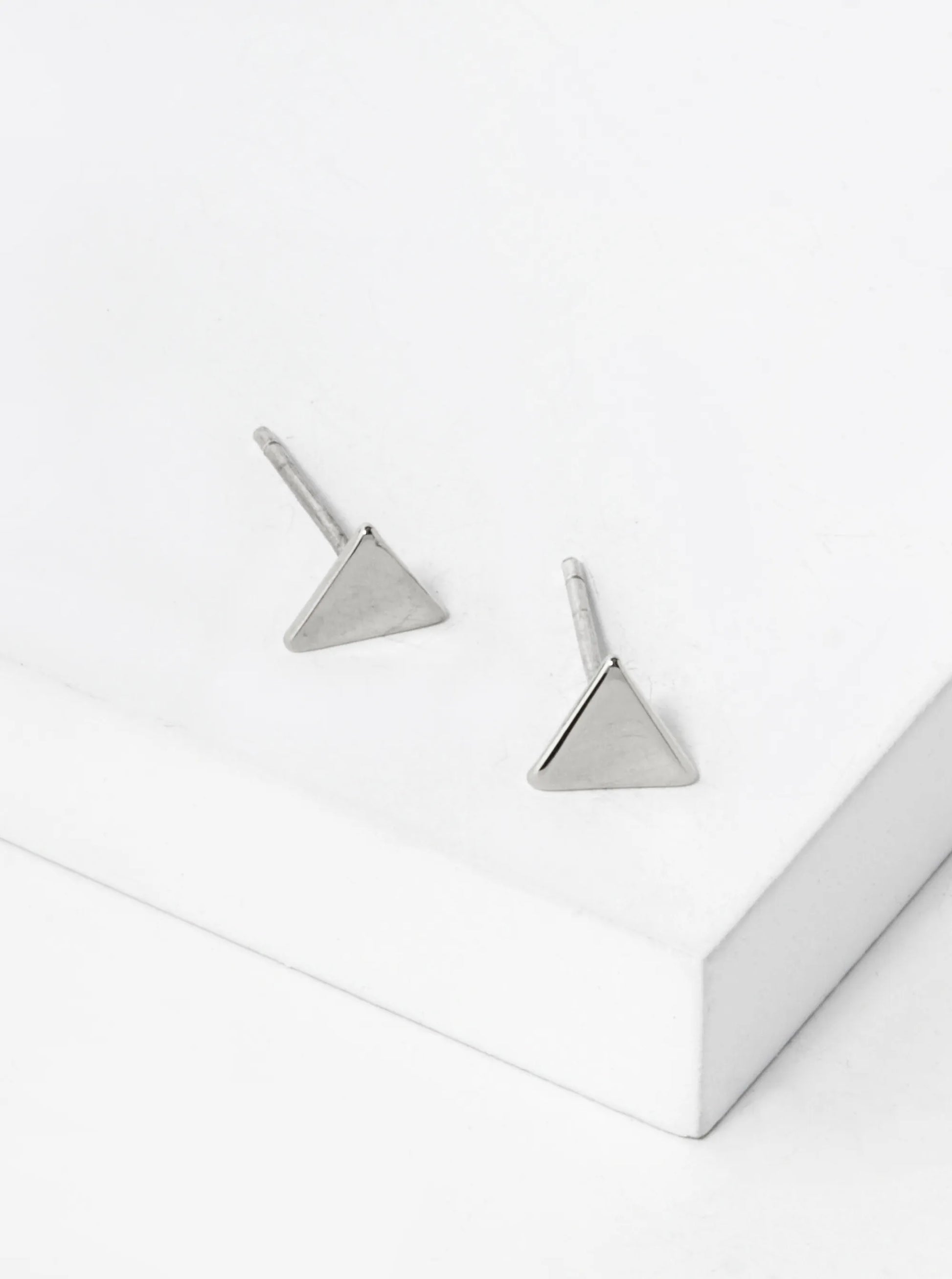 18K Gold Dipped Minimalist 5mm Brass Flat Triangle Sterling Silver Post Stud Earrings