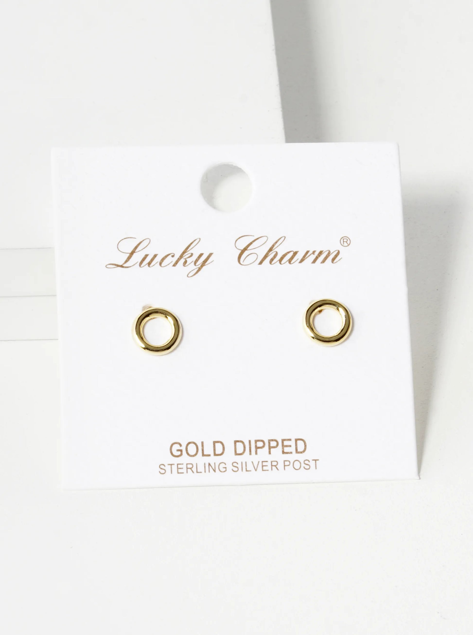 18K Gold Dipped Minimalist 7mm Brass Donut Sterling Silver Post Stud Earrings