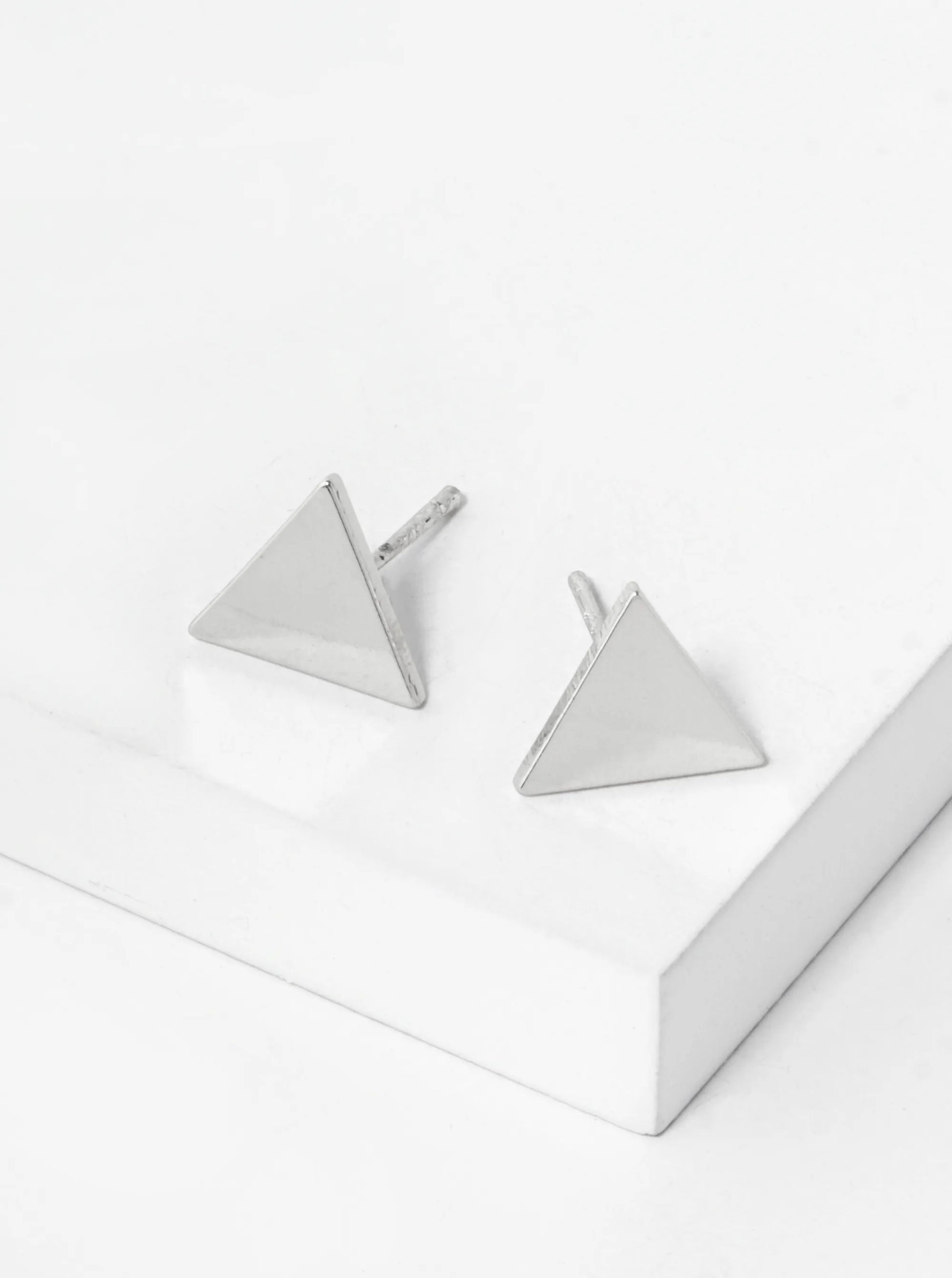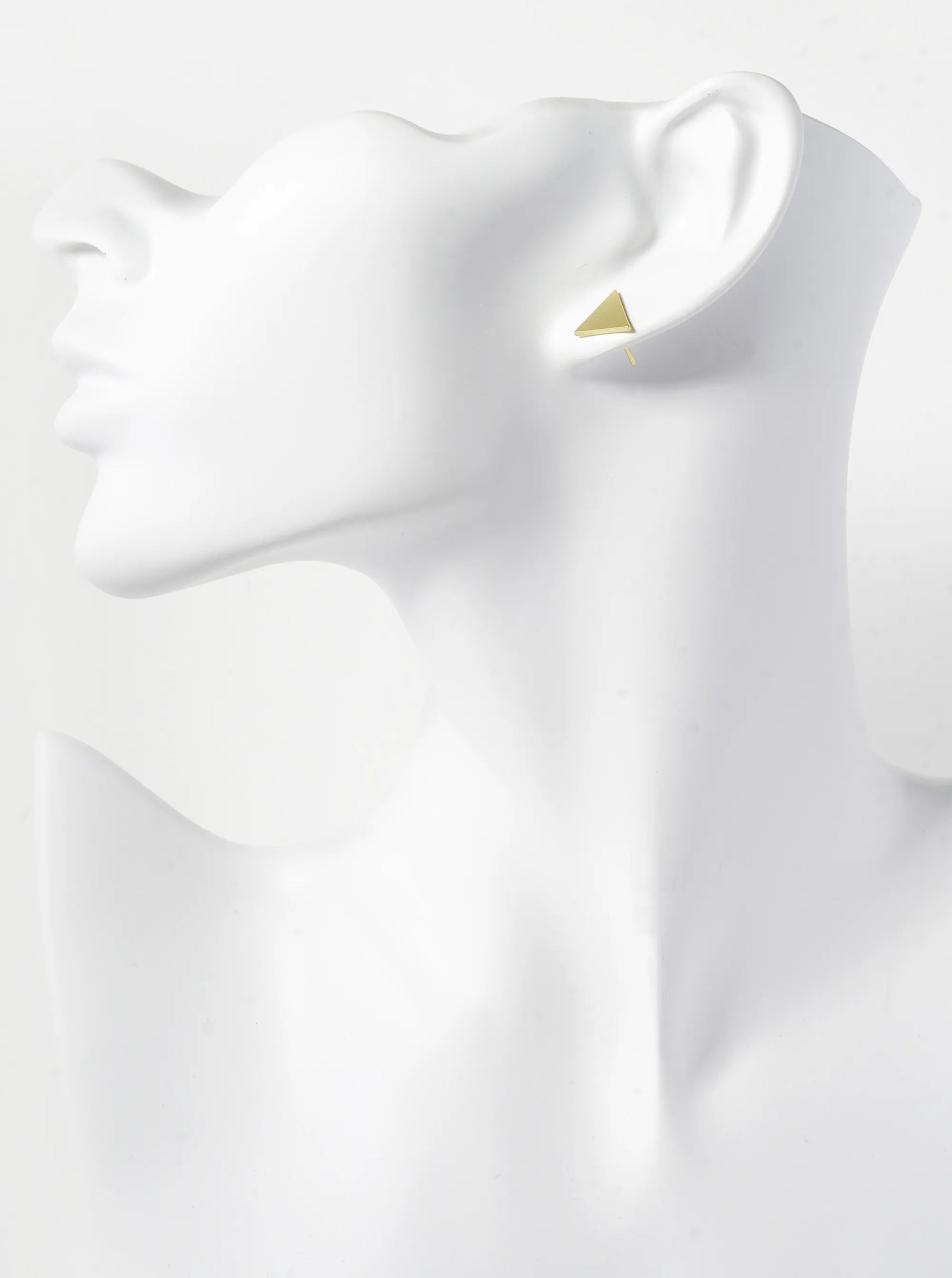 18K Gold Dipped Minimalist 9mm Brass Flat Triangle Sterling Silver Post Stud Earrings