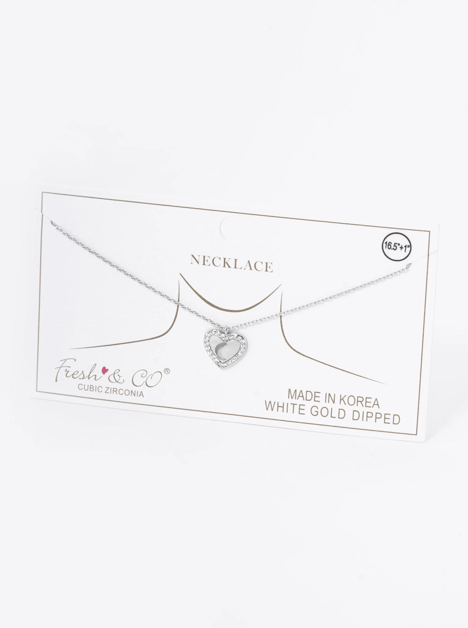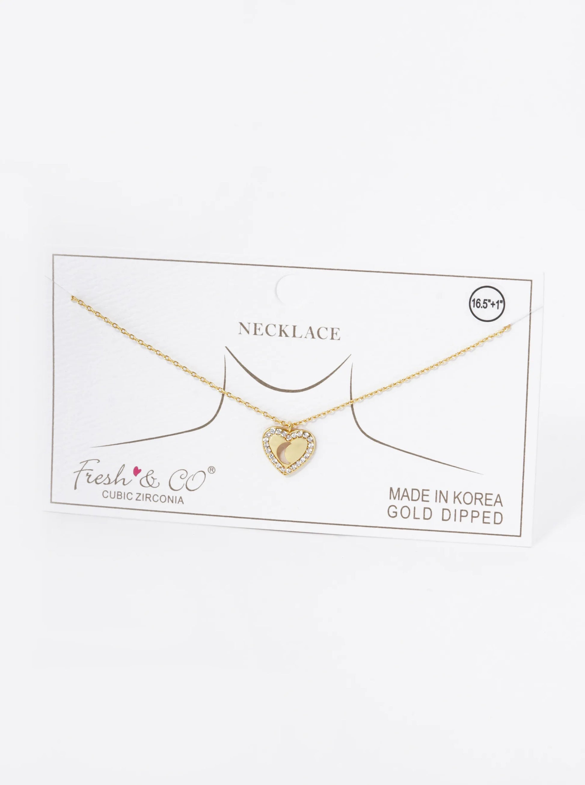 18K Gold Dipped Moon Cutout CZ Pave Heart Pendant Necklace