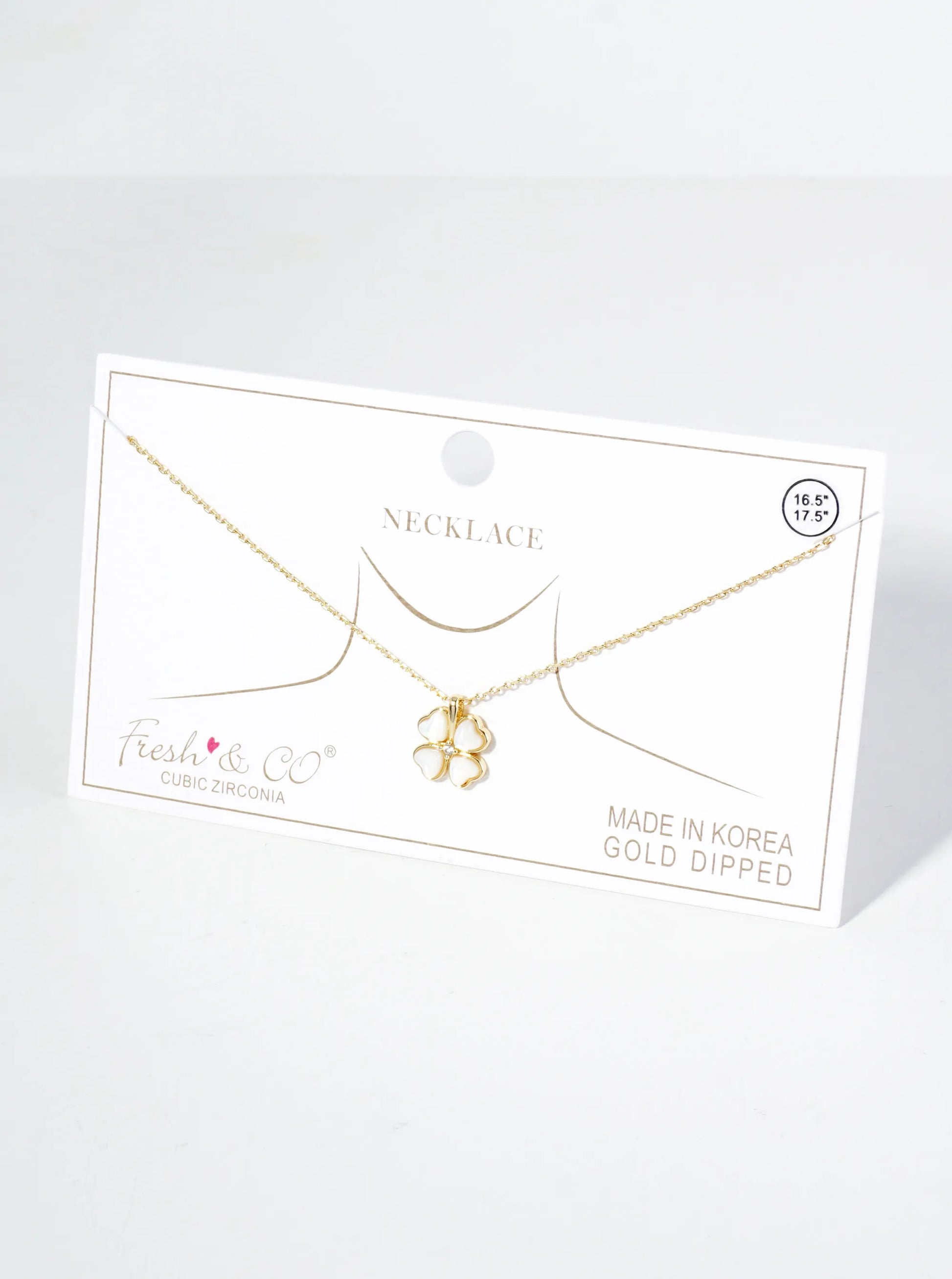 18K Gold Dipped Mother Of Pearl Clover Pendant Necklace