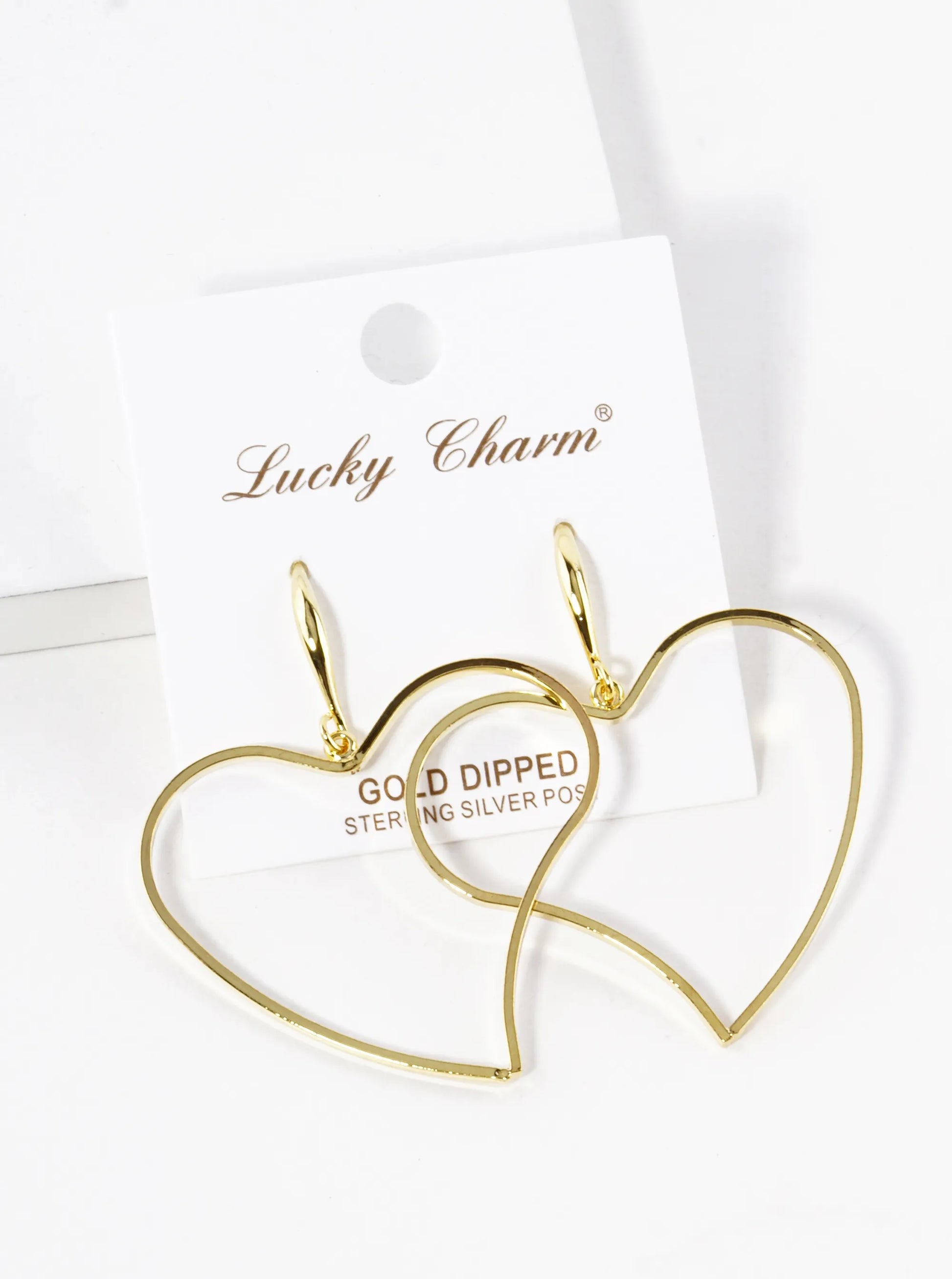 18K Gold Dipped Organic Wire Heart Drop Lightweight Earrings