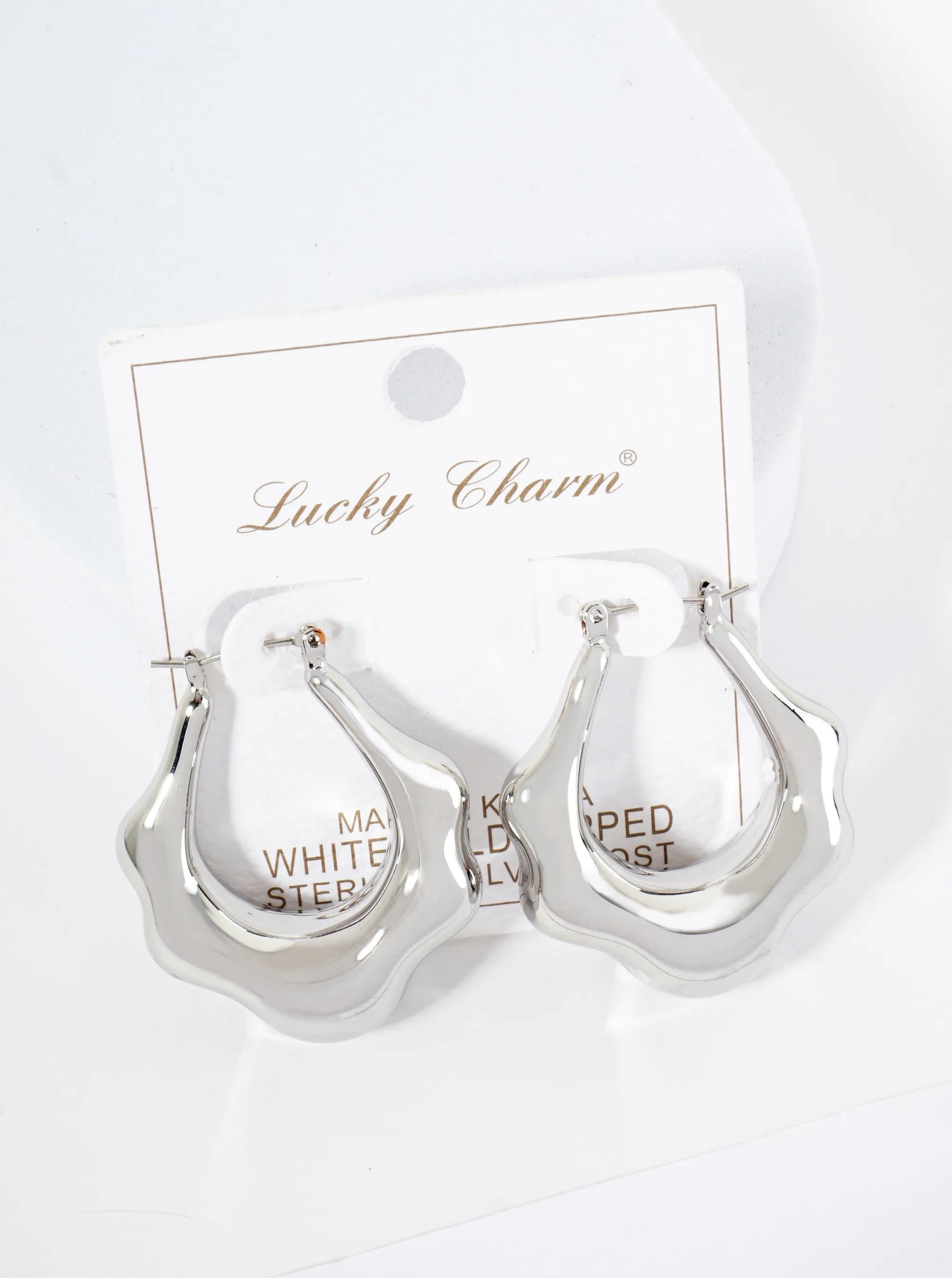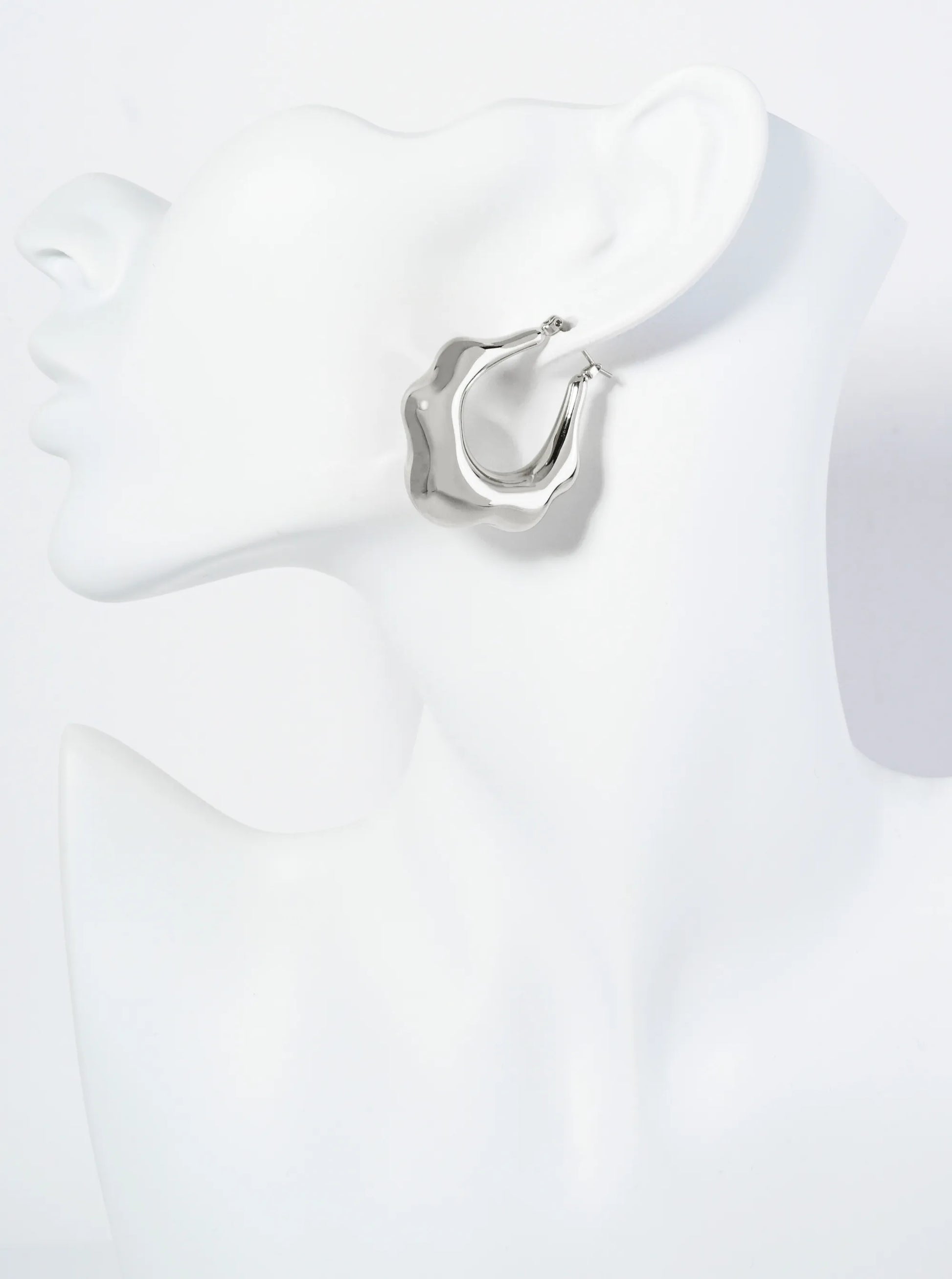 18K Gold Dipped Organically Shaped 35mm Latchback Hoop Earrings