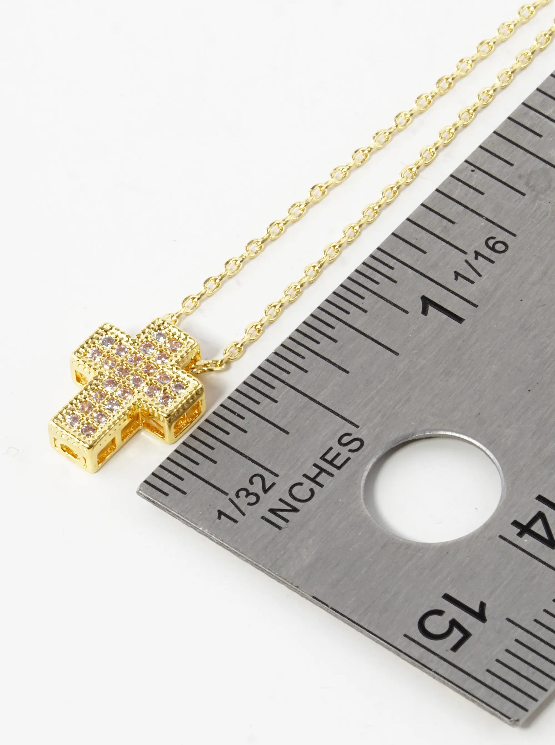 18K Gold Dipped Pave Cubic Zirconia 11mm Cross Pendant Necklace