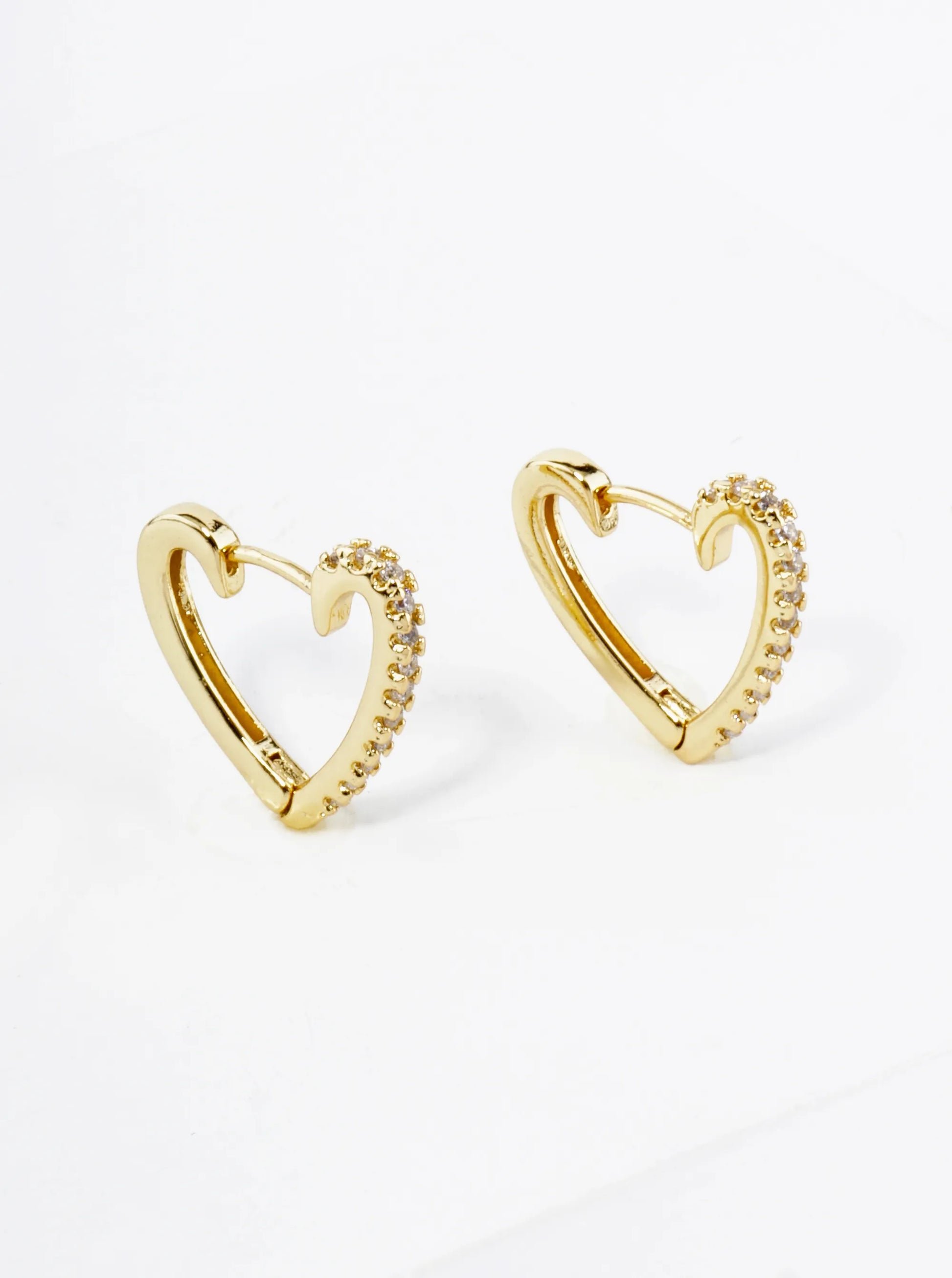 18K Gold Dipped Pave Cubic Zirconia 15mm Heart Huggie Hoop Earrings