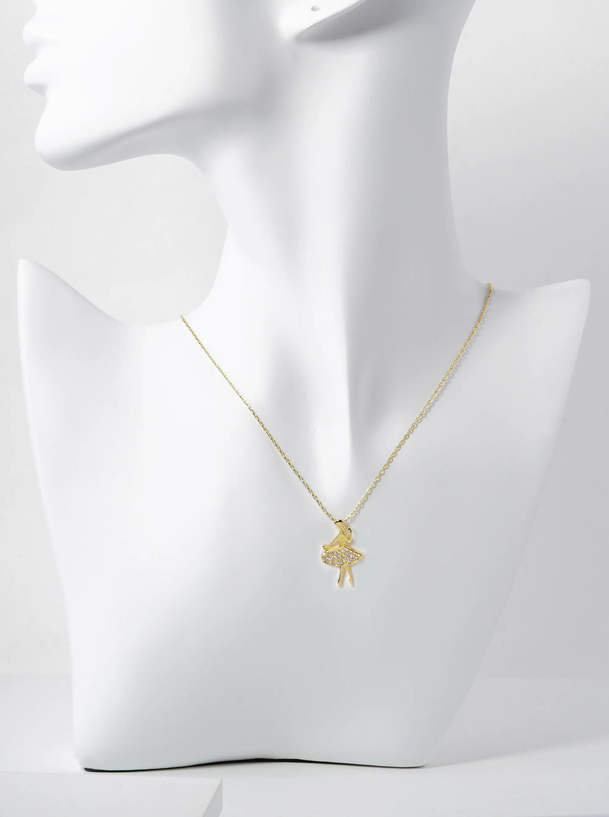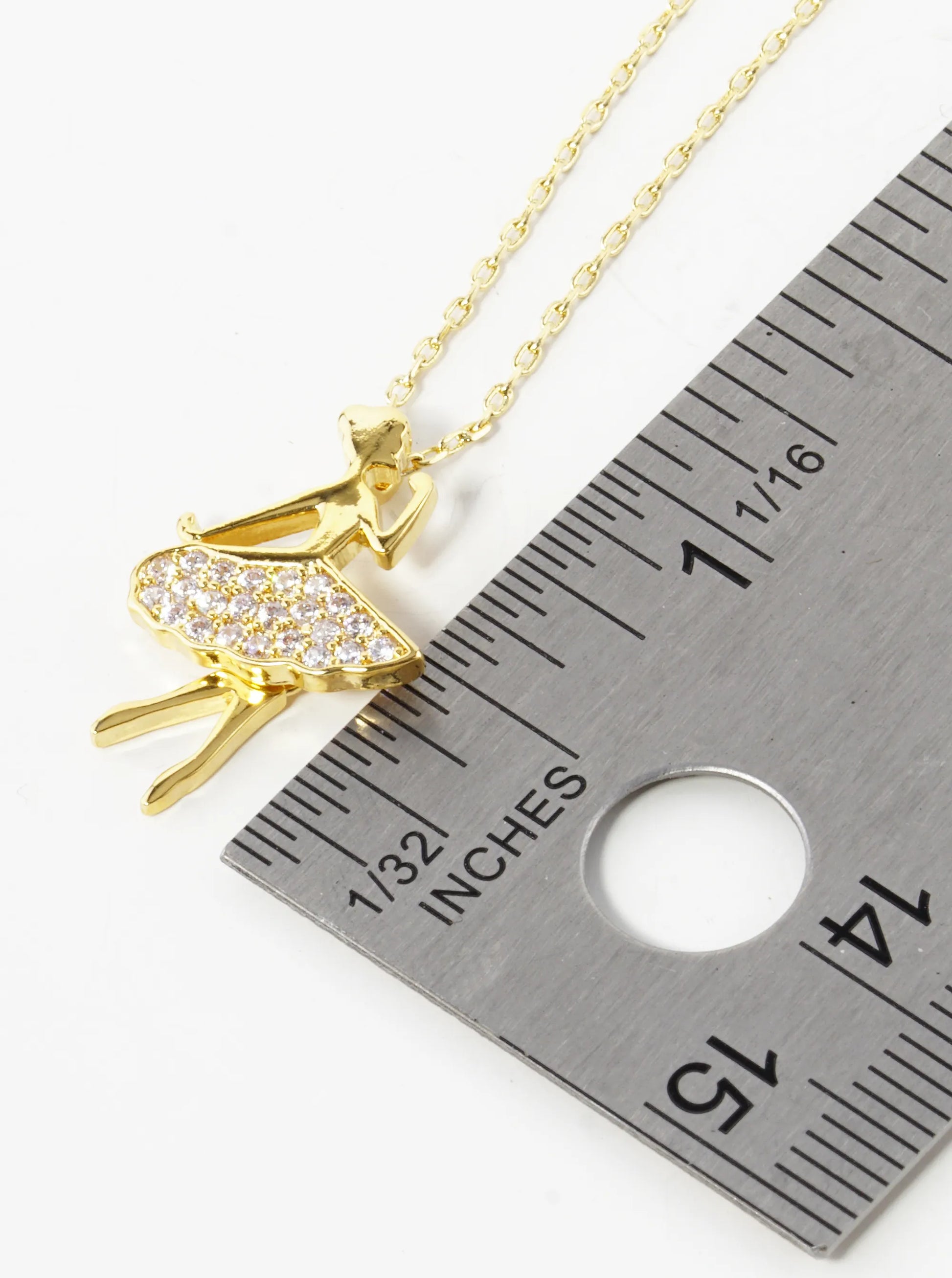18K Gold Dipped Pave Cubic Zirconia Ballerina Pendant Necklace